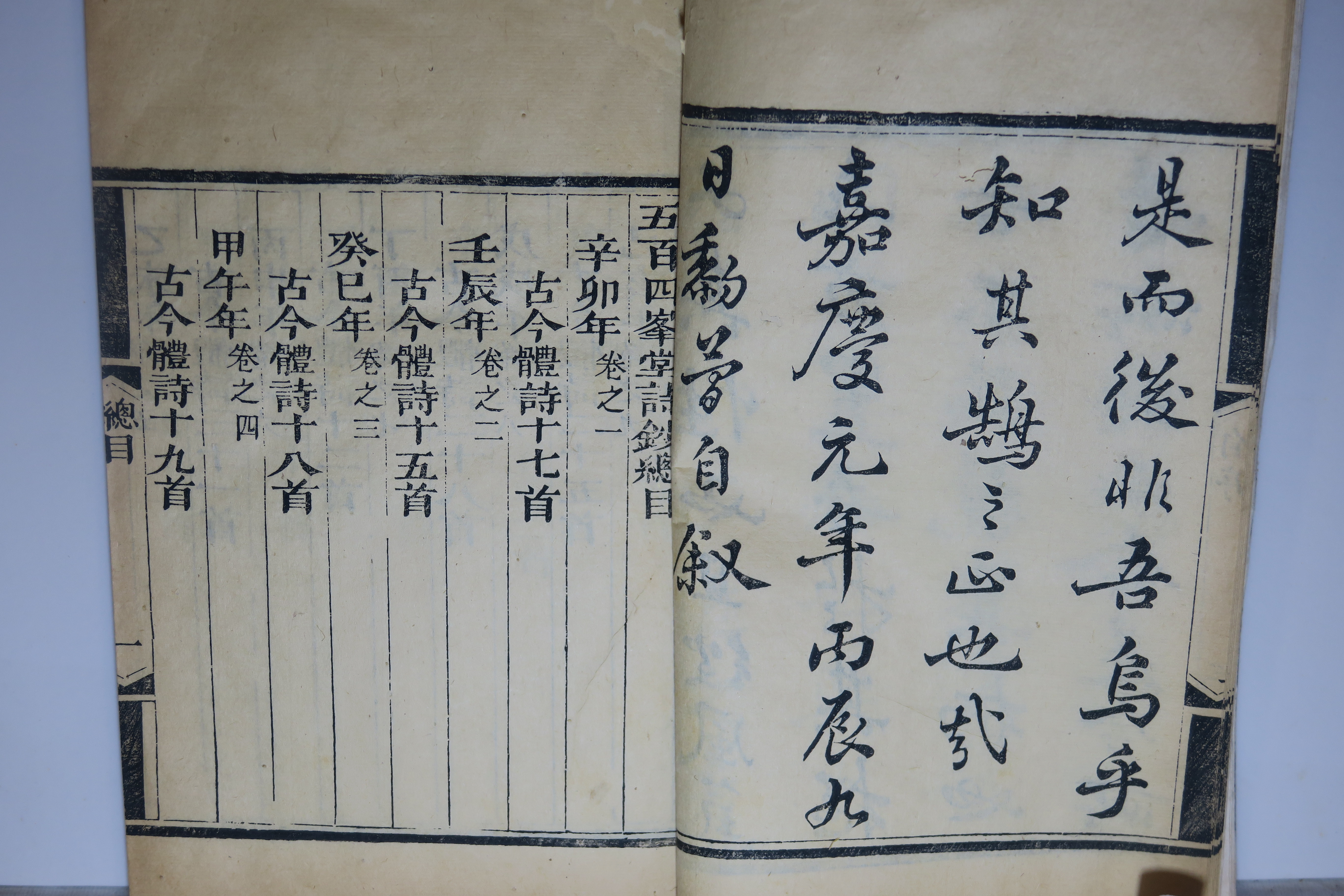 清嘉庆元年刻本黎简撰《五百四峰堂诗钞》二十五卷(带木箱) 年代:清嘉庆元年(1796);质地: 纸;尺寸:通长28厘米,通宽15.8厘米。