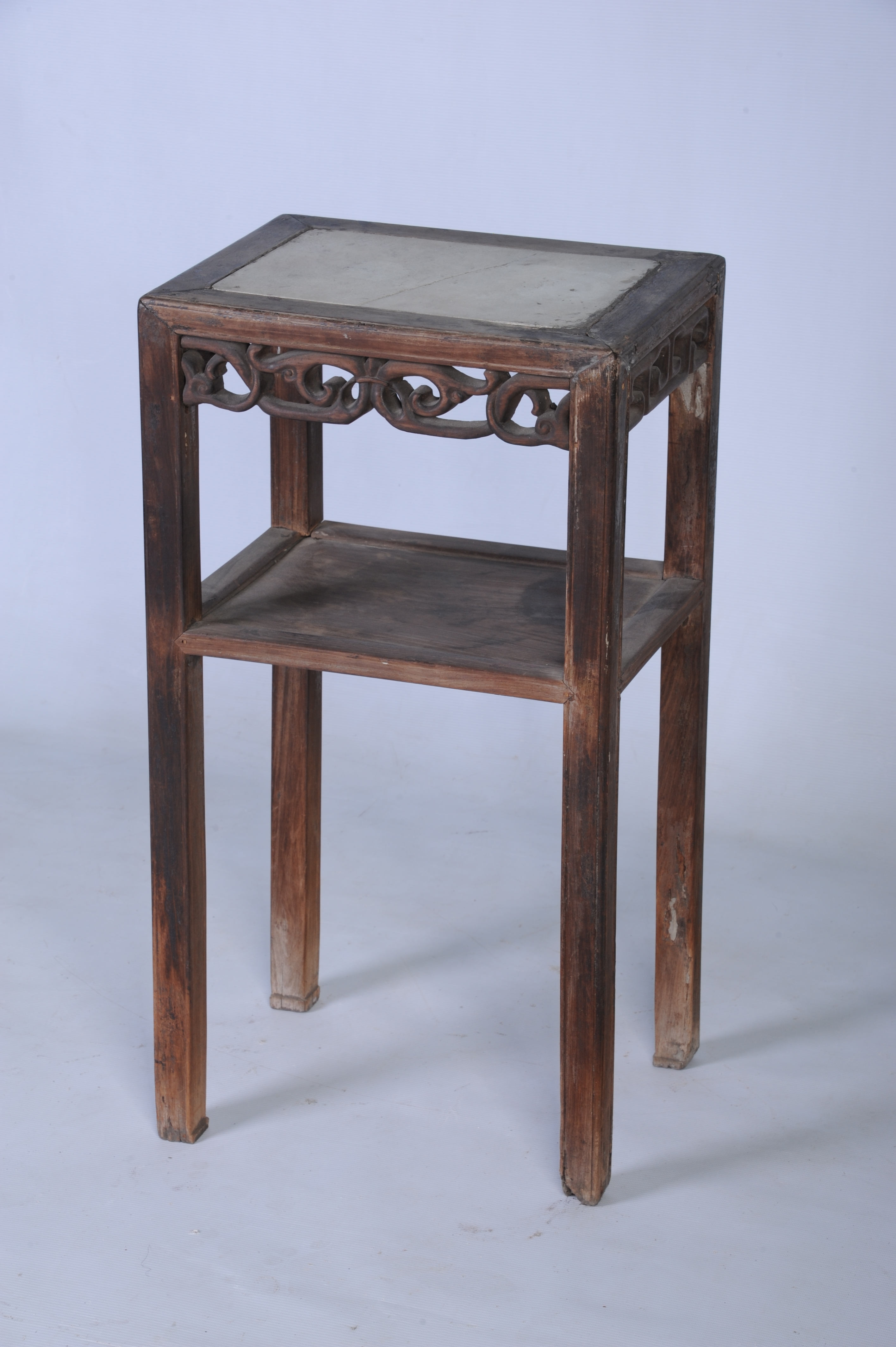 清酸枝镶石二层几 清,通长:41厘米,通宽:31厘米,通高:76厘米