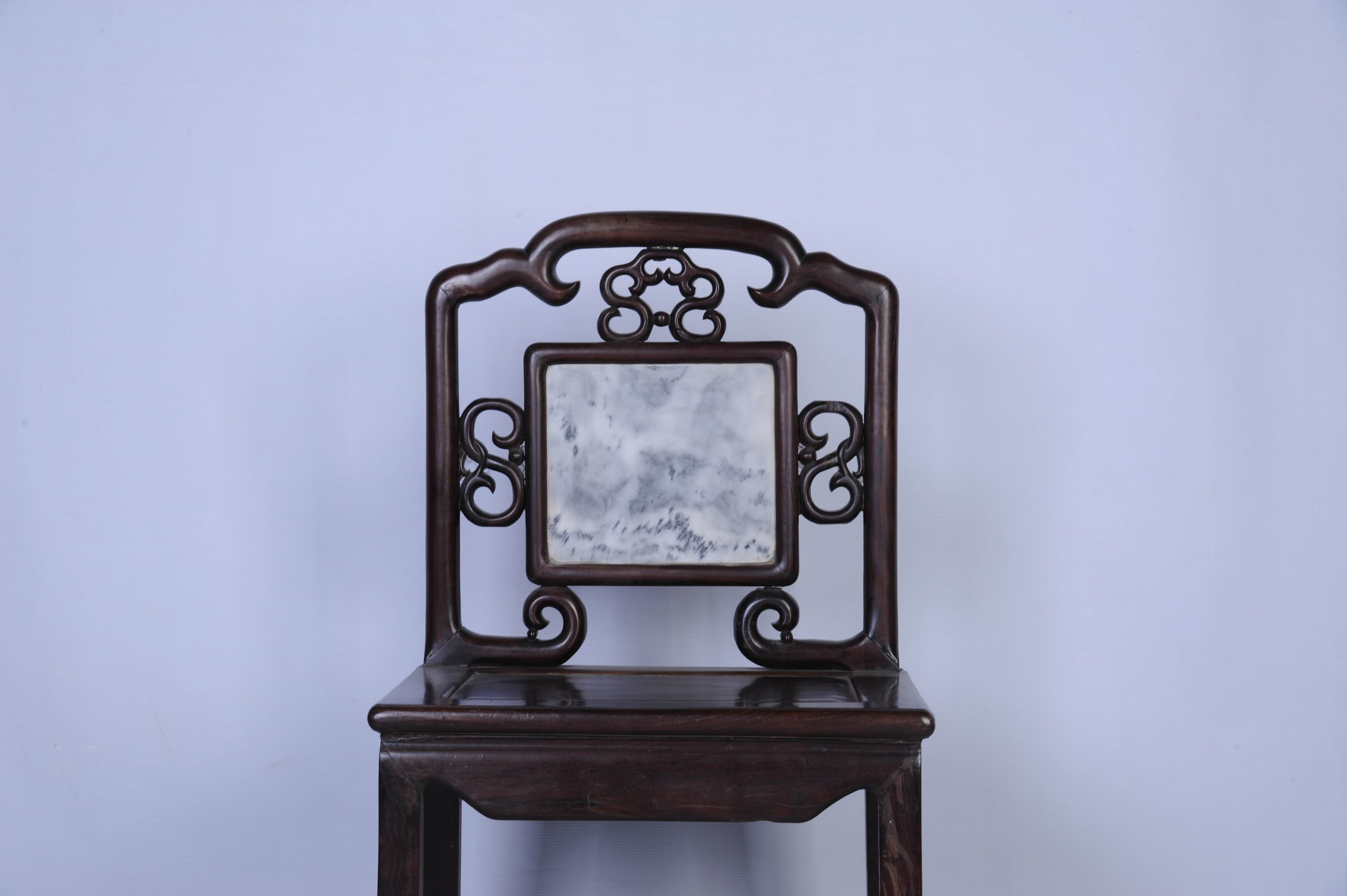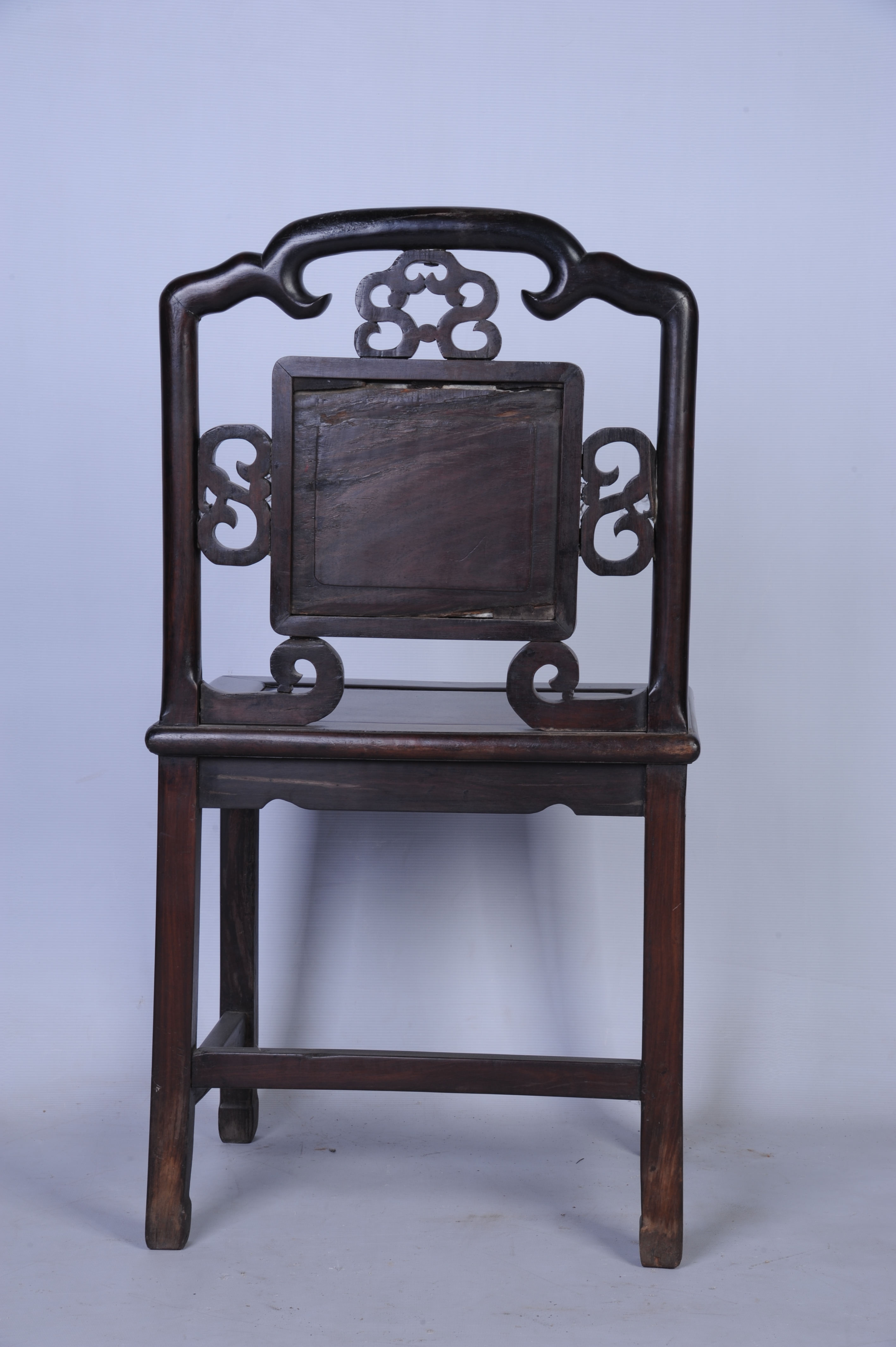 中华民国酸枝镶石靠背椅 中华民国,通长:53厘米,通宽:43厘米,通高:99厘米