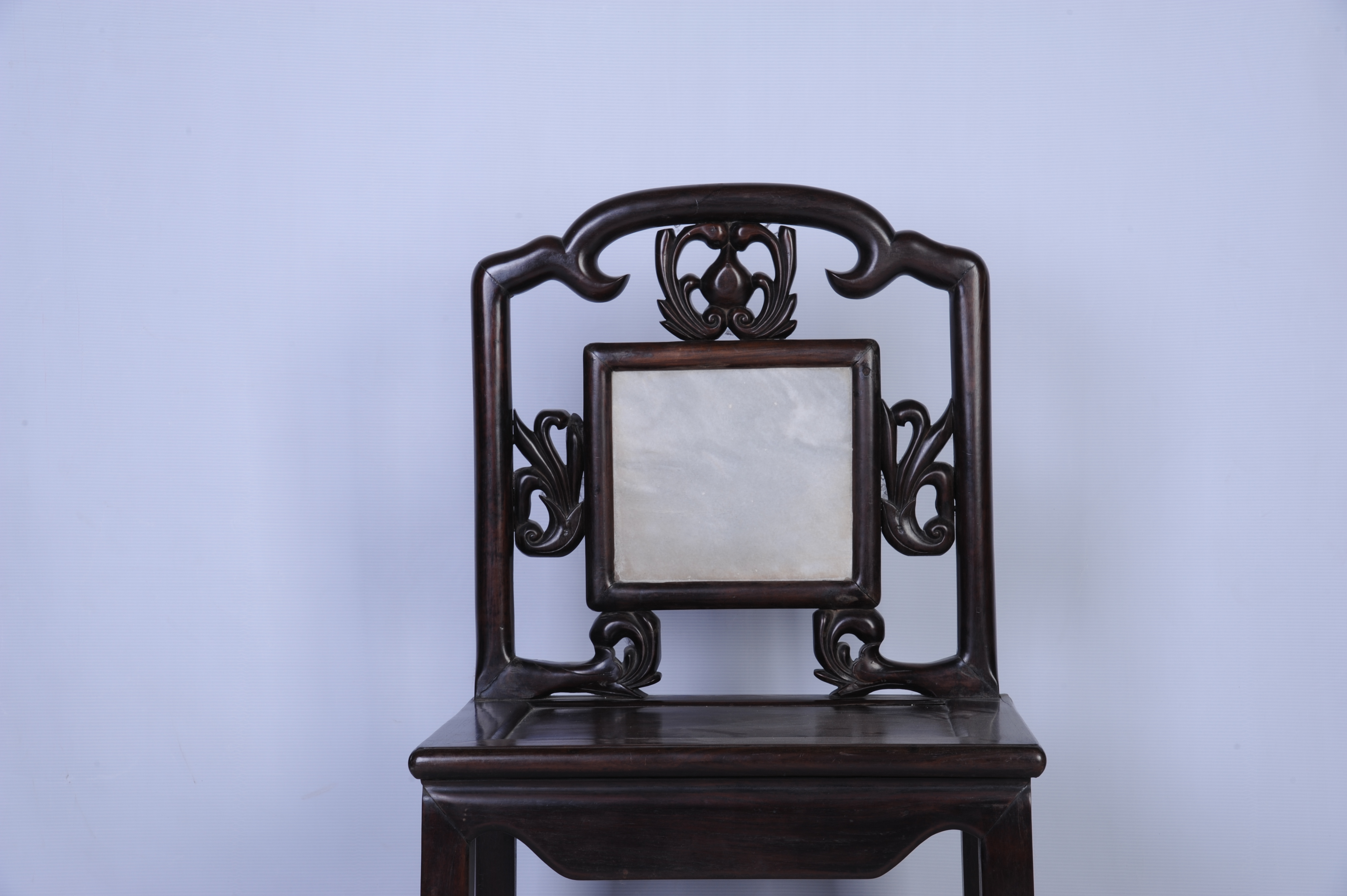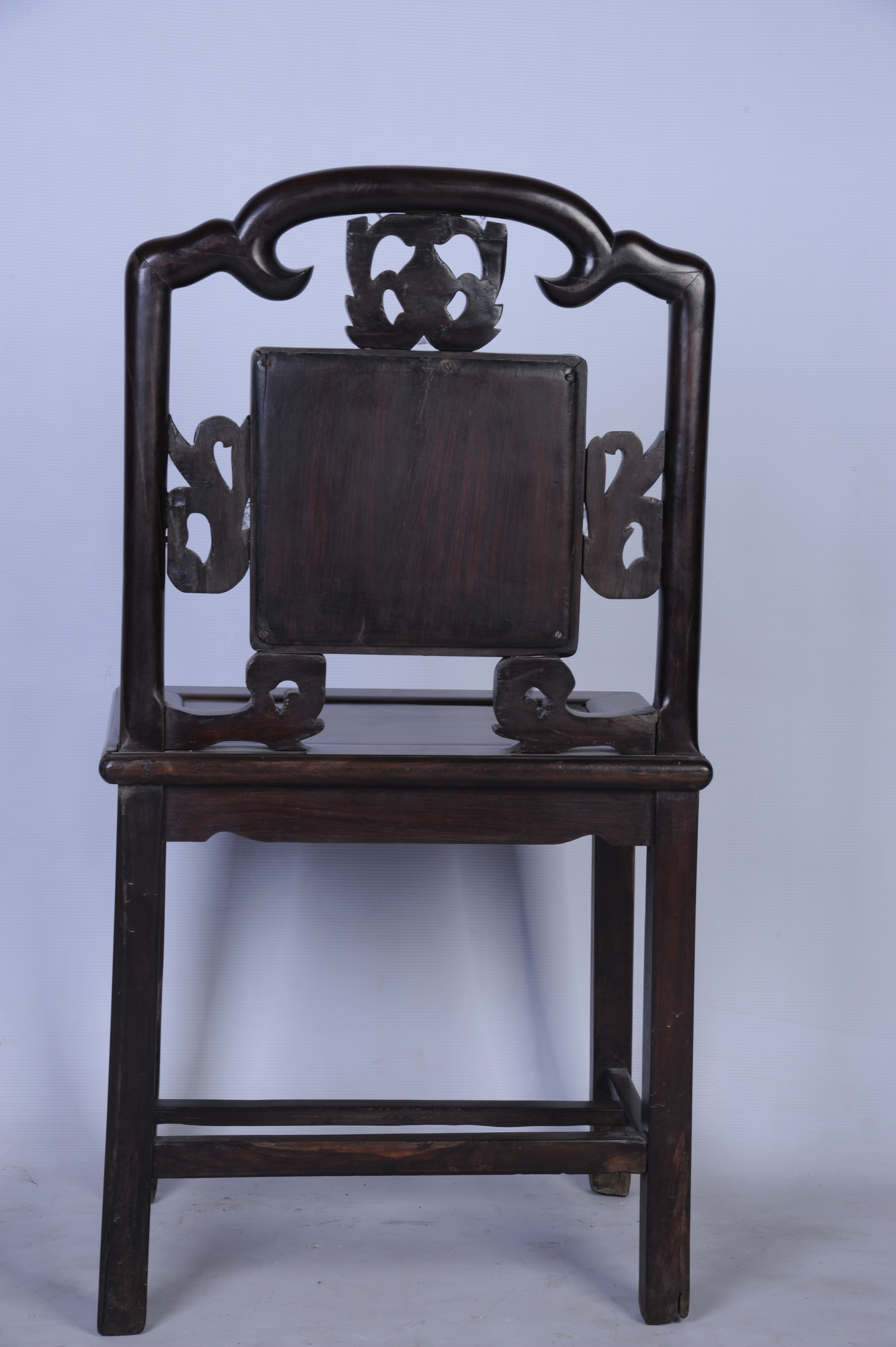中华民国酸枝镶石靠背椅 中华民国,通长:52厘米,通宽:42厘米,通高:98厘米