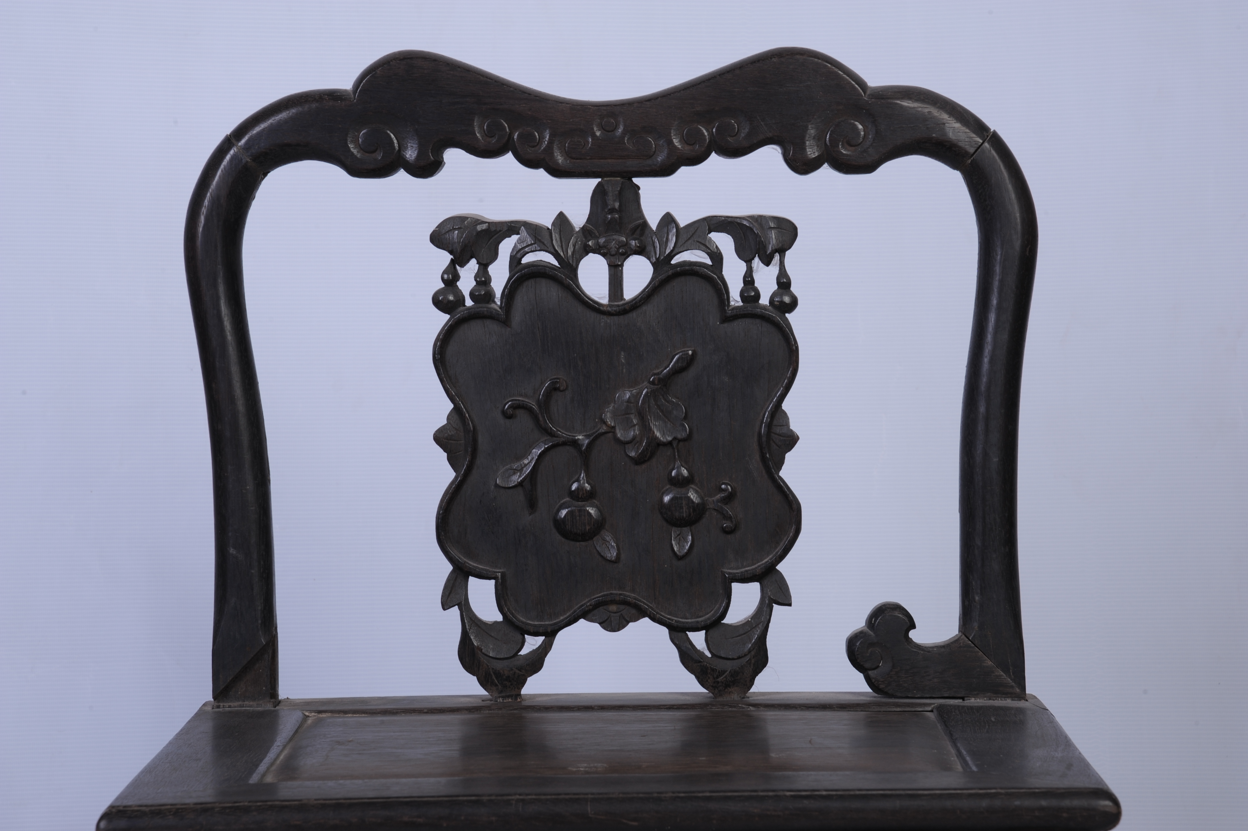中华民国坤甸木花果纹靠背椅 中华民国,通长:51厘米,通宽:40厘米,通高:90厘米