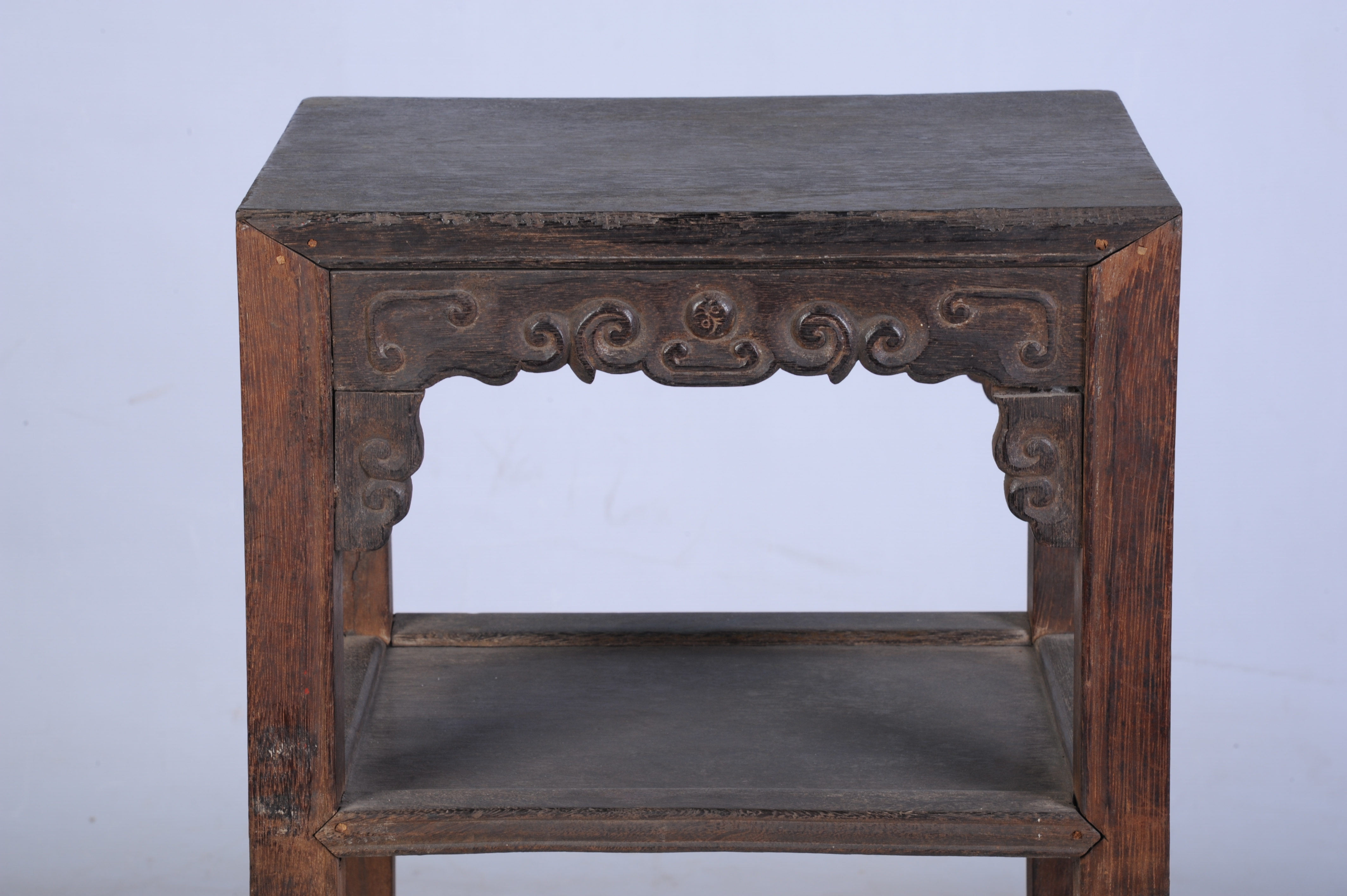 清末坤甸二层几 清末,通长:41厘米,通宽:29.5厘米,通高:78厘米