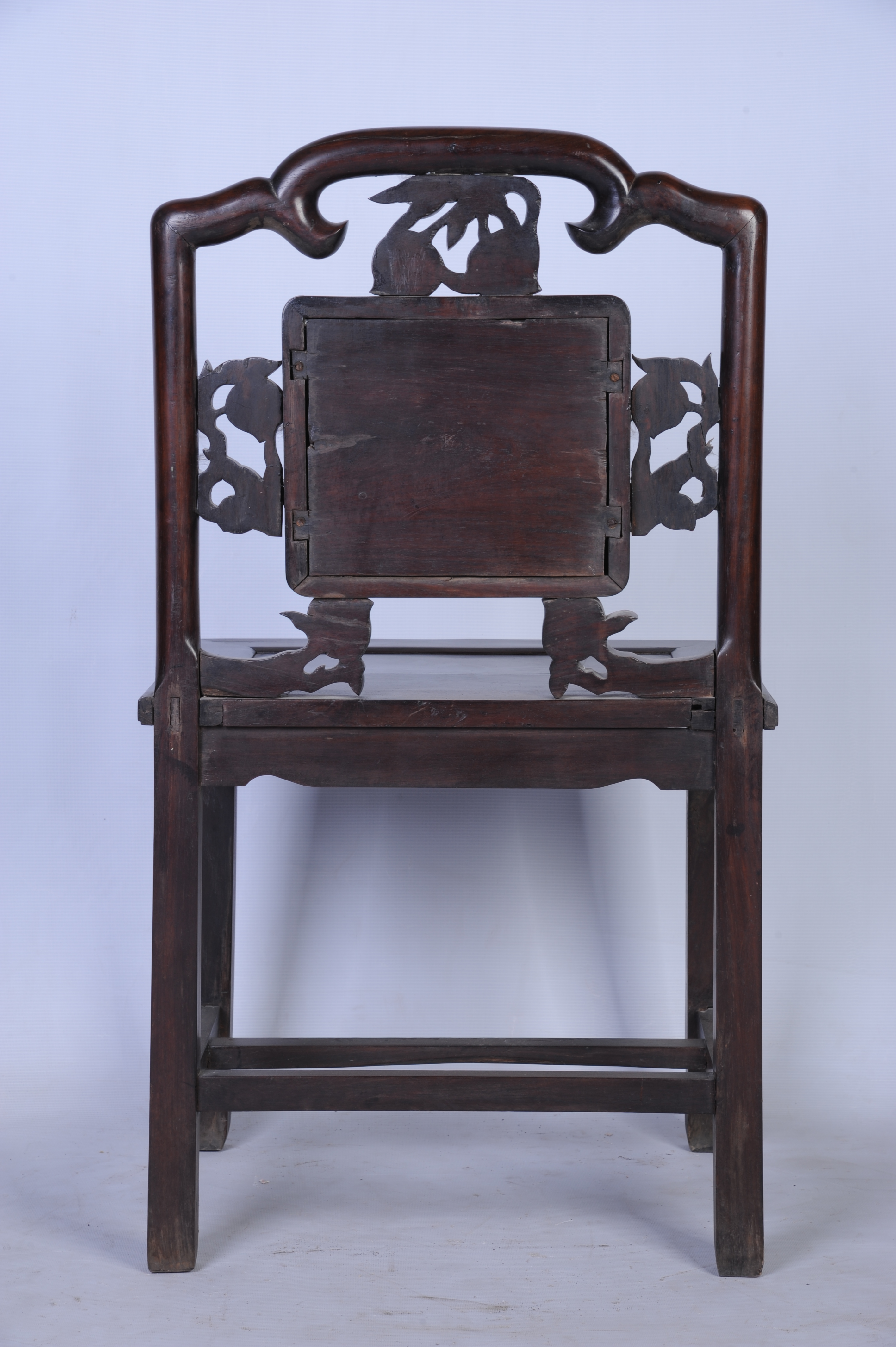 中华民国酸枝镶石靠背椅 中华民国,通长:53厘米,通宽:42.5厘米,通高:94厘米