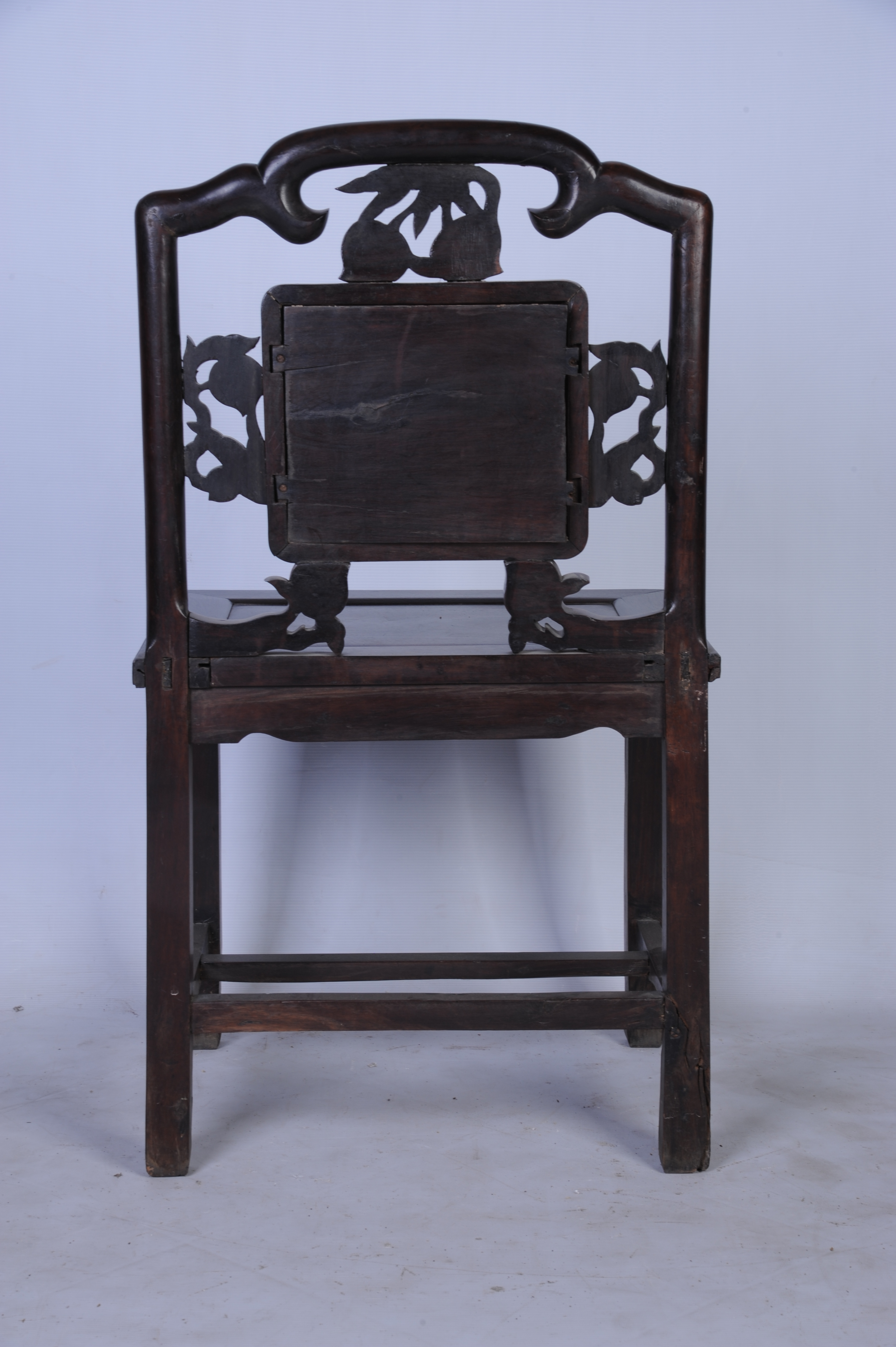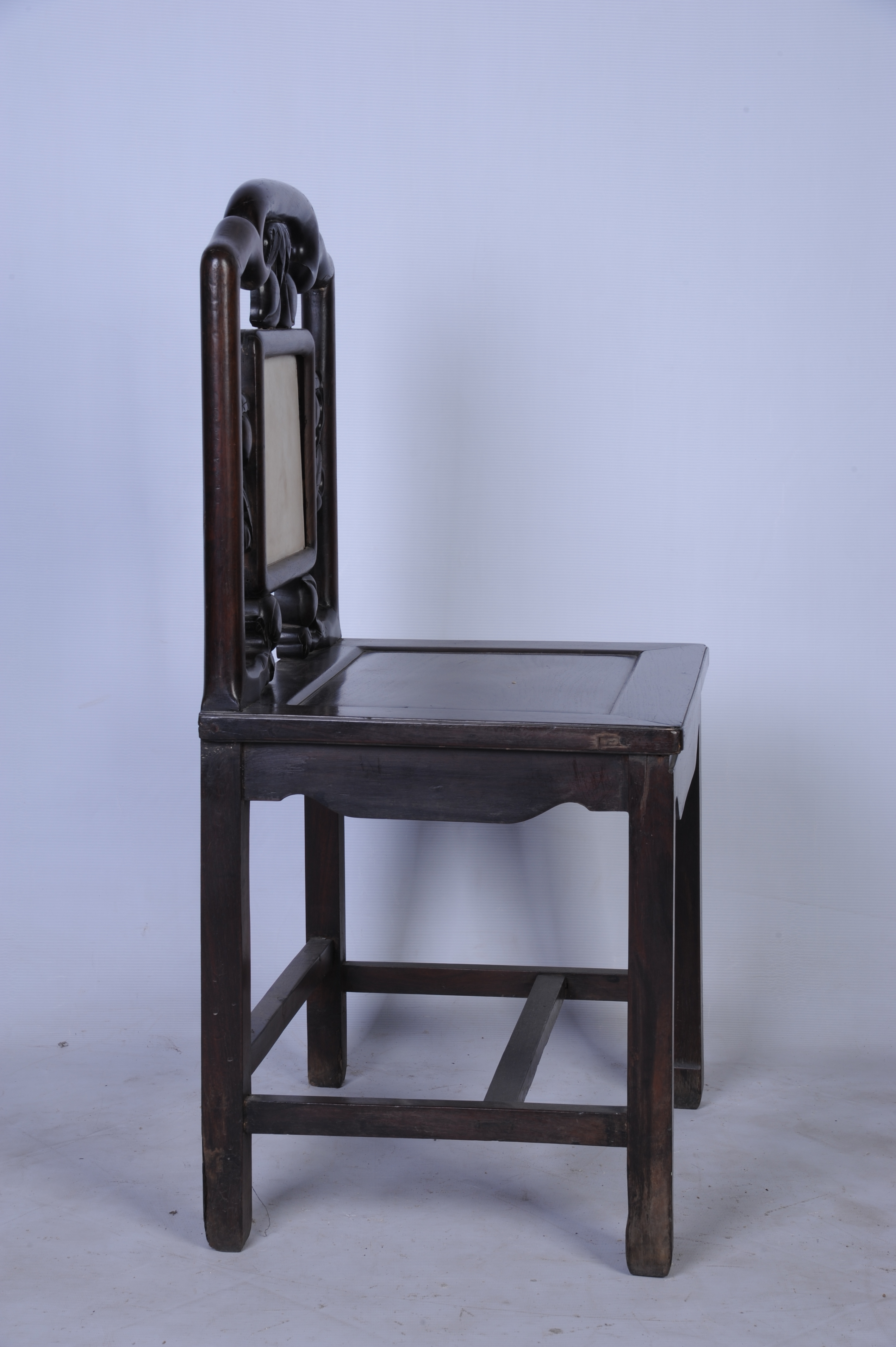 中华民国酸枝镶石靠背椅 中华民国,通长:53厘米,通宽:43厘米,通高:95厘米