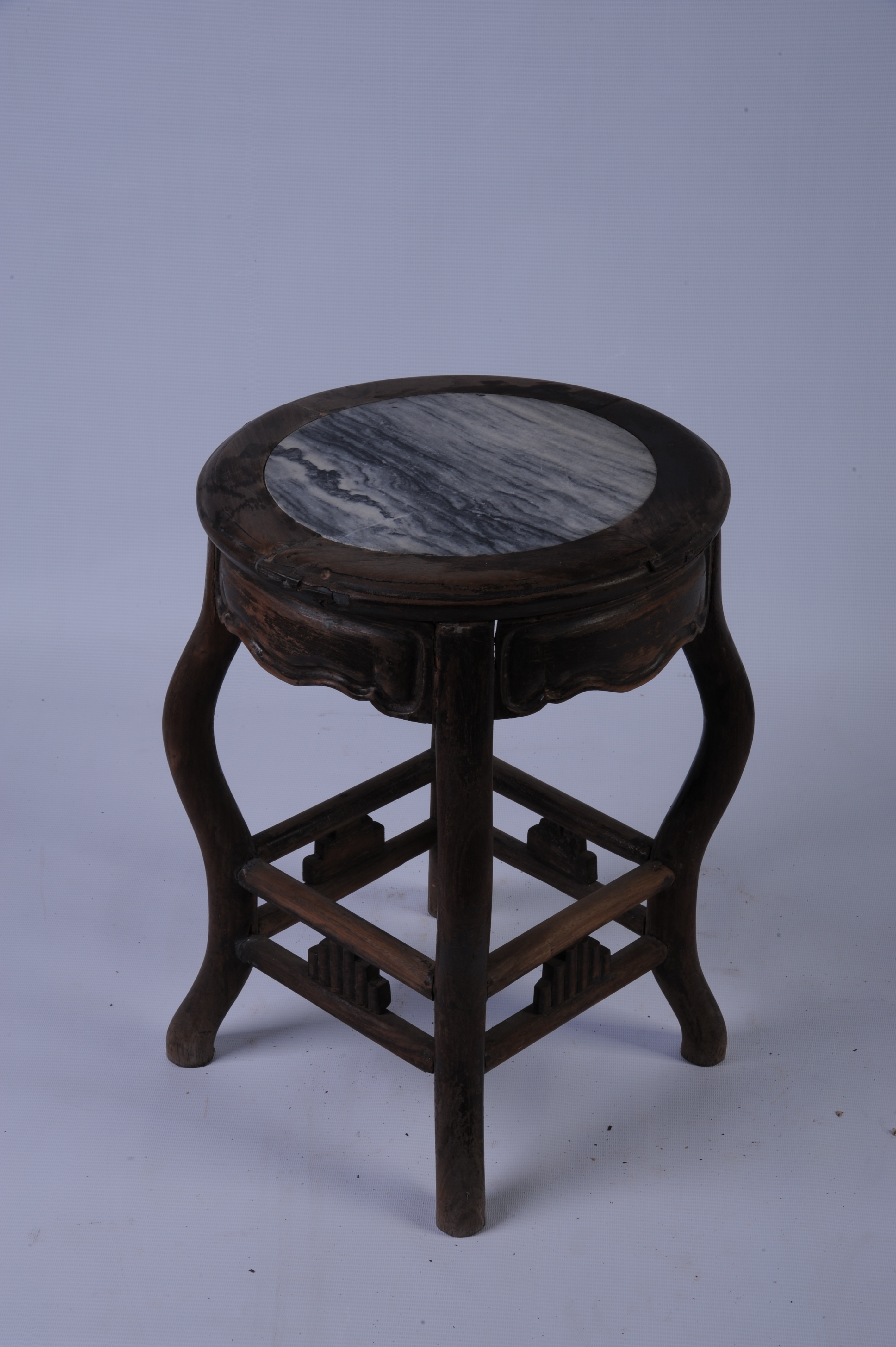 中华民国酸枝镶石圆凳 中华民国,直径:34厘米,通高:44.5厘米。