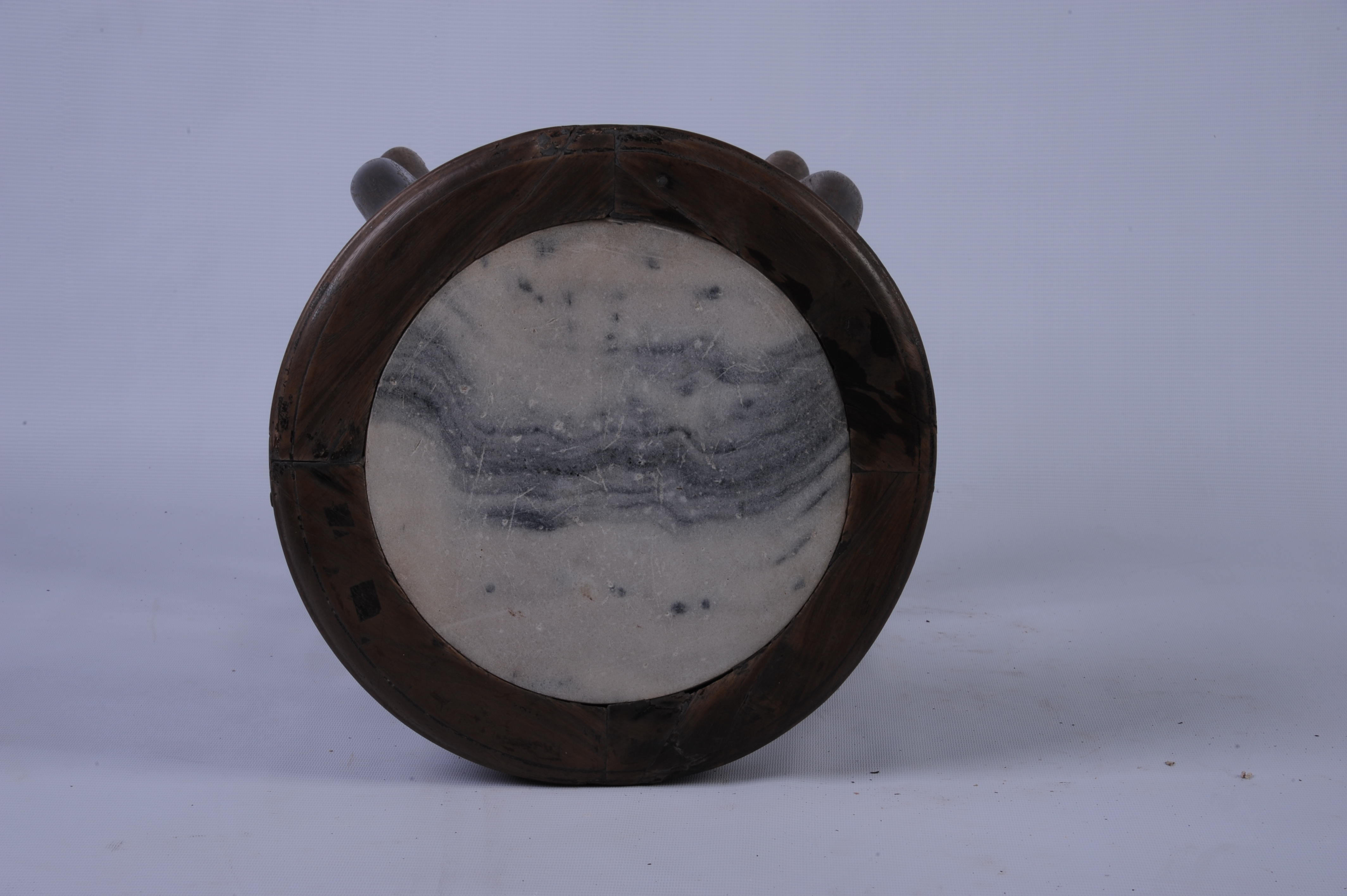中华民国酸枝镶石圆凳 中华民国,直径:35厘米,通高:45厘米。