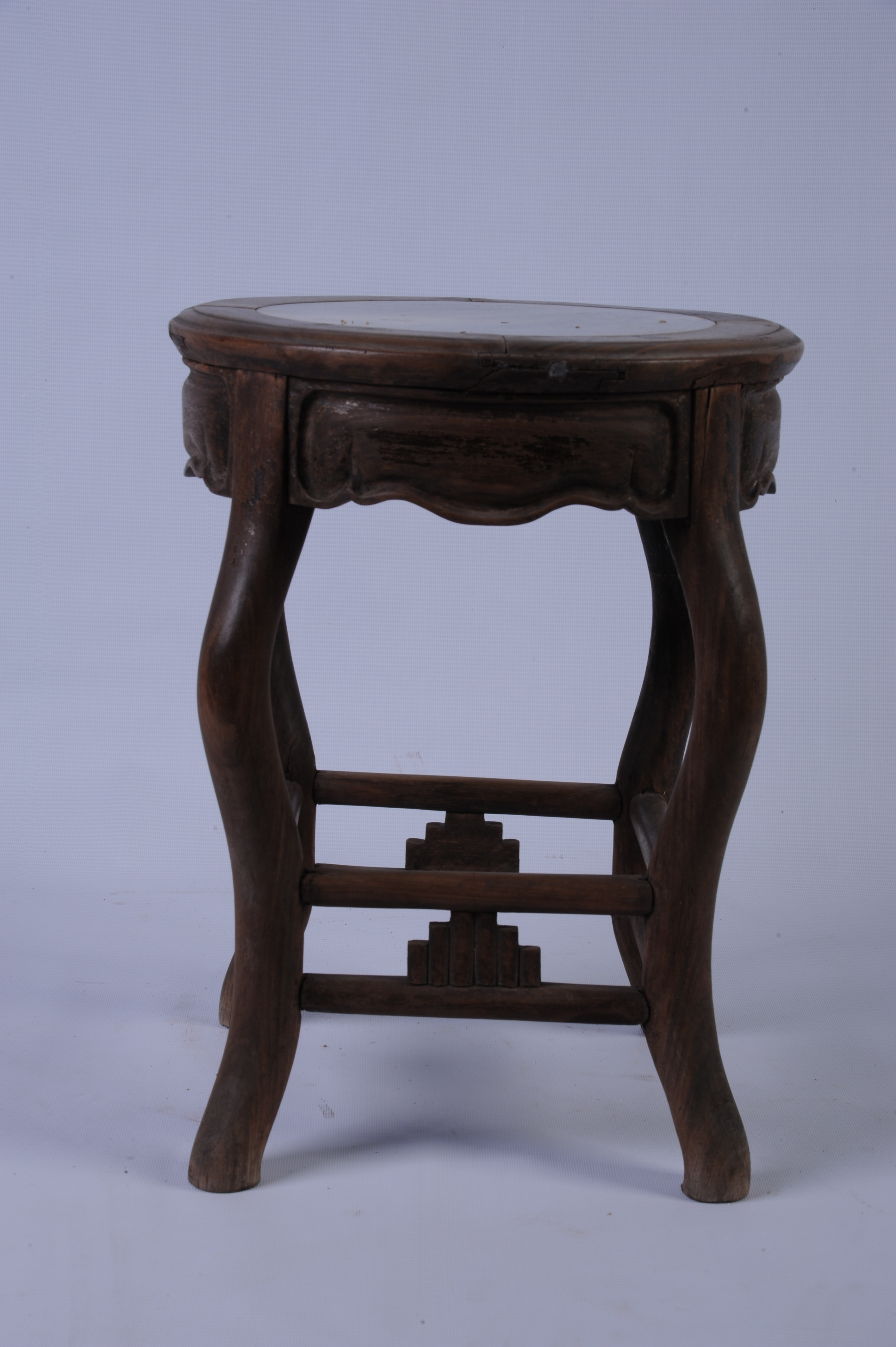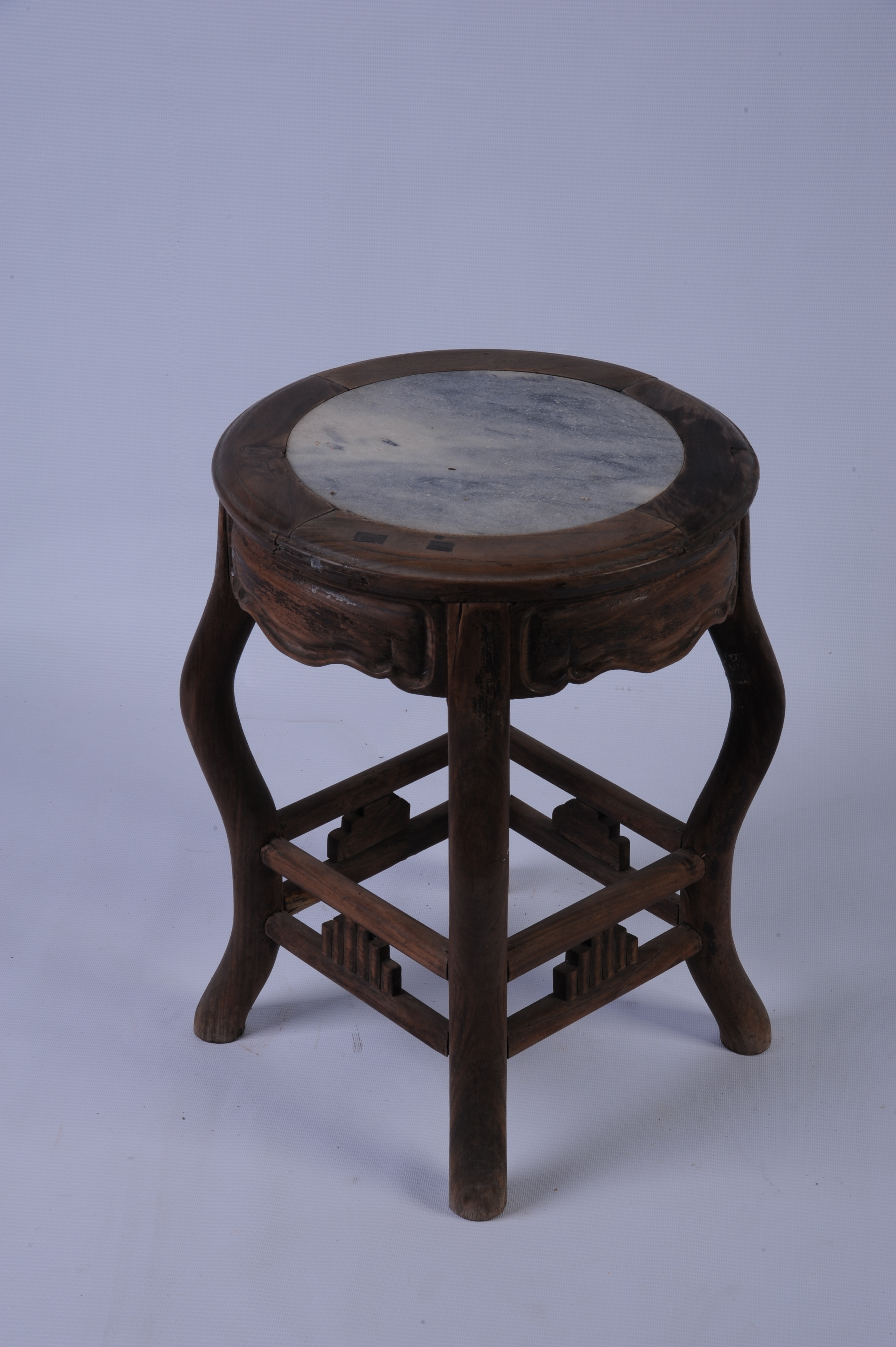 中华民国酸枝镶石圆凳 中华民国,直径:34厘米,通高:44厘米。