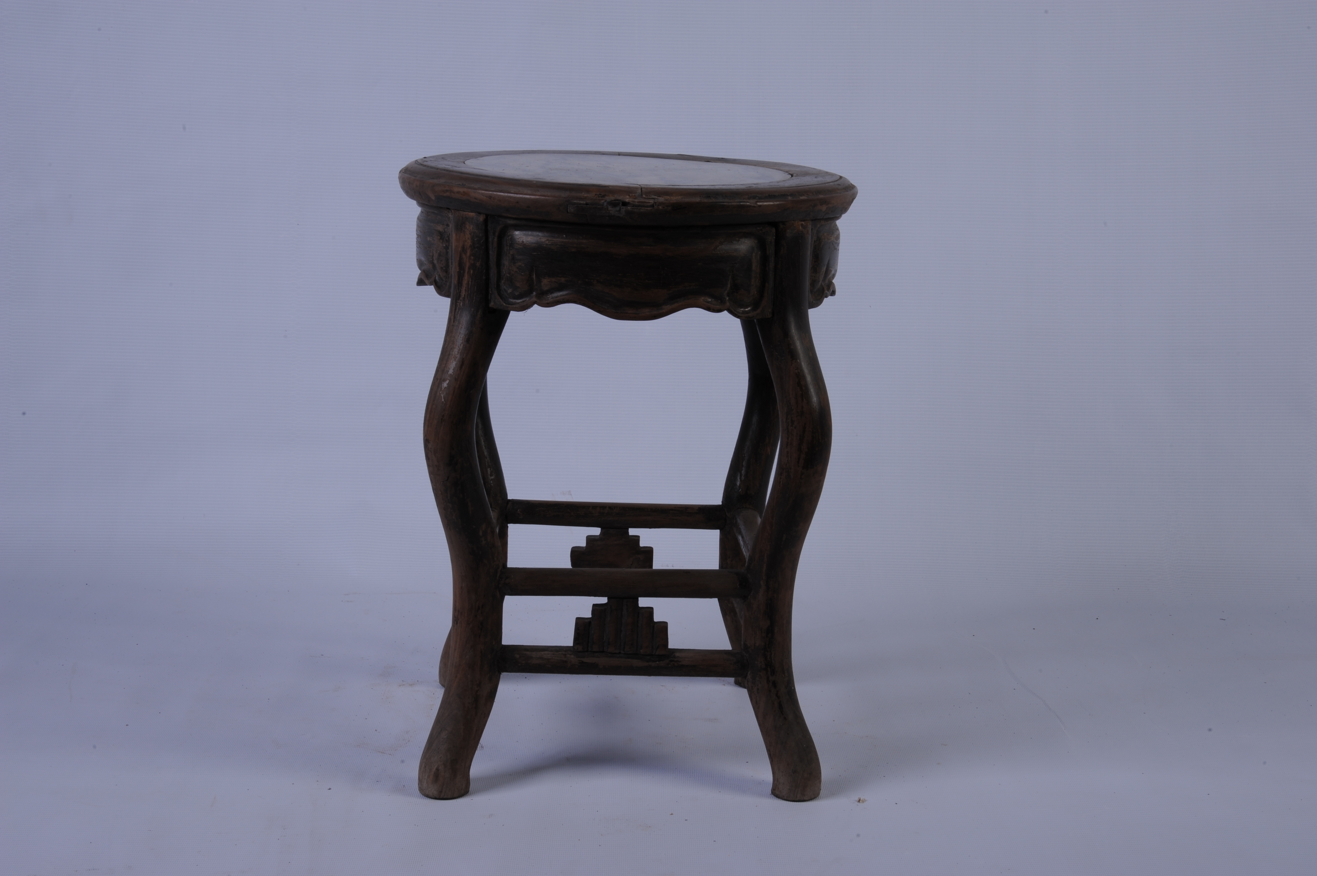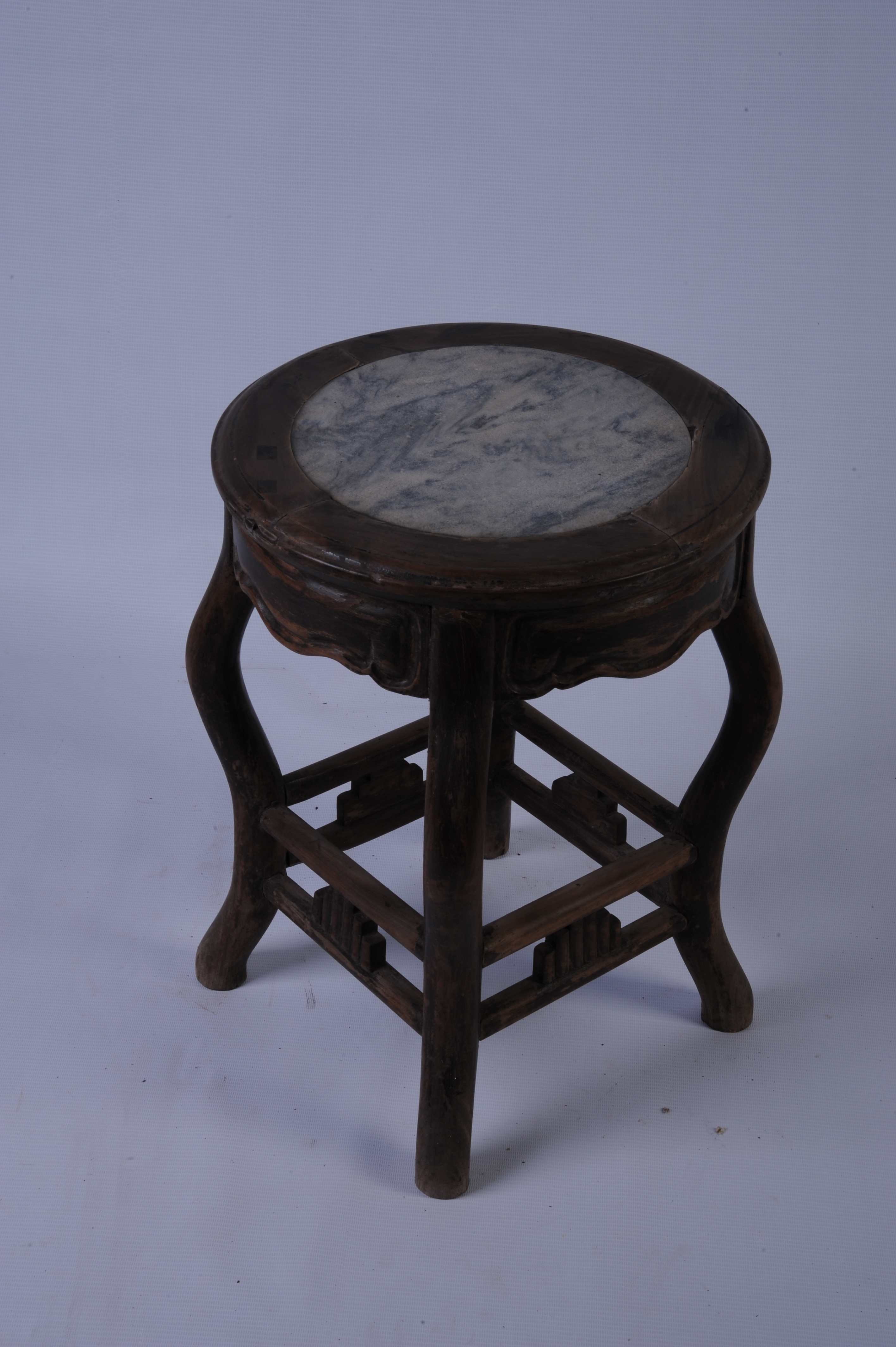 中华民国酸枝镶石圆凳 中华民国,直径:34.5厘米,通高:45厘米。