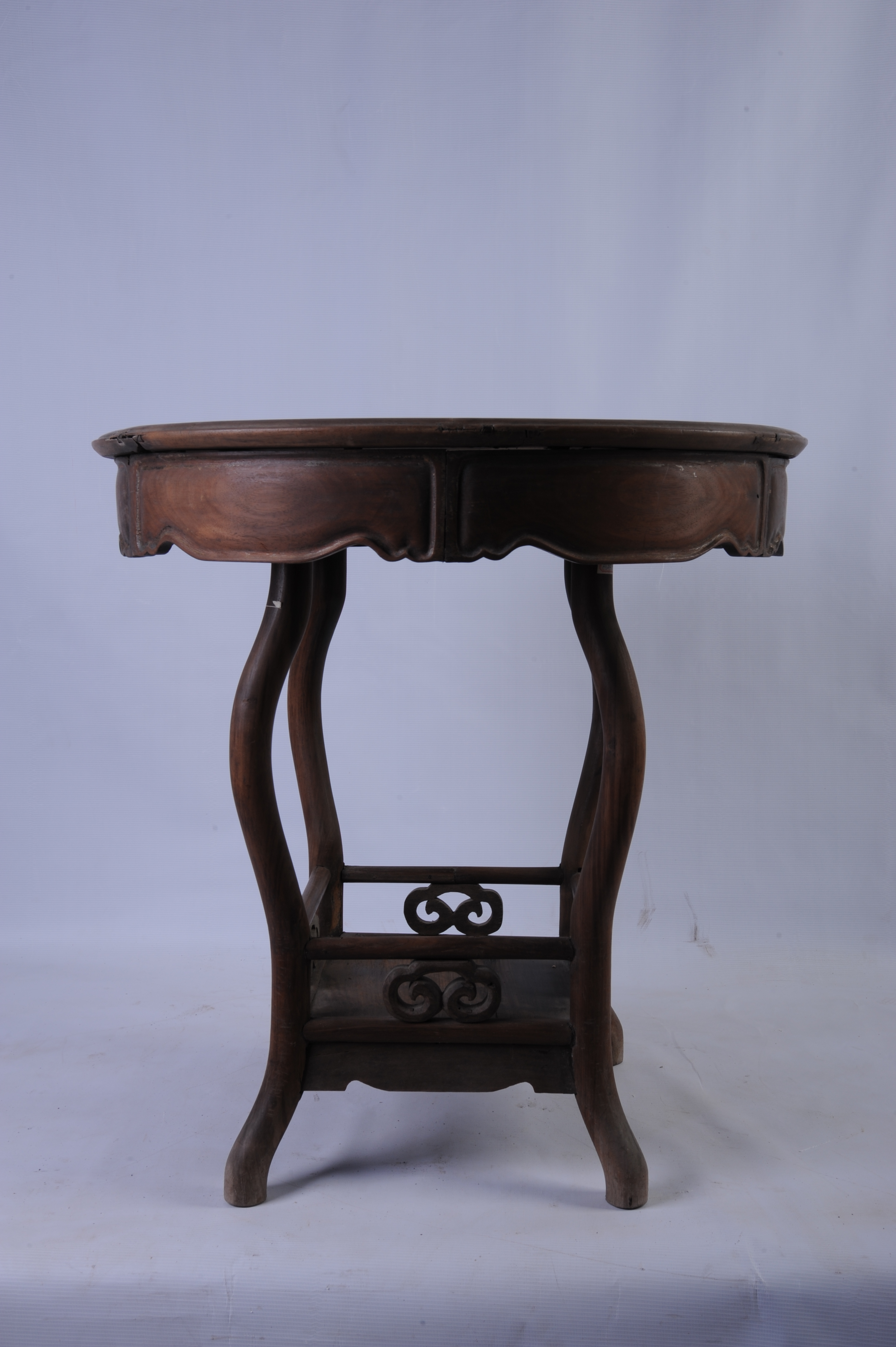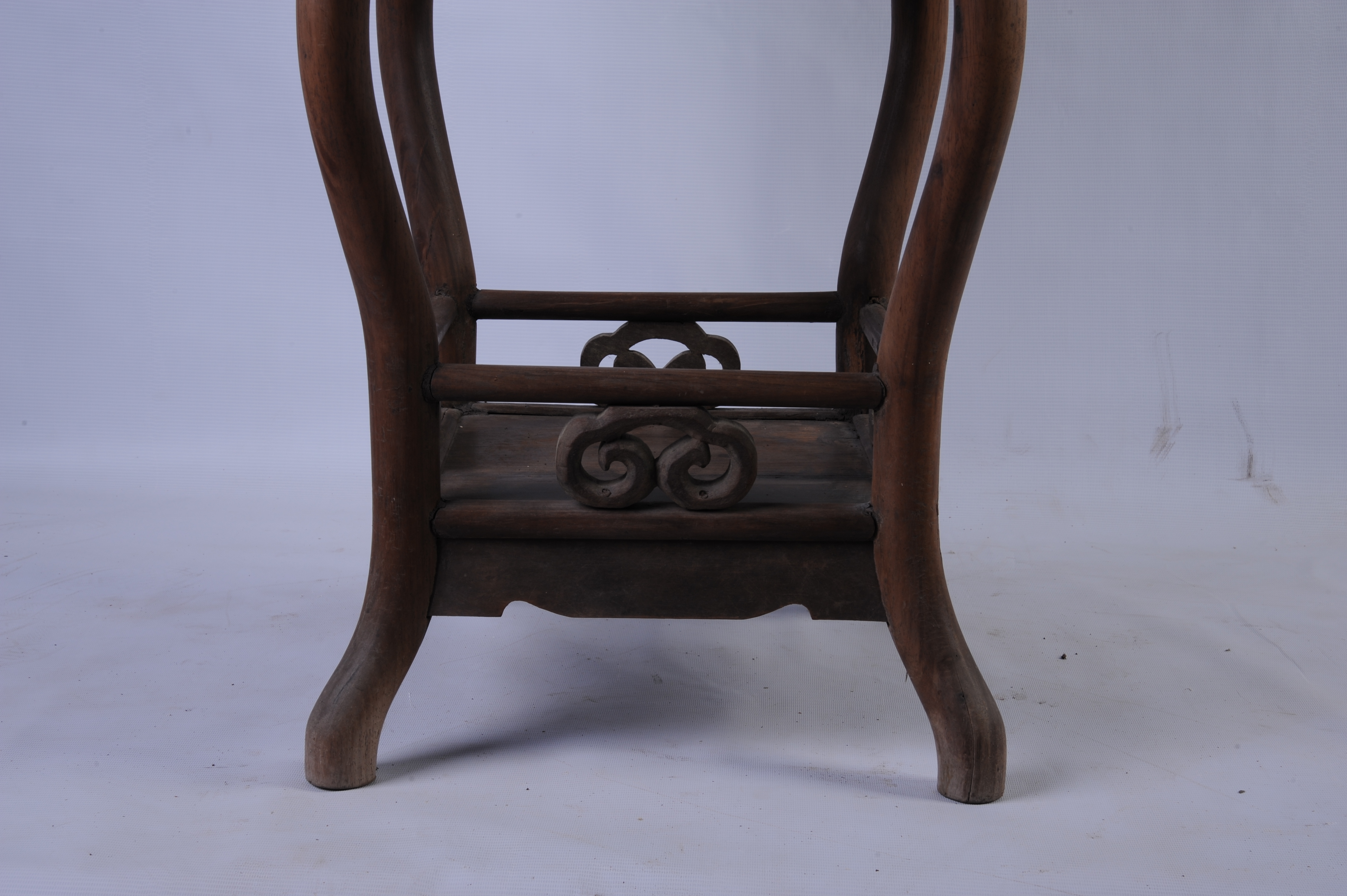 中华民国酸枝镶石圆台 中华民国,直径:77厘米,高:79厘米,管脚枨边长:35厘米。