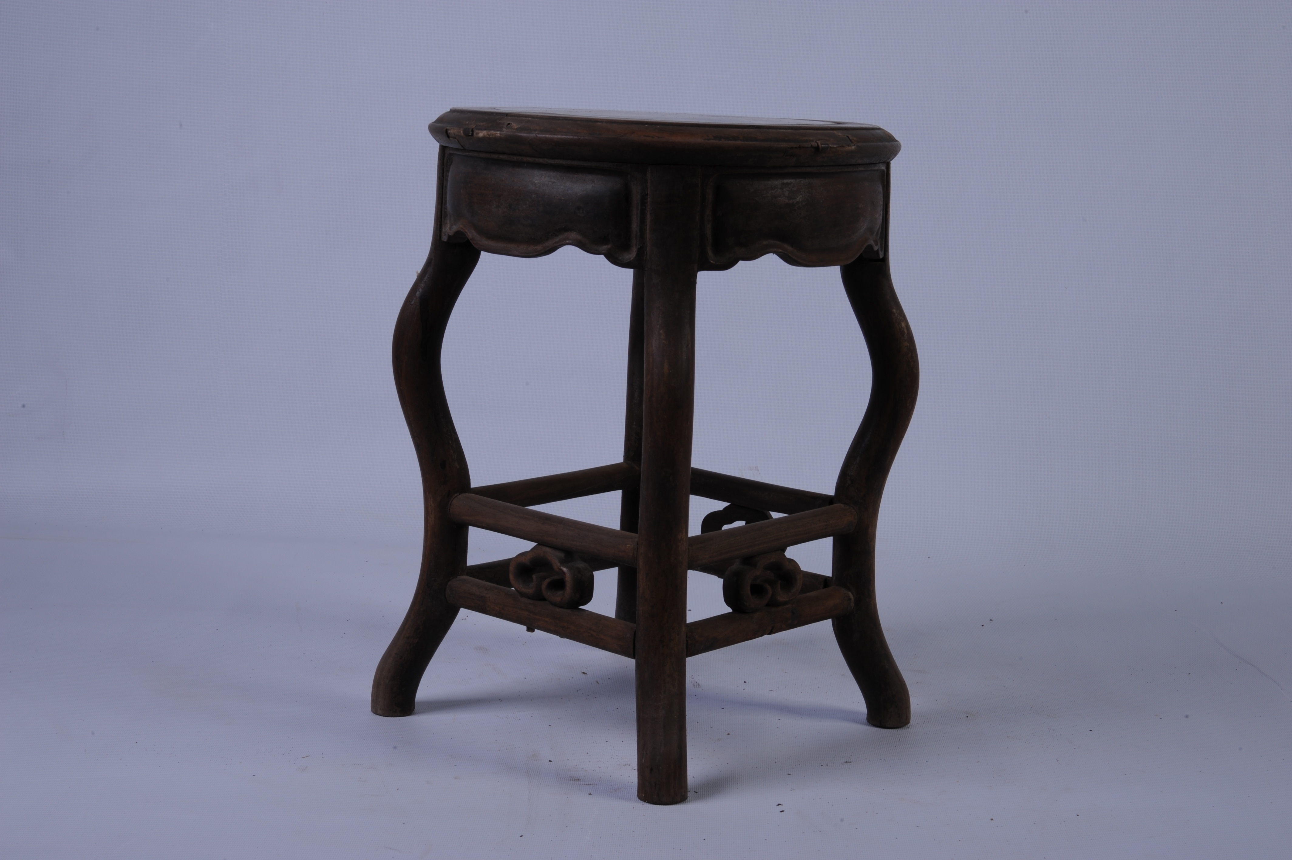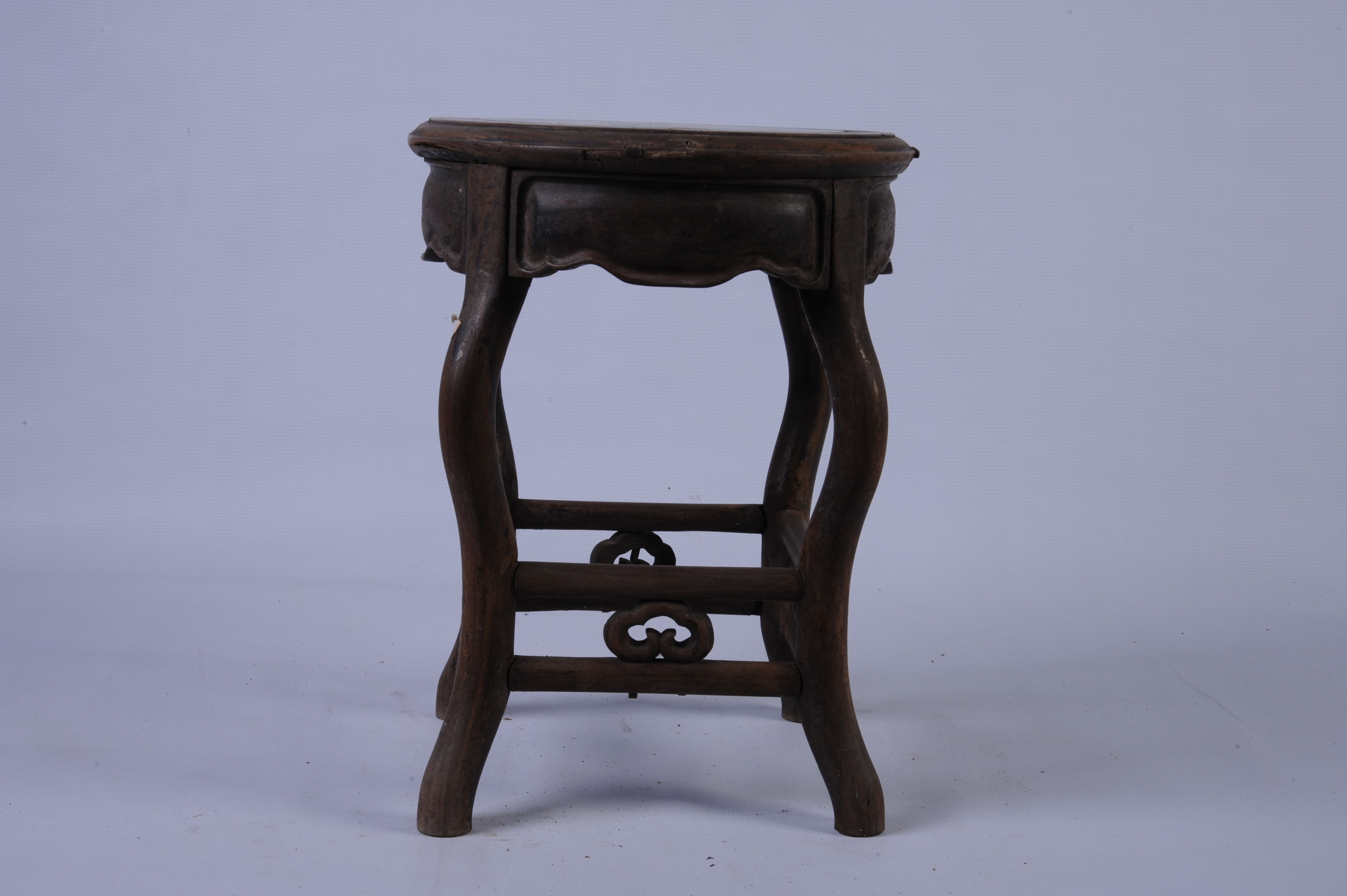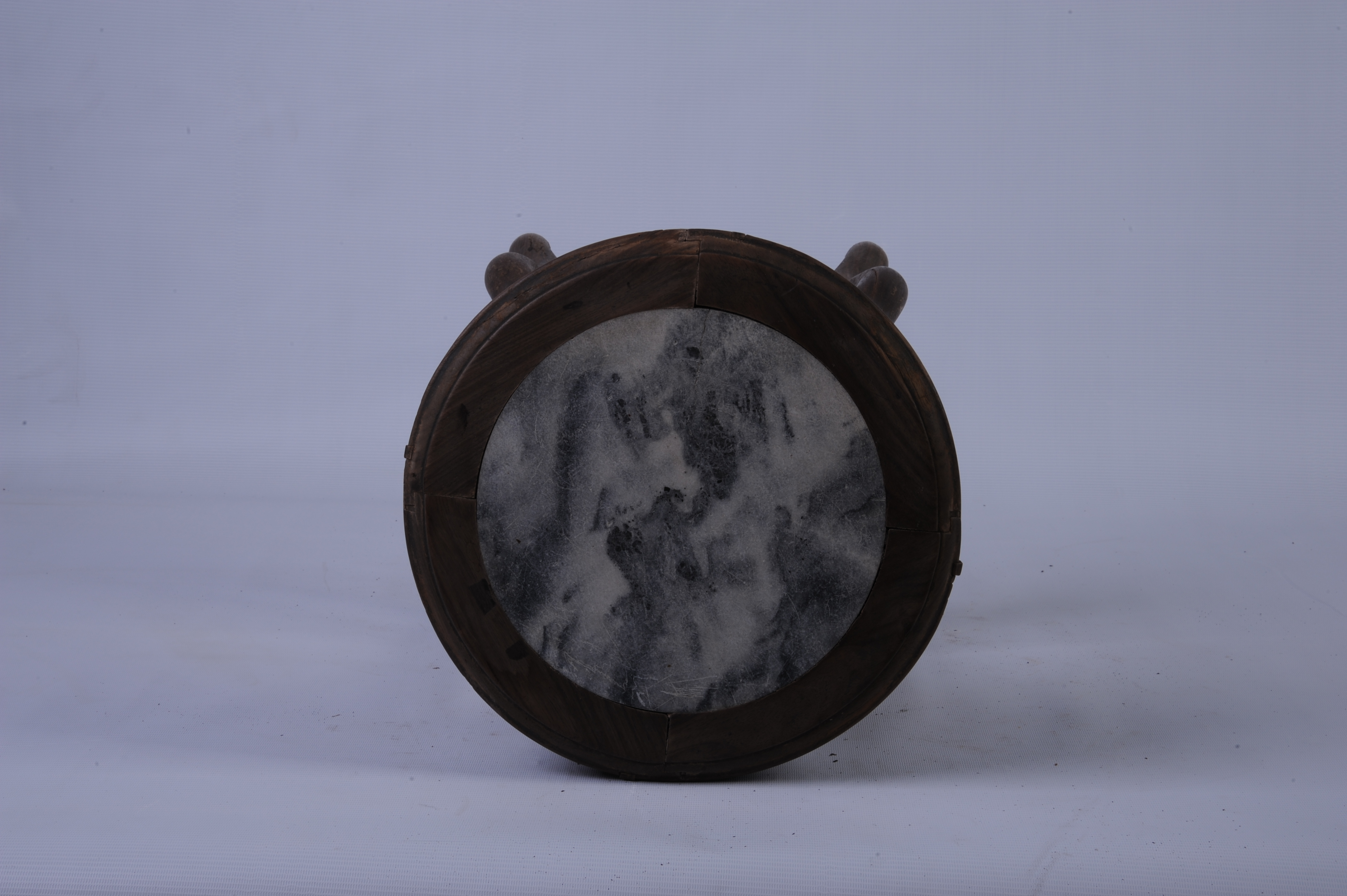 中华民国酸枝镶石圆凳 中华民国,直径:34厘米,高:45厘米,管脚枨长:30厘米,宽:30厘米。