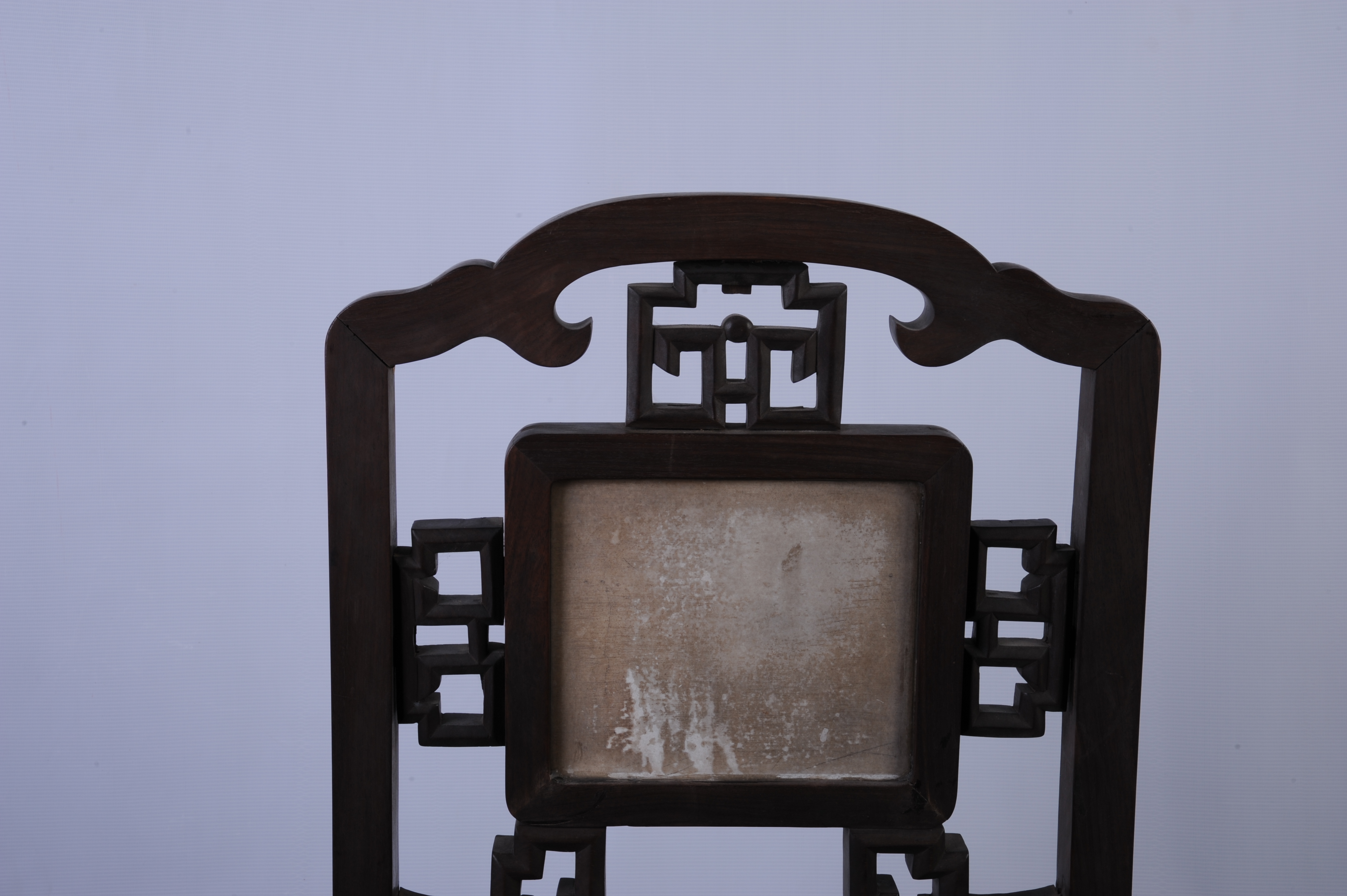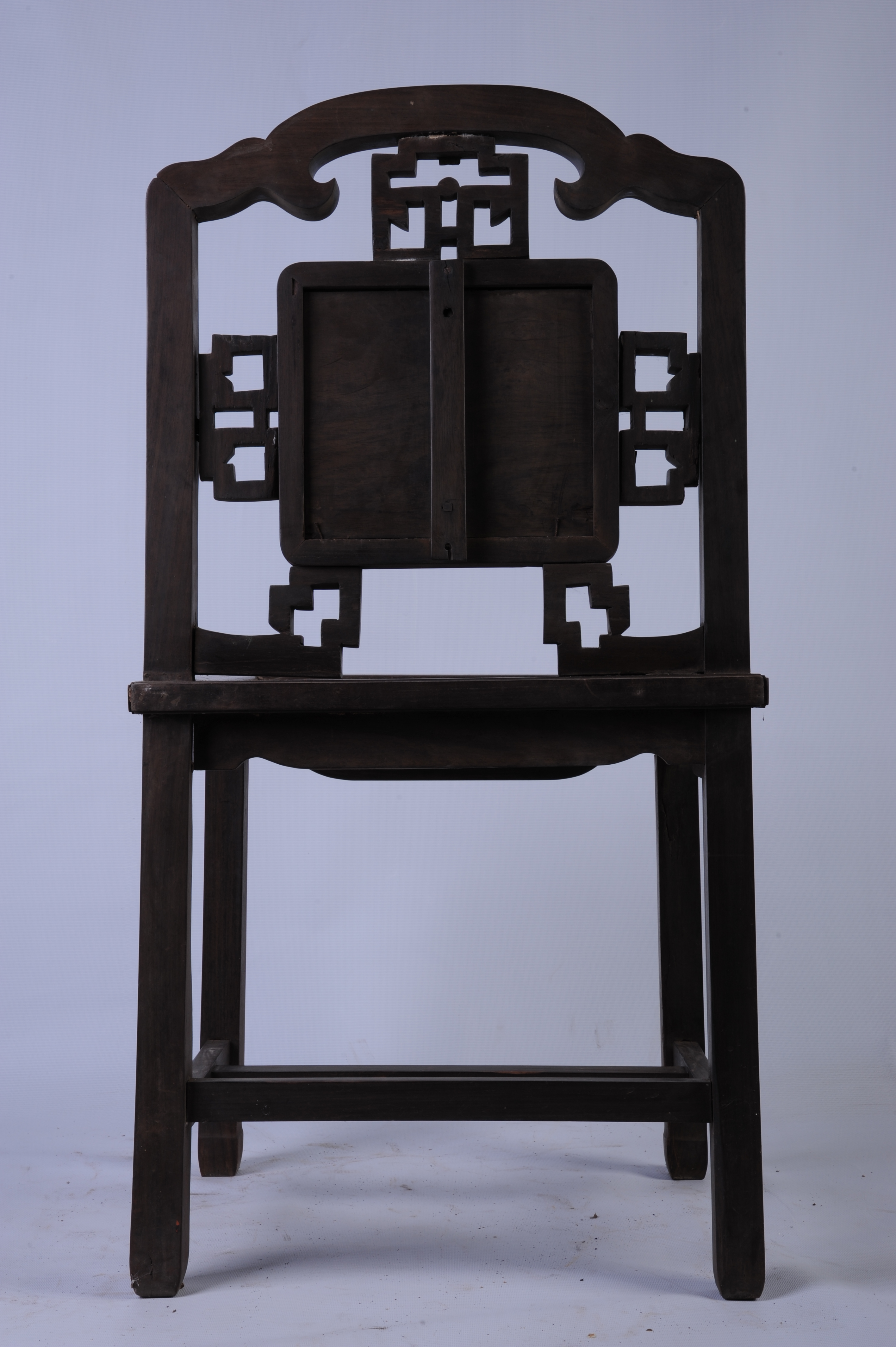 中华民国酸枝镶石靠背椅 中华民国,通长:53厘米,通宽:42.5厘米,通高:100厘米。
