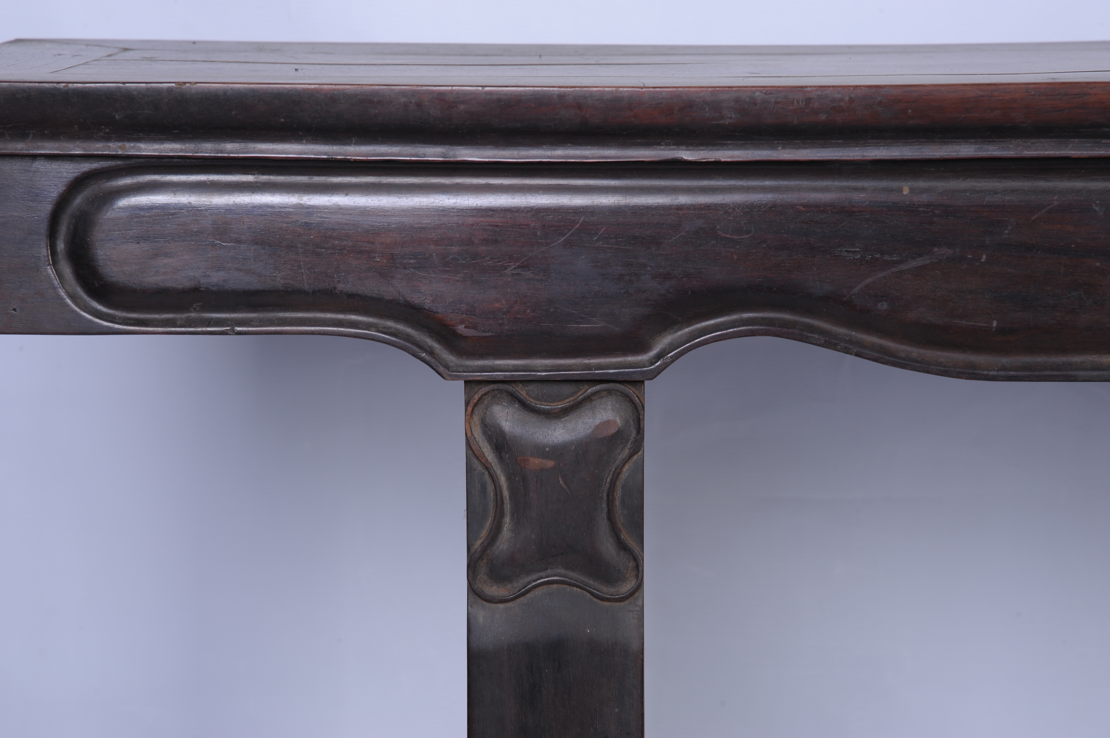 清酸枝长案 清,通长:208厘米,通宽:43厘米,通高:103厘米。