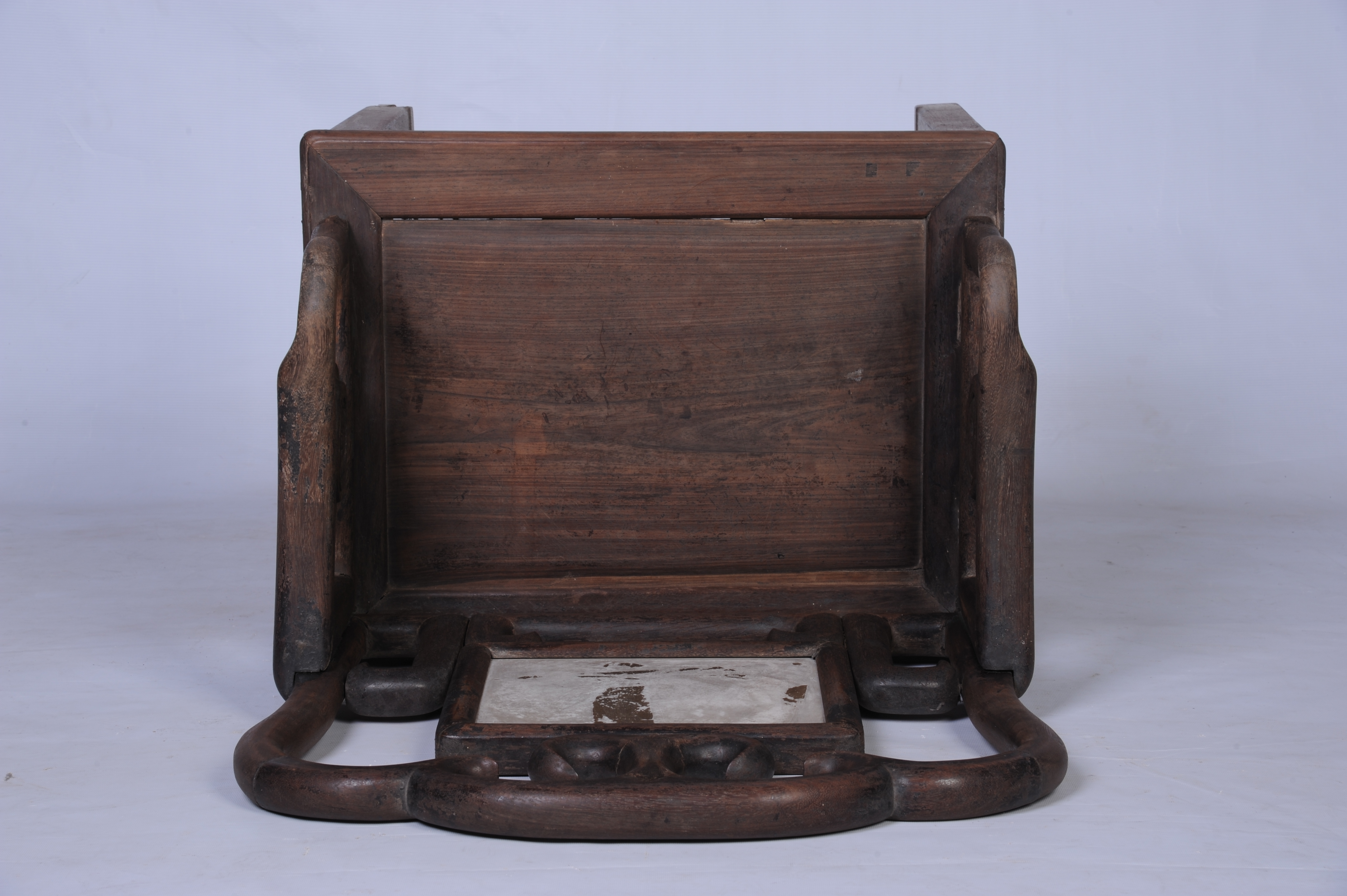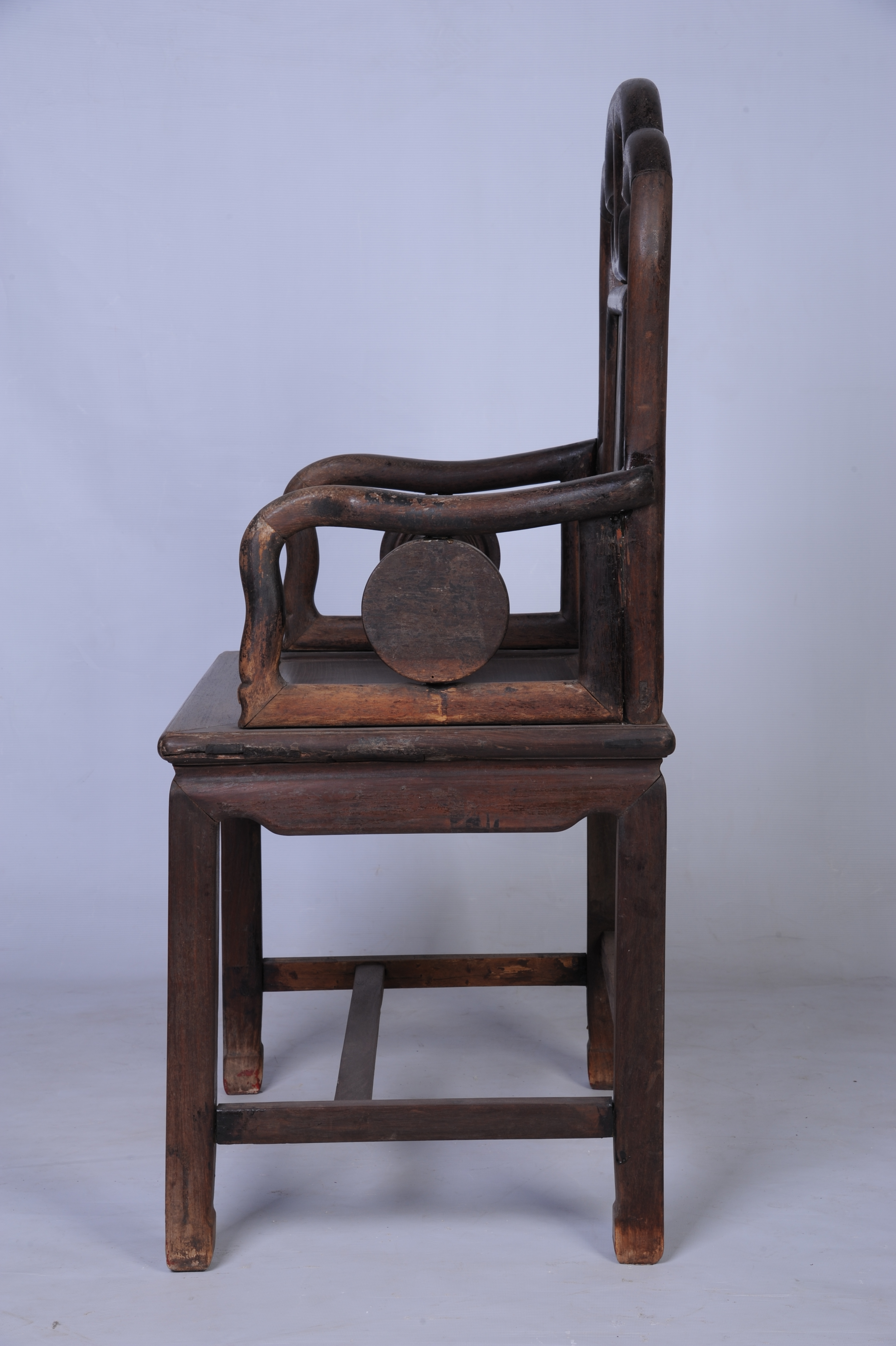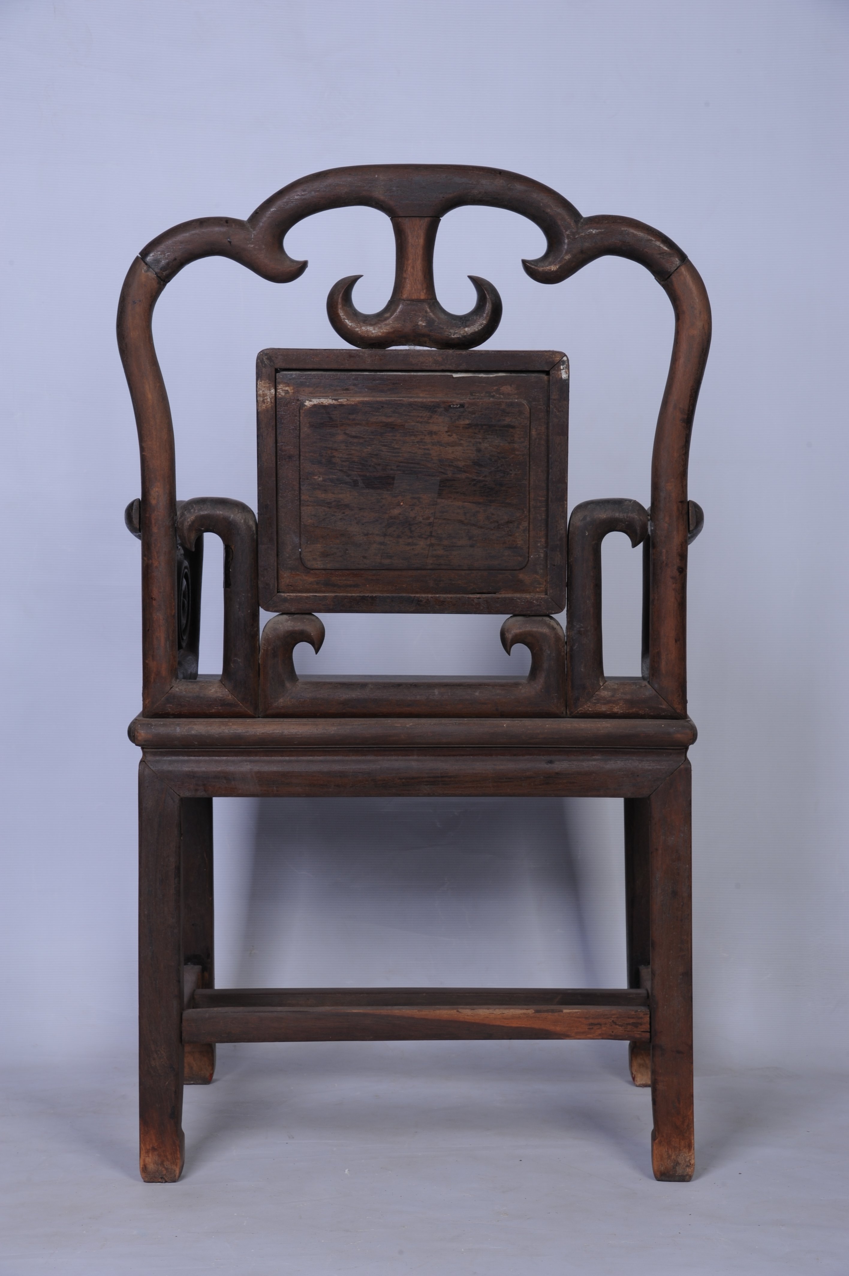 中华民国酸枝镶石公座椅 中华民国,通长:62厘米,通宽:48厘米,通高:110厘米。