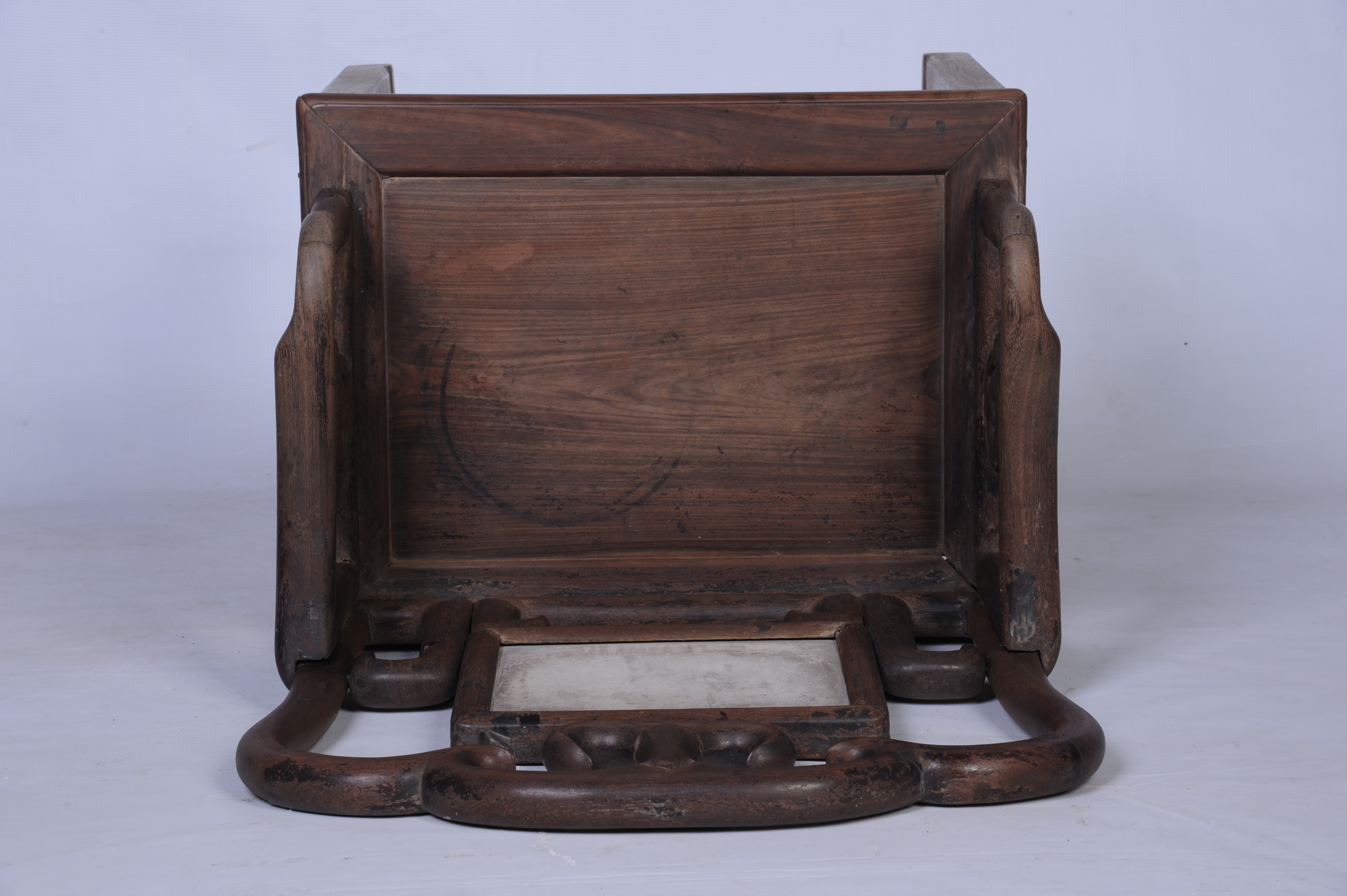 中华民国酸枝镶石公座椅 中华民国,通长:62厘米,通宽:47厘米,通高:110厘米。