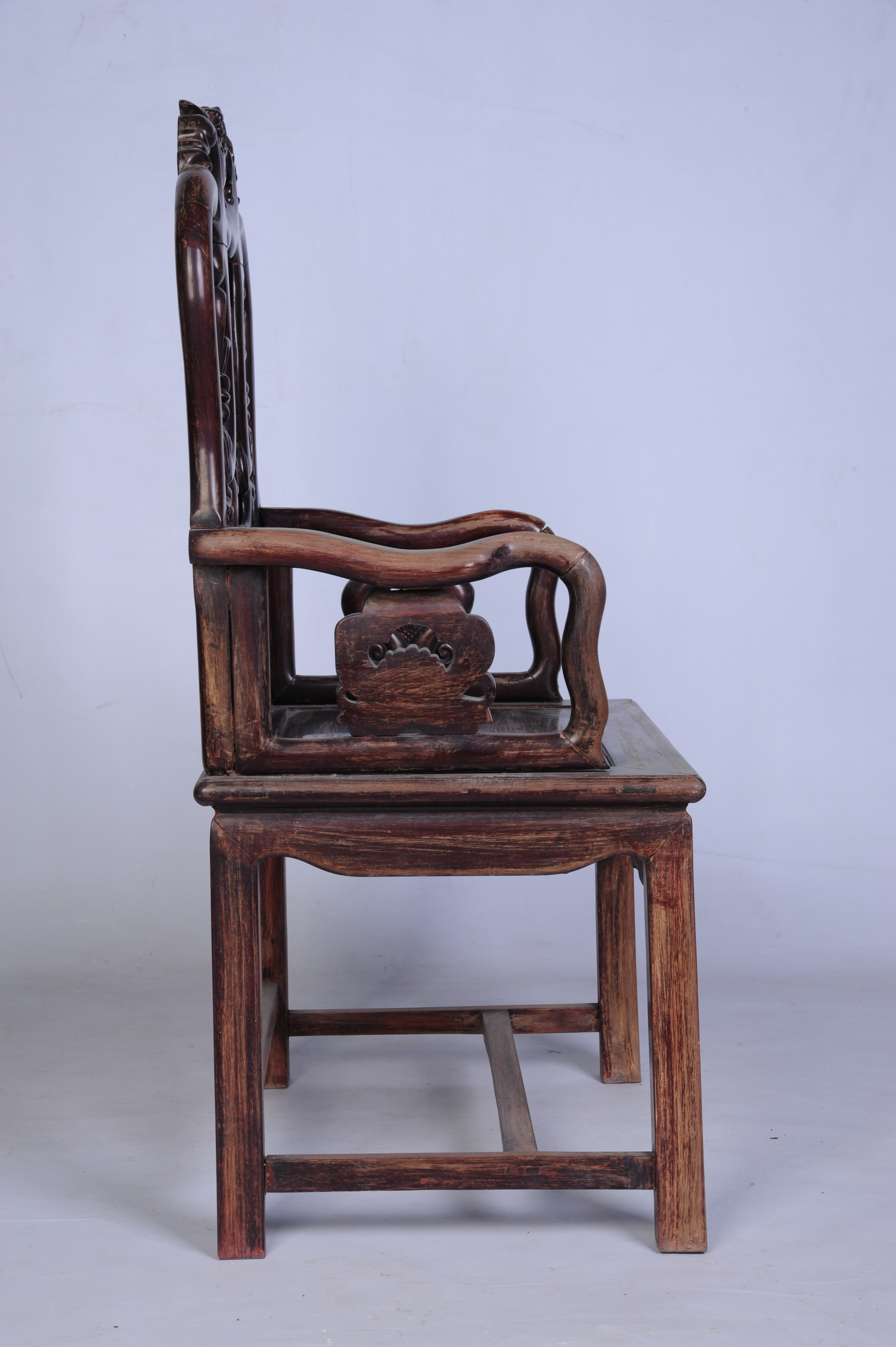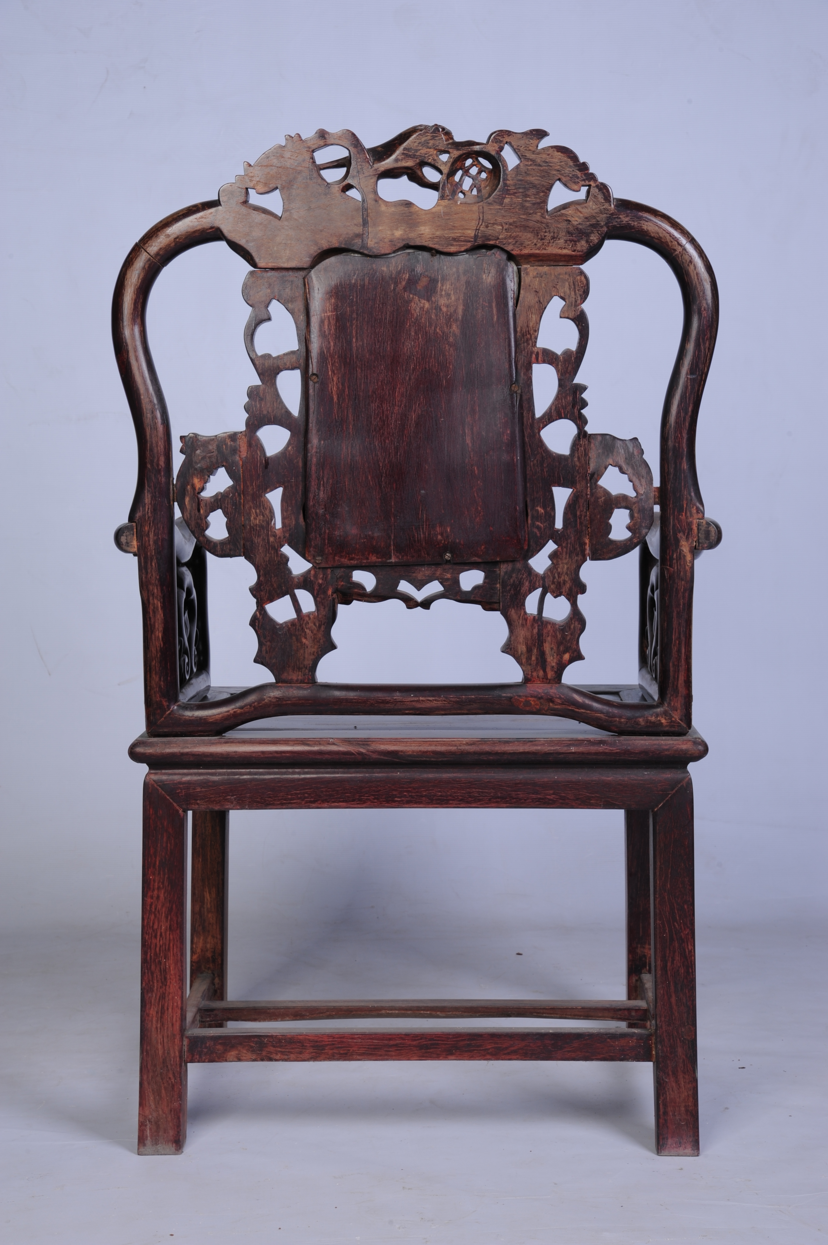 中华民国酸枝镶云石公座椅 中华民国,通长:61厘米,通宽:48厘米,通高:108厘米。