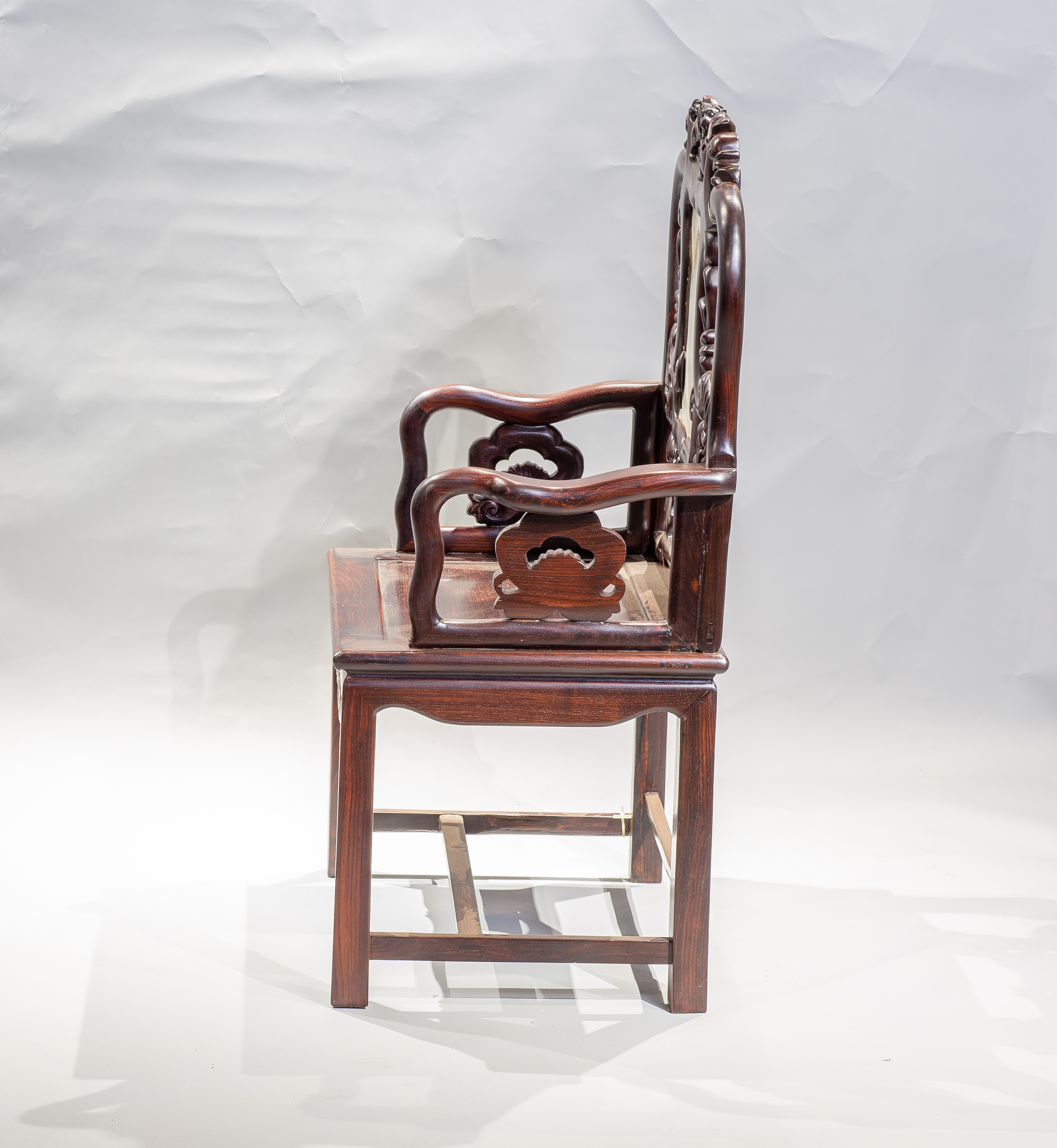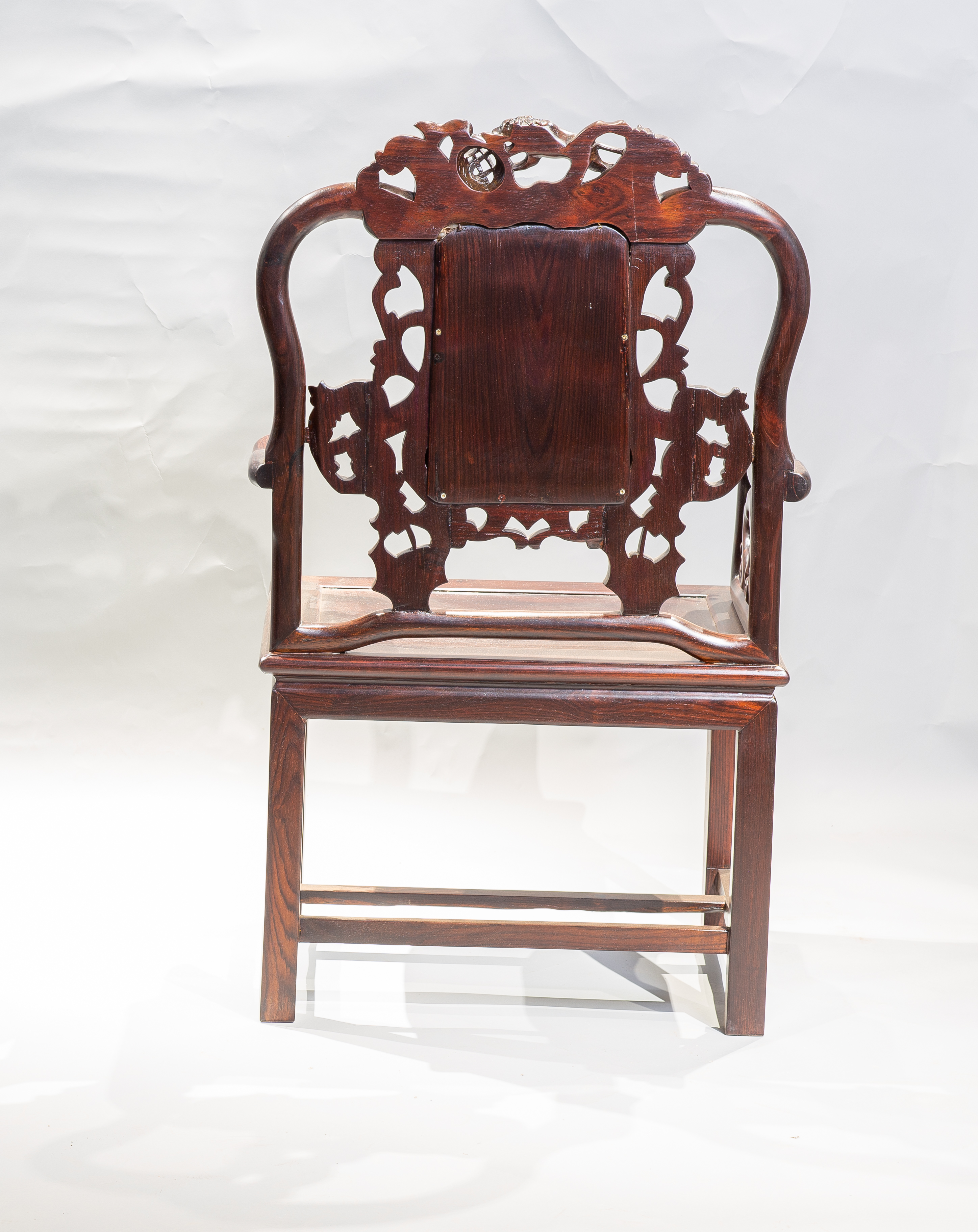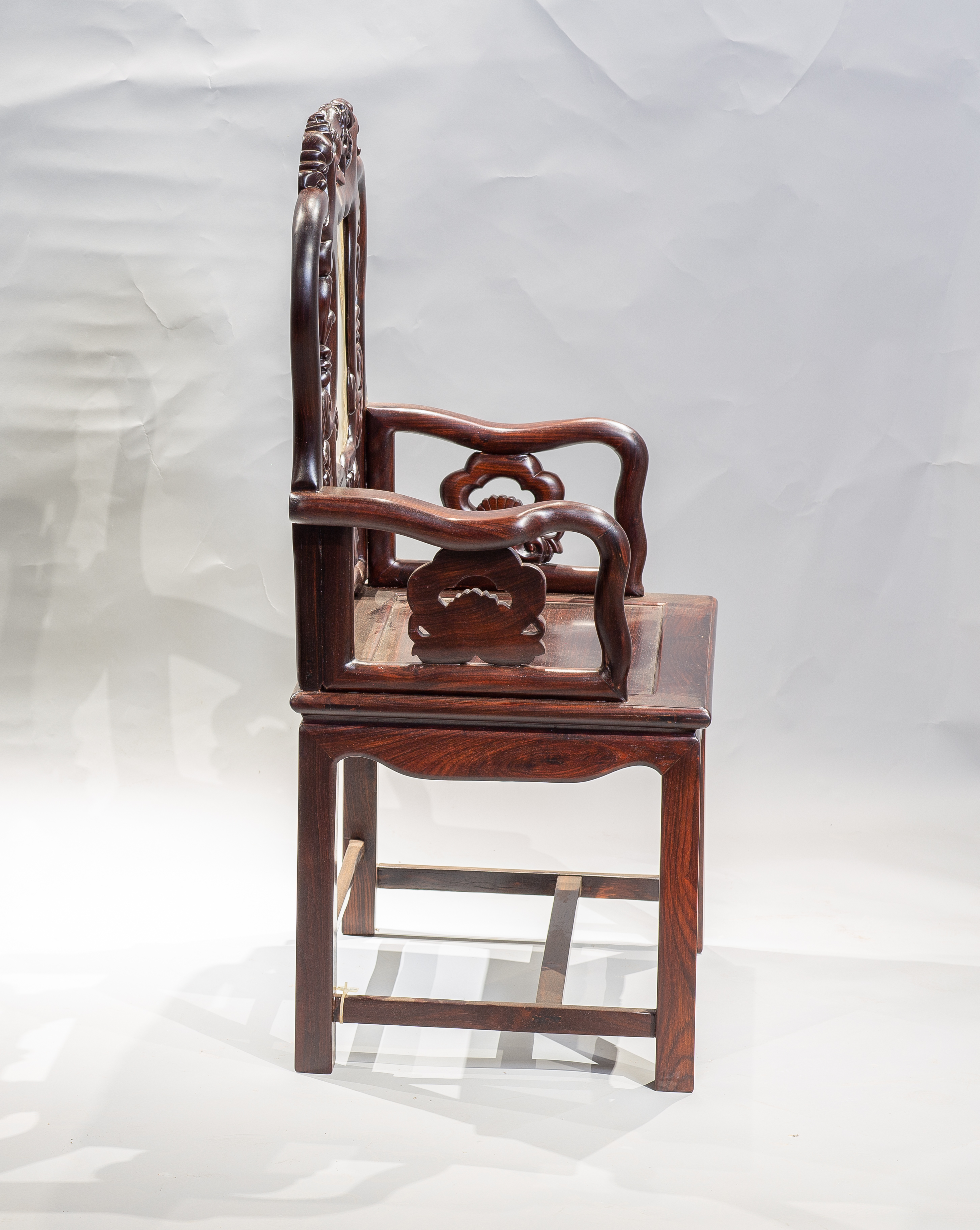 中华民国酸枝镶石公座椅 中华民国,通长:62.5厘米,通宽:47厘米,通高:109厘米。