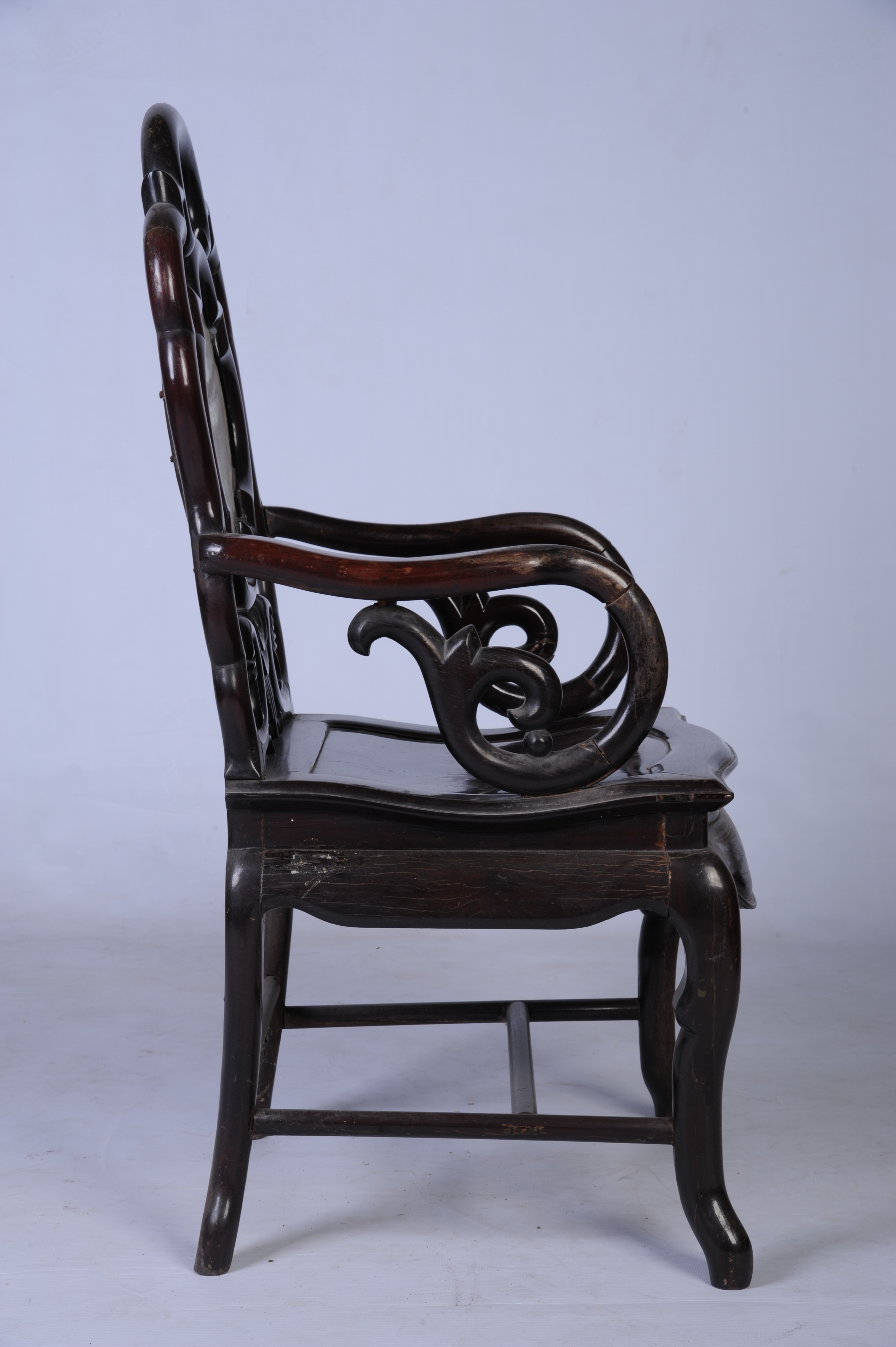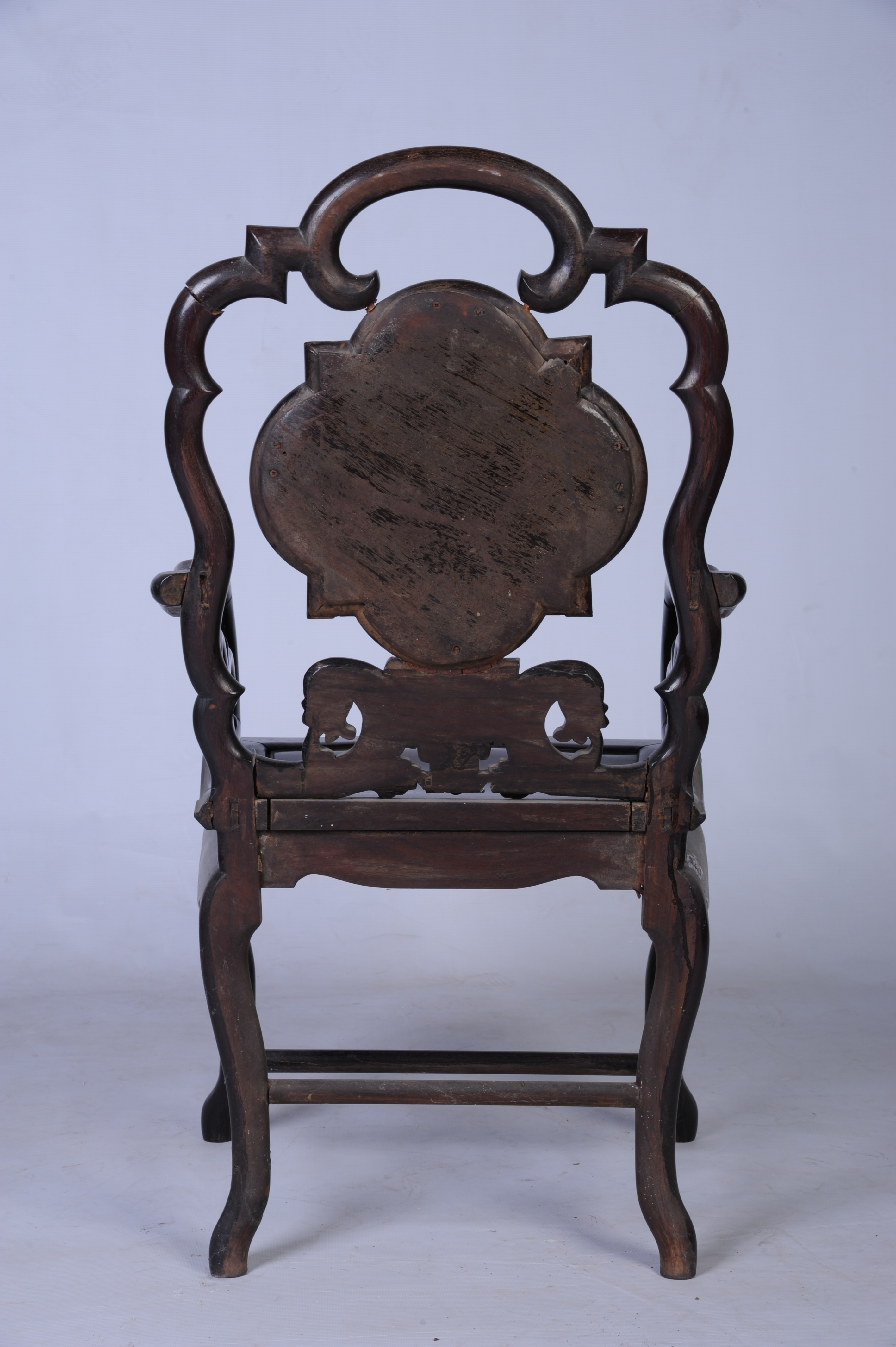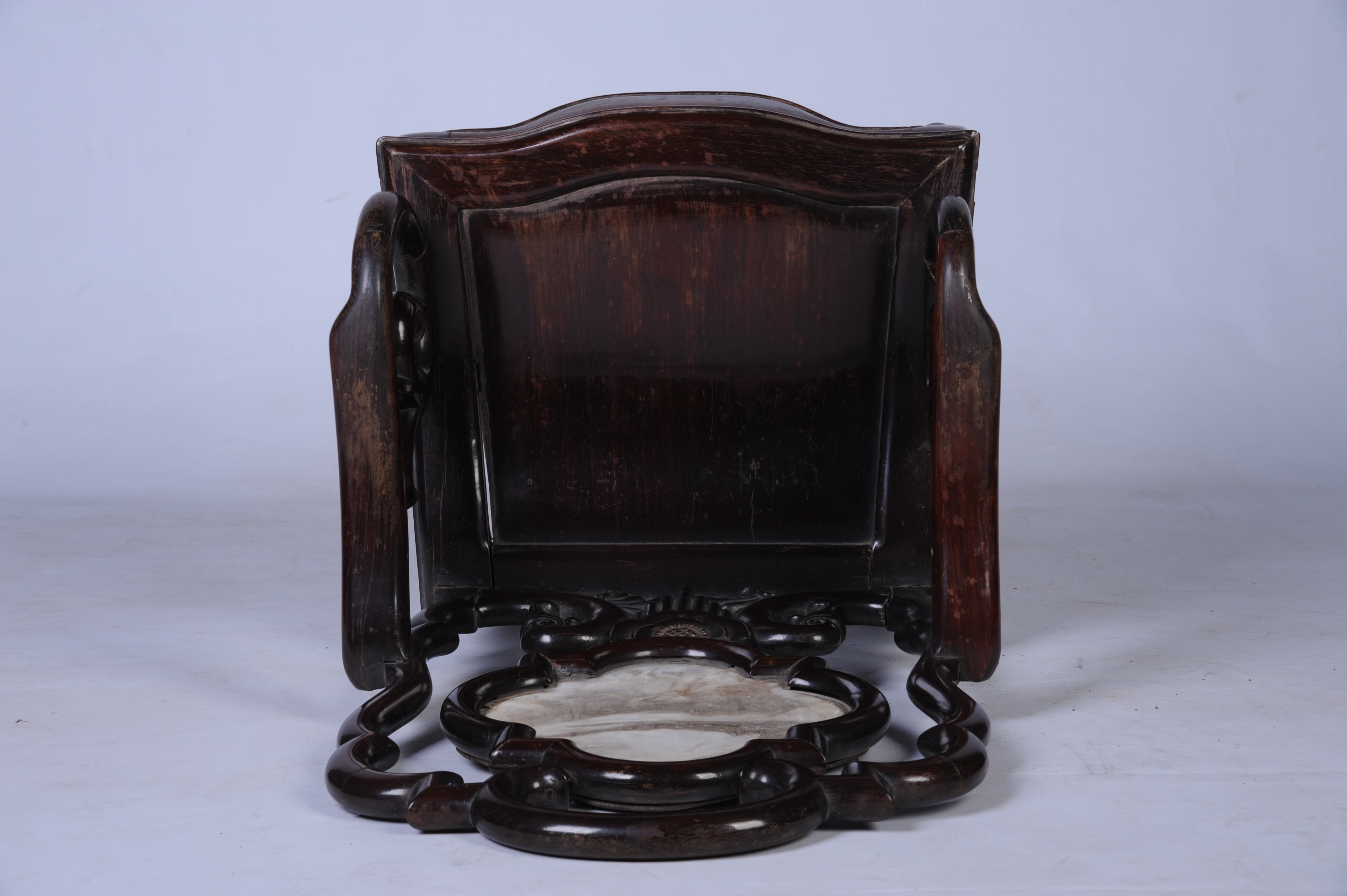 中华民国酸枝镶石扶手椅 中华民国,通长:55厘米,通宽:45厘米,通高:105厘米。