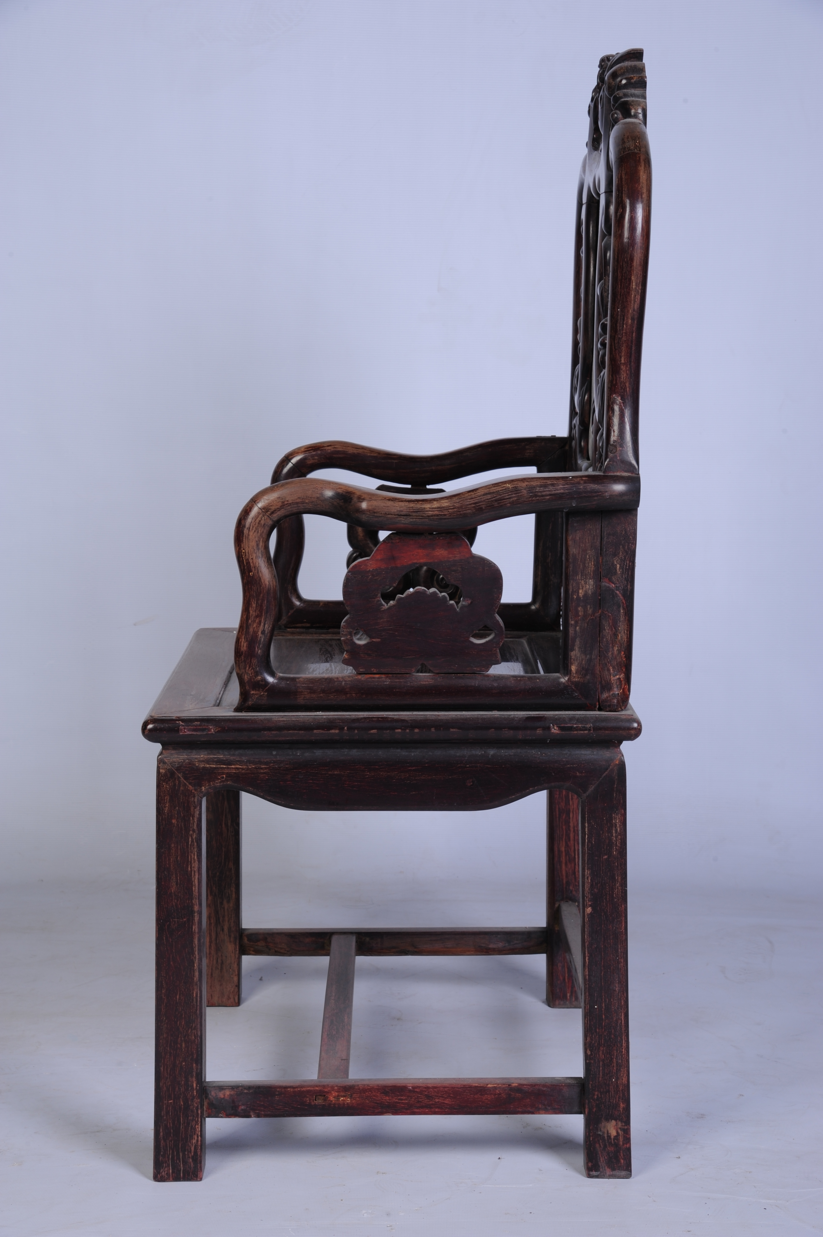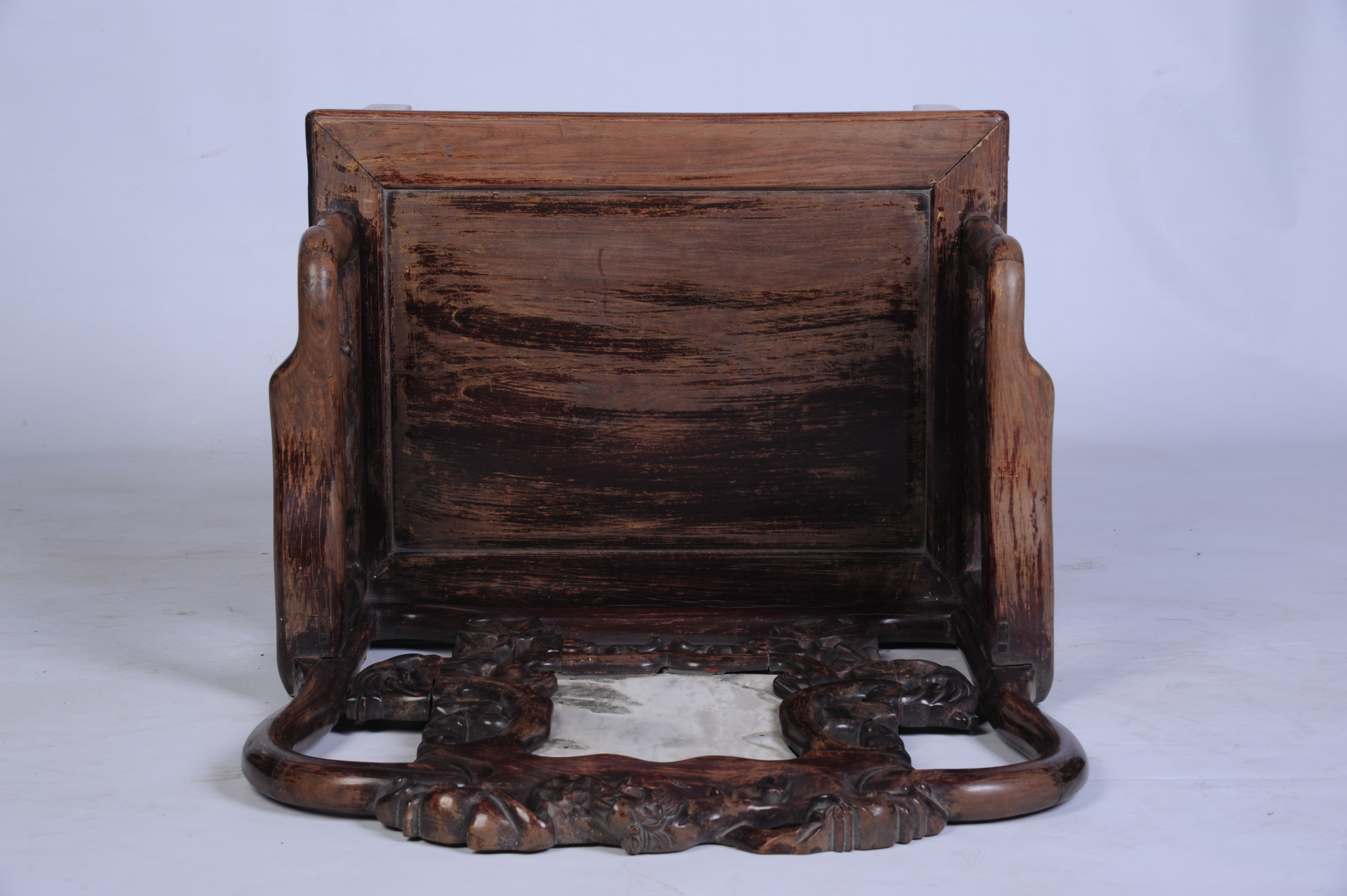 中华民国酸枝镶石靠背椅 中华民国,通长:62厘米,通宽:48厘米,通高:108厘米。