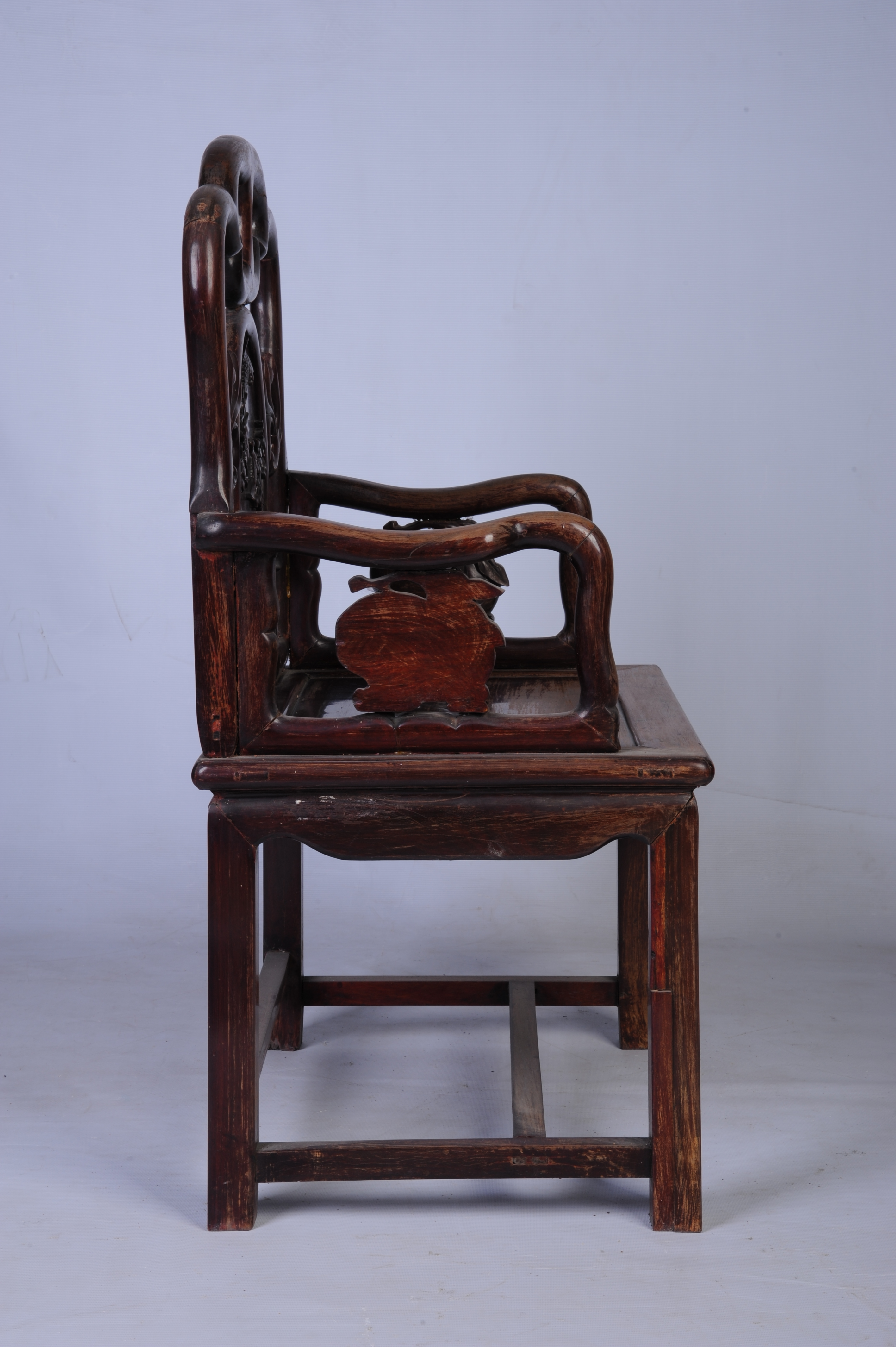 中华民国酸枝公座椅 中华民国,通长:61.5厘米,通宽:48.5厘米,通高:102厘米。