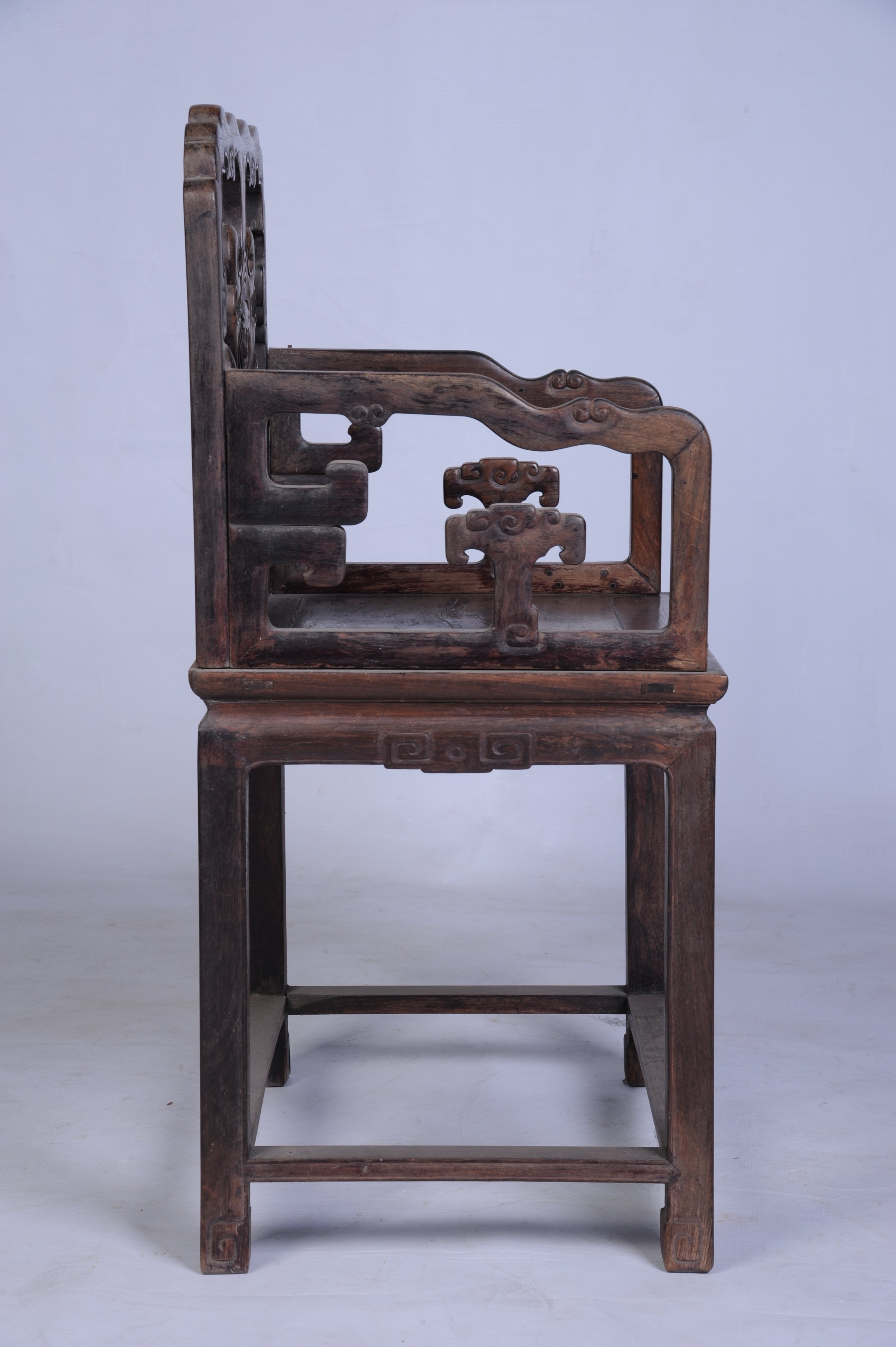 中华民国酸枝公座椅 中华民国,通长:59.5厘米,通宽:46厘米,通高:98厘米。