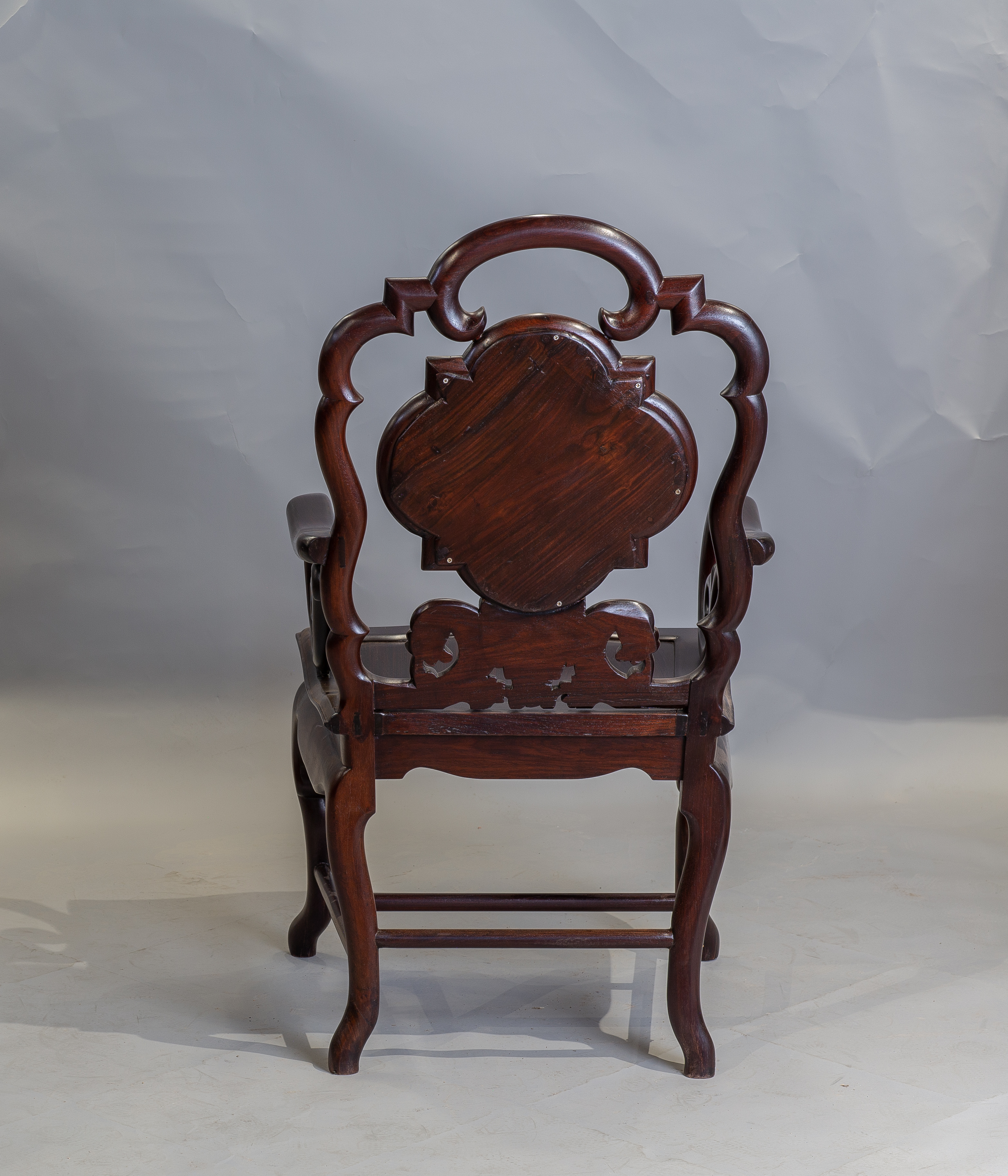 中华民国酸枝镶石扶手椅 中华民国,通长:55厘米,通宽:45厘米,通高:103厘米。