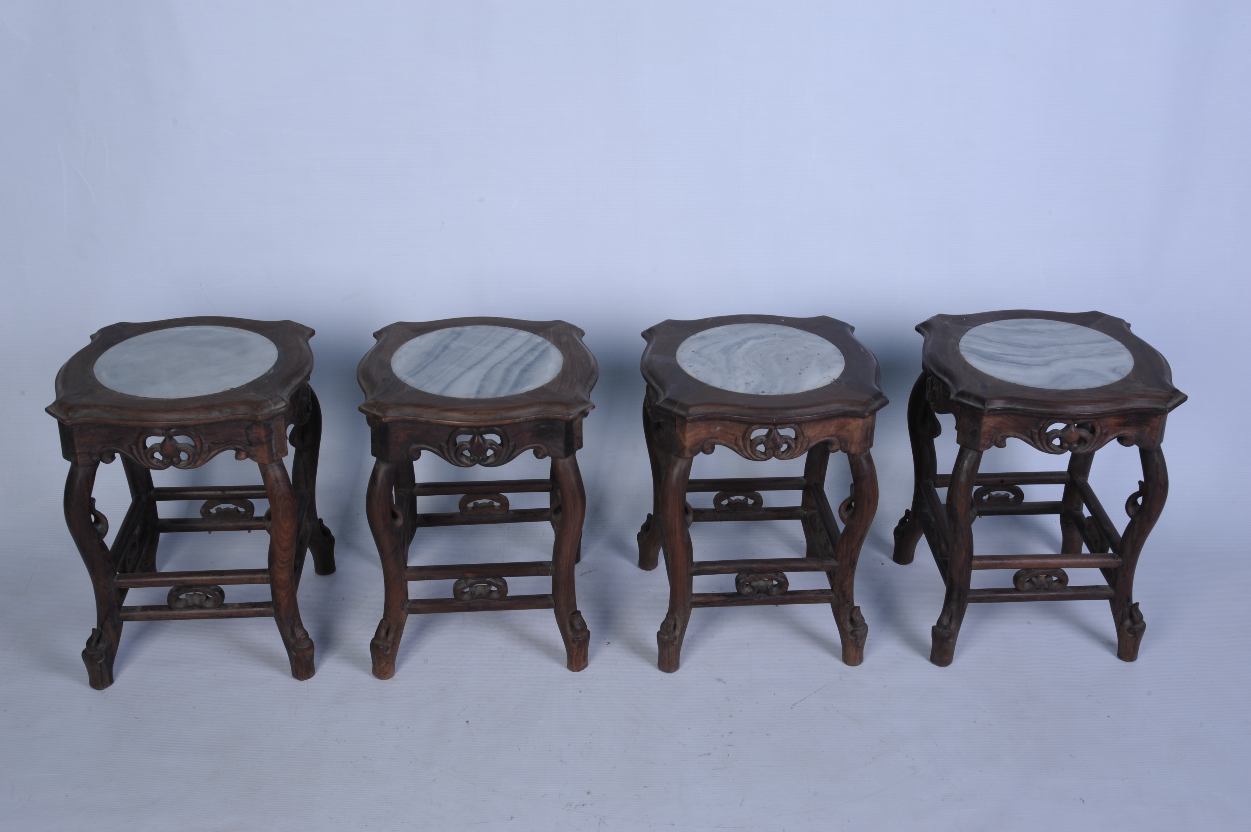 中华民国酸枝镶石凳(1套4件) 中华民国,通长:32厘米,通宽:32厘米,通高:46厘米。