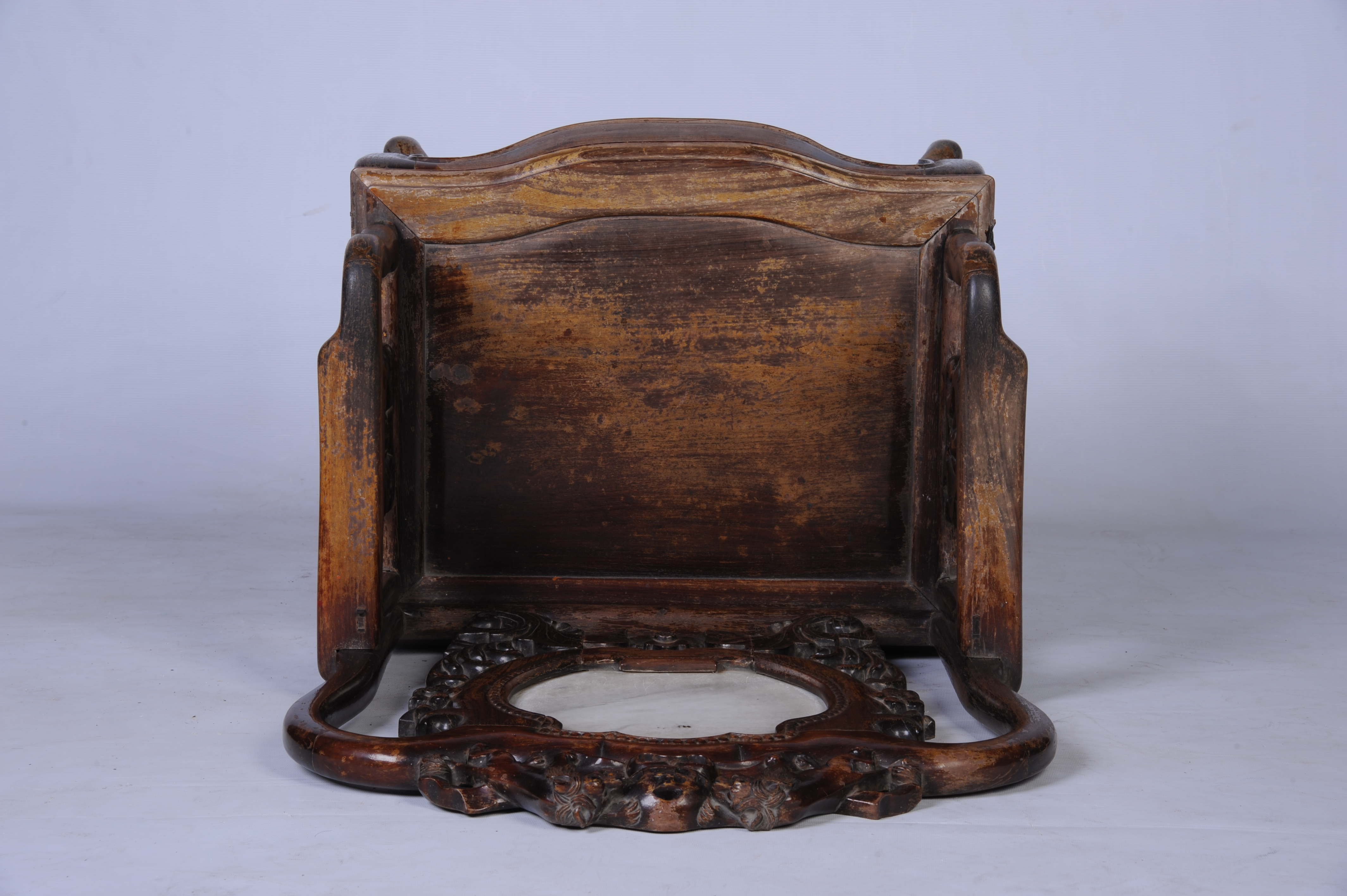 中华民国酸枝镶石公座椅 中华民国,通长:62.5厘米,通宽:47.5厘米,通高:114厘米。