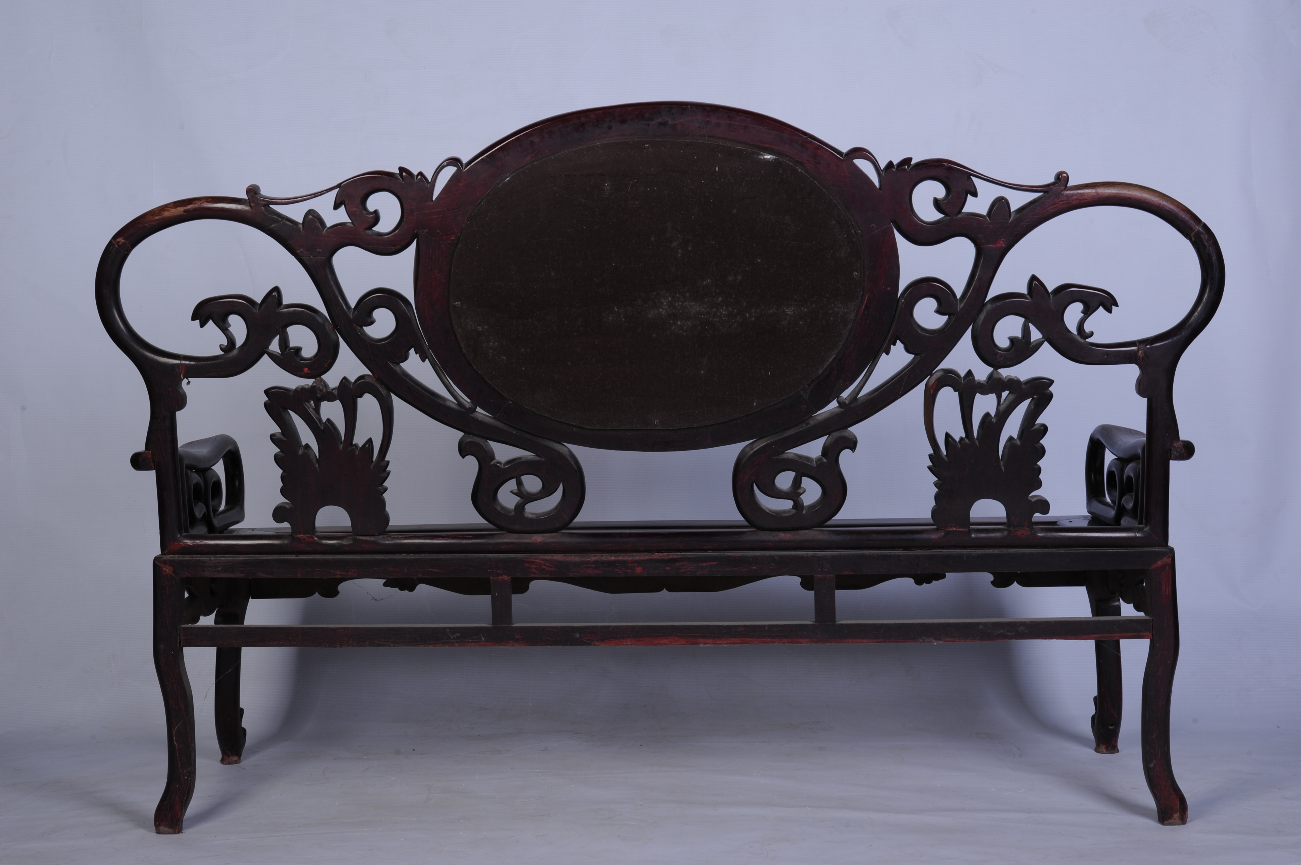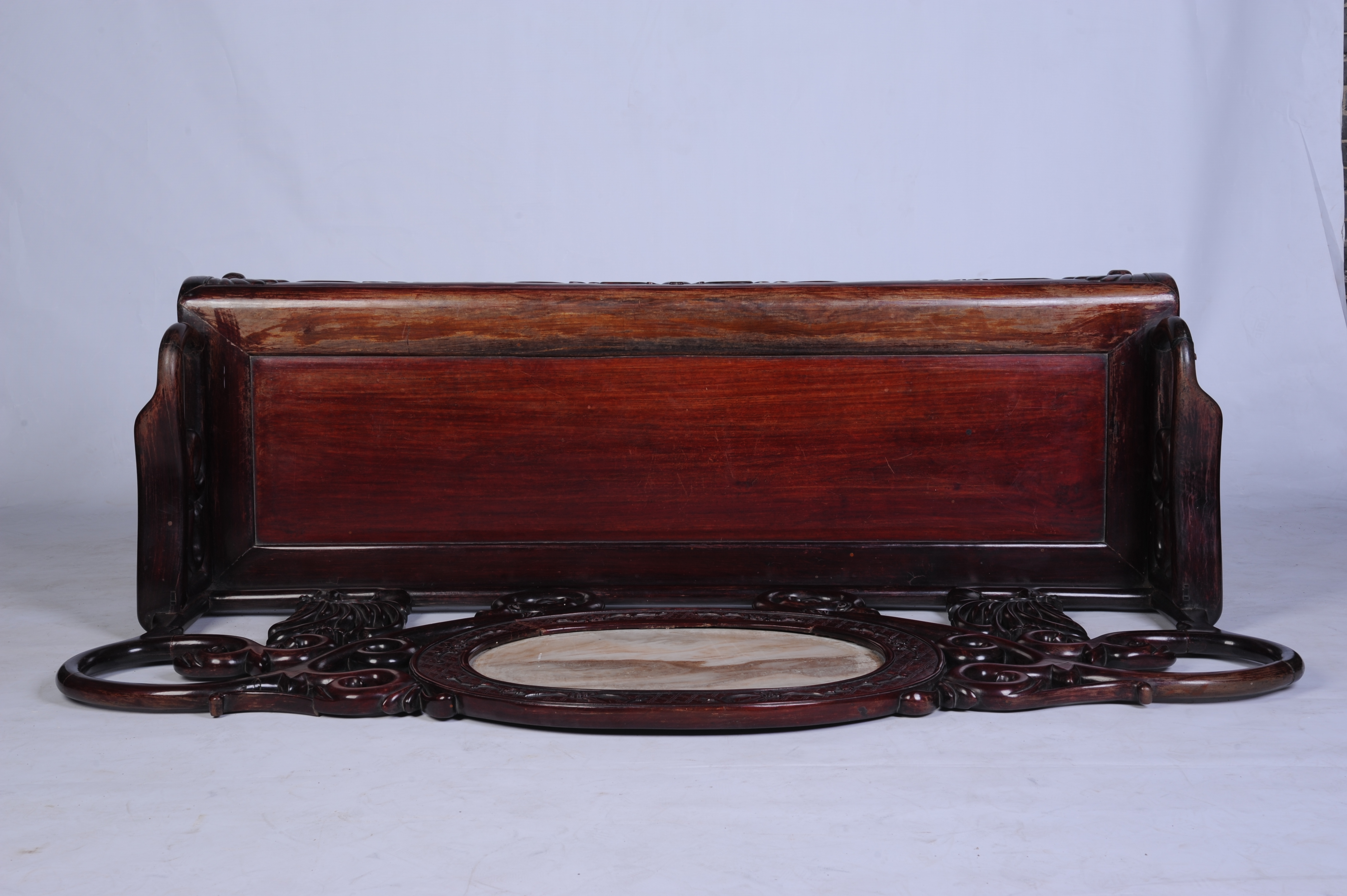 中华民国酸枝镶石长炕床 中华民国,通长:167厘米,通宽:56厘米,通高:120厘米。
