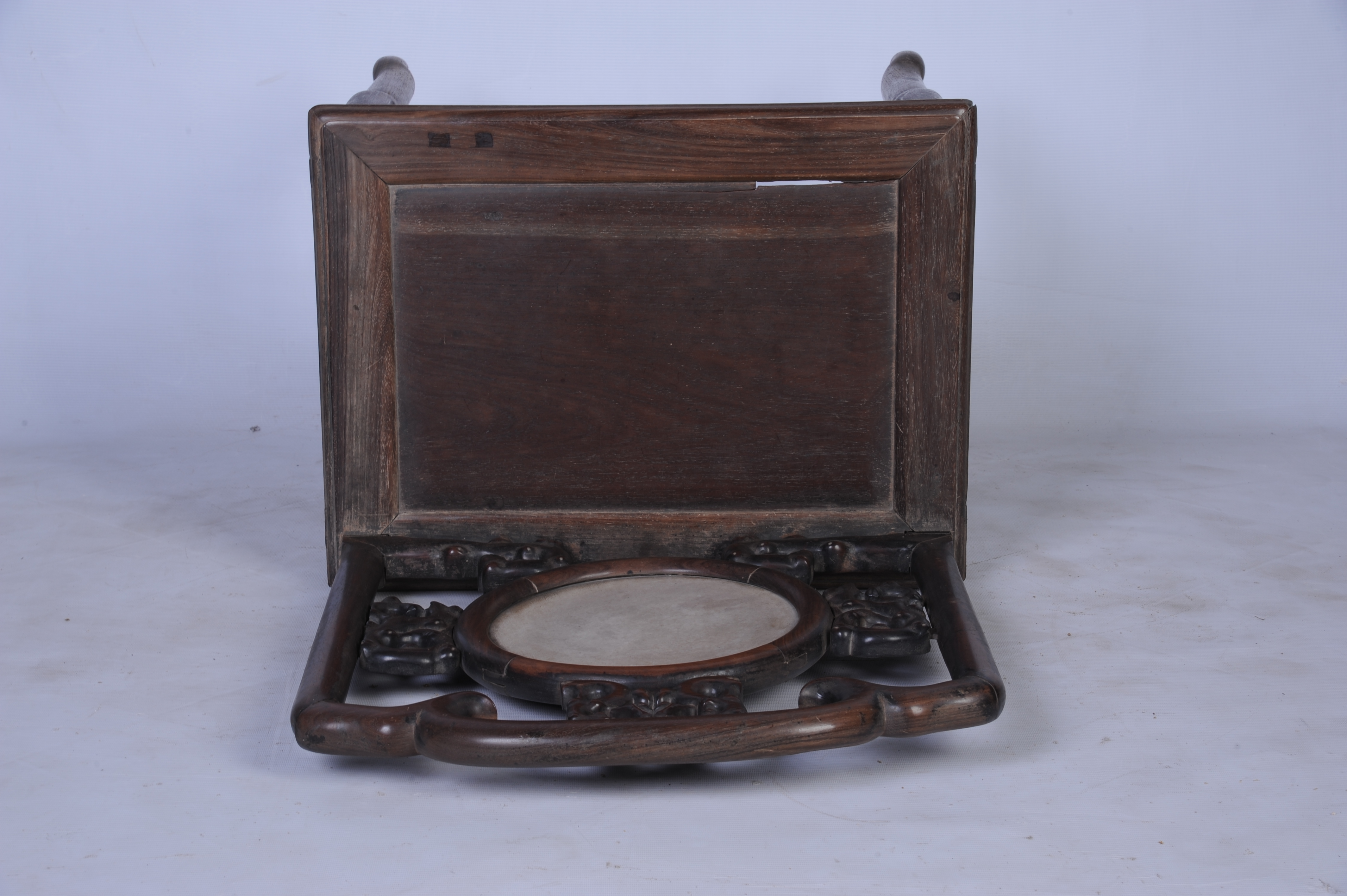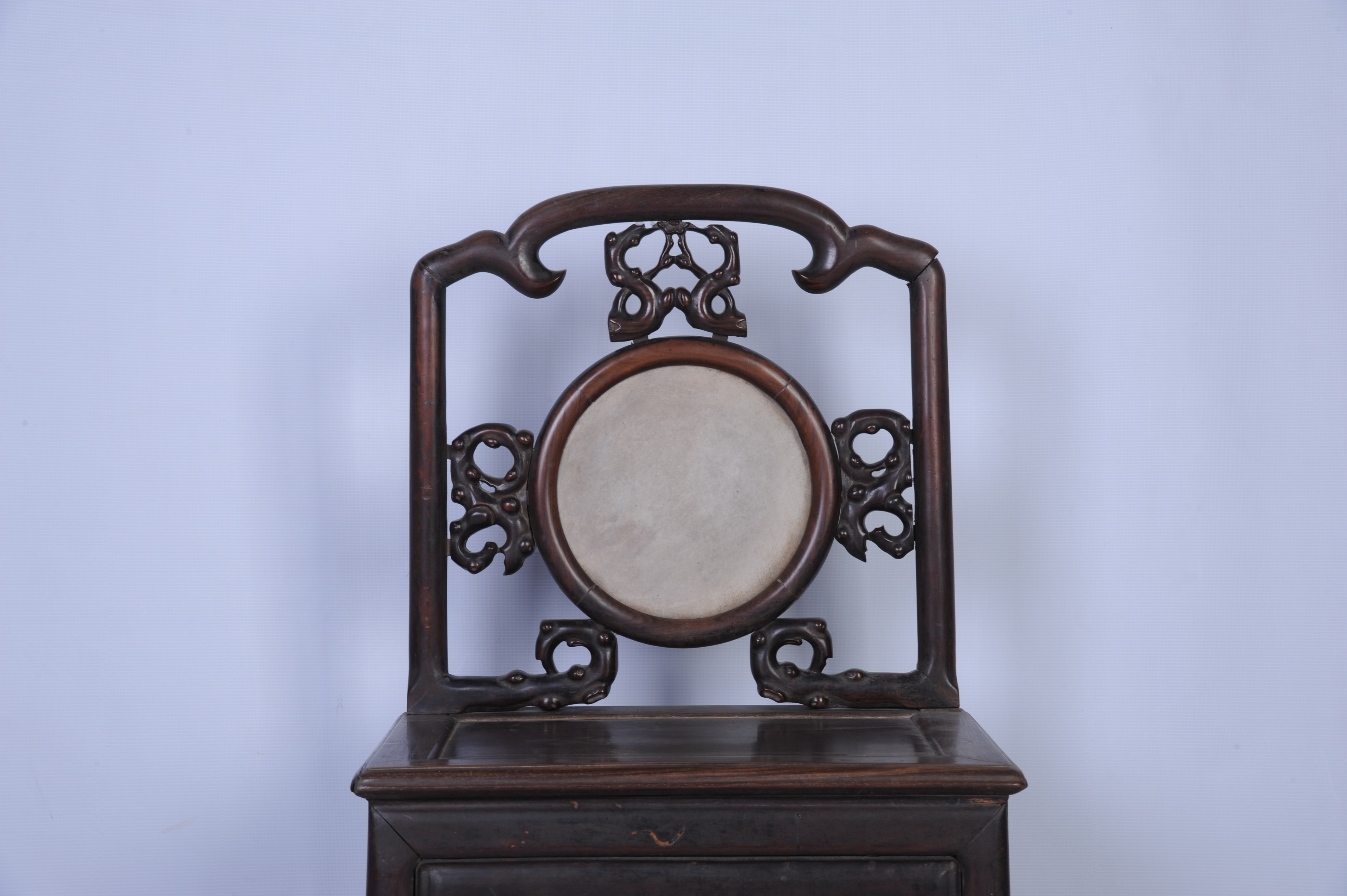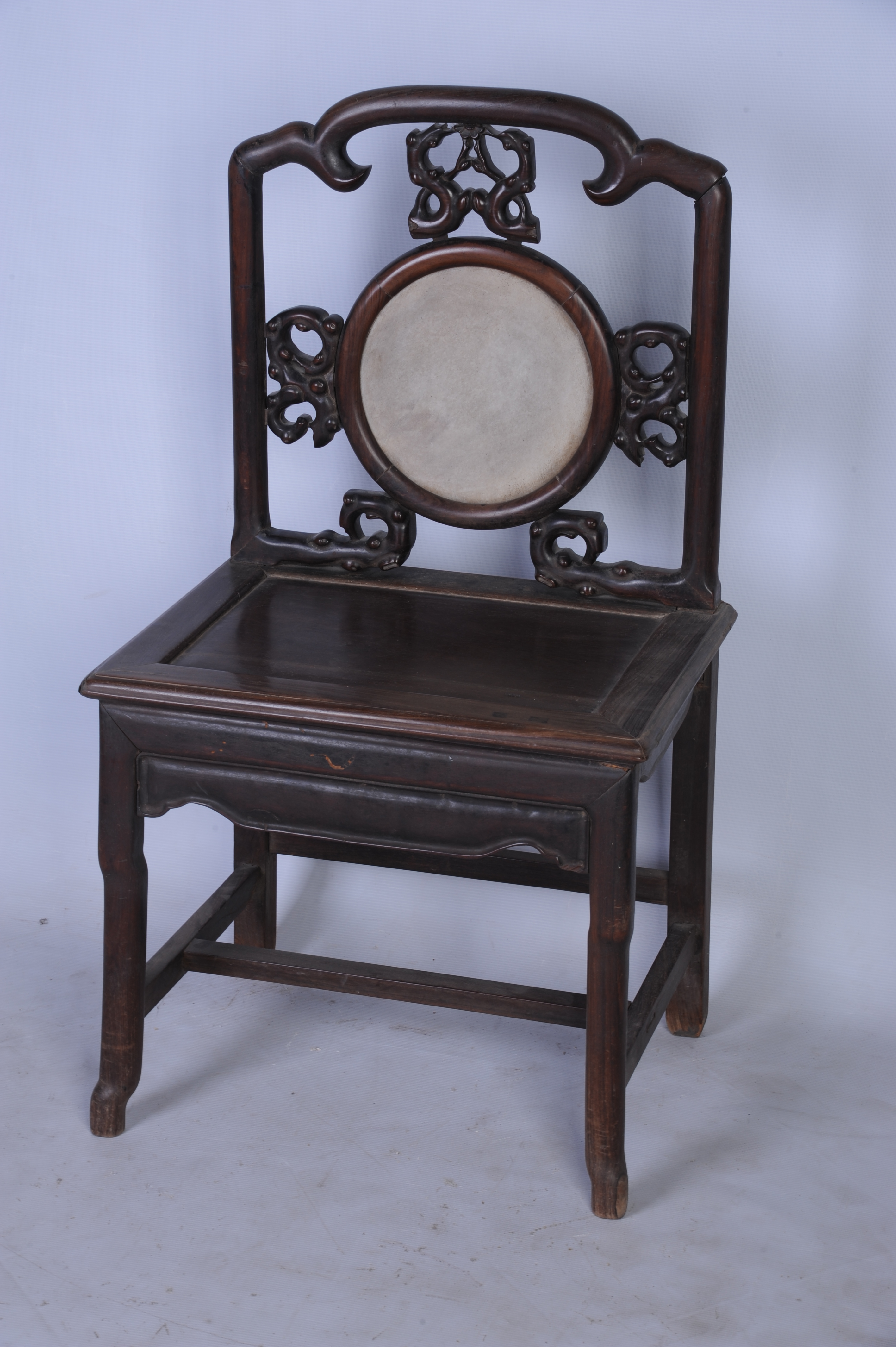 中华民国酸枝镶石靠背椅 中华民国,通长:58厘米,通宽:44厘米,通高:102厘米。