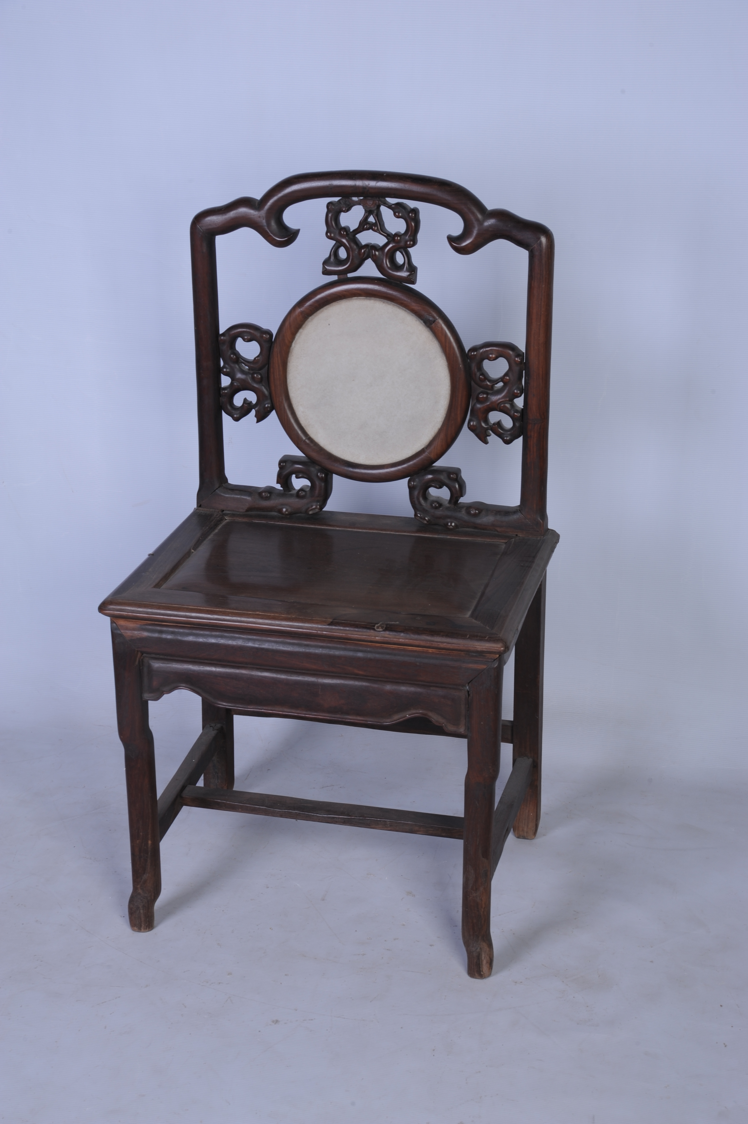 中华民国酸枝镶石靠背椅 中华民国,通长:58厘米,通宽:42厘米,通高:102厘米。
