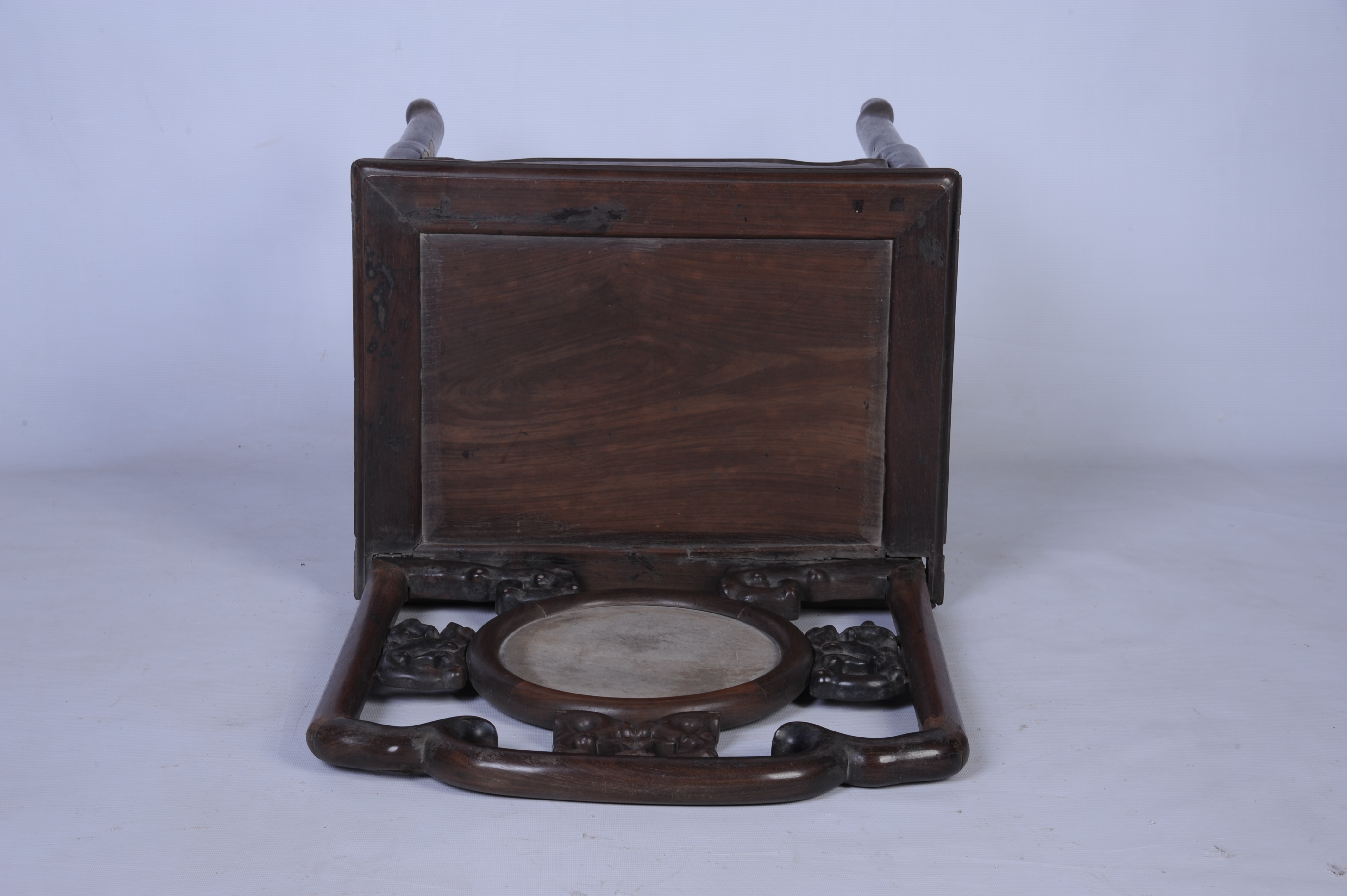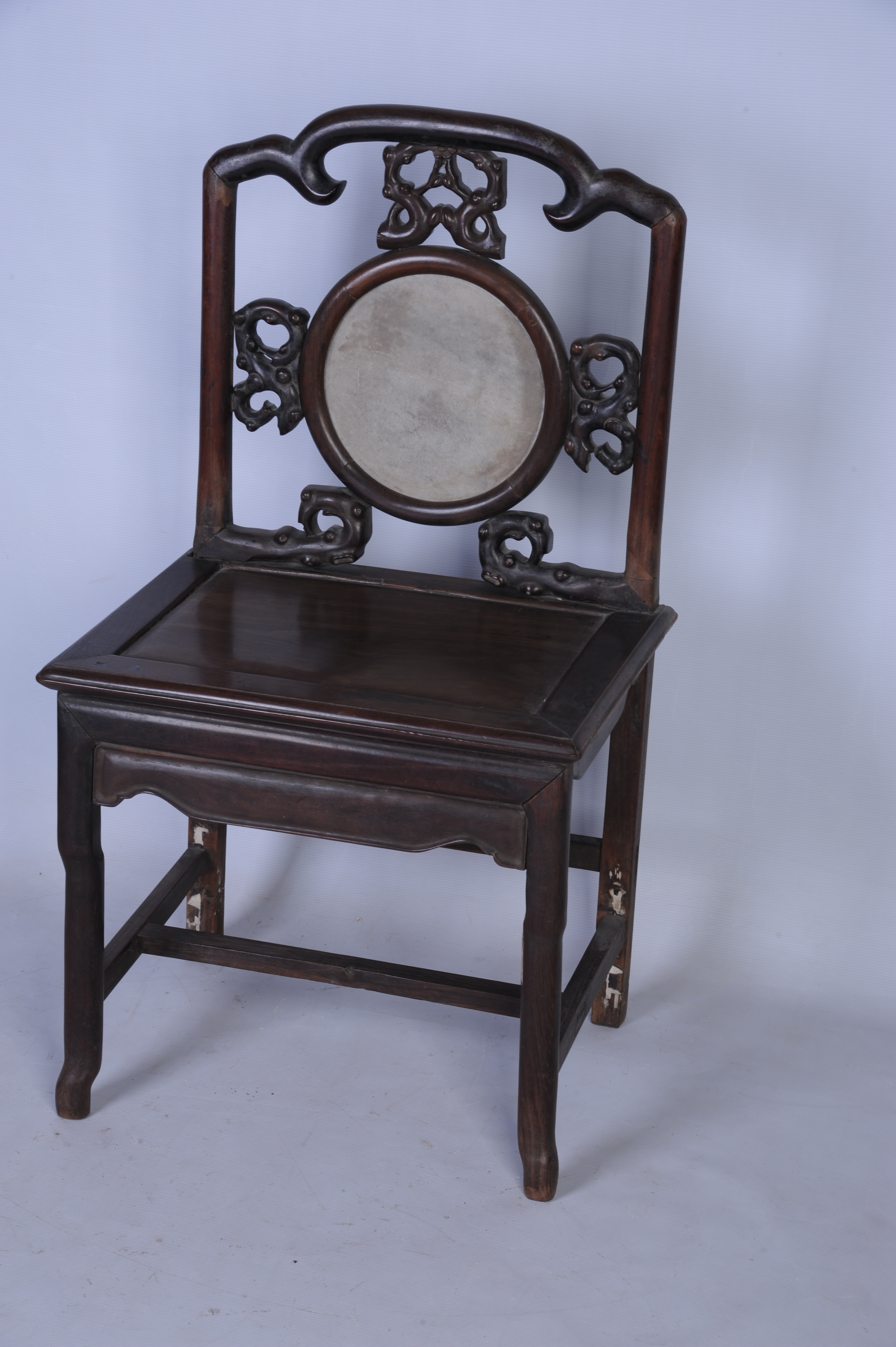 中华民国酸枝镶石靠背椅 中华民国,通长:58厘米,通宽:44厘米,通高:102厘米。