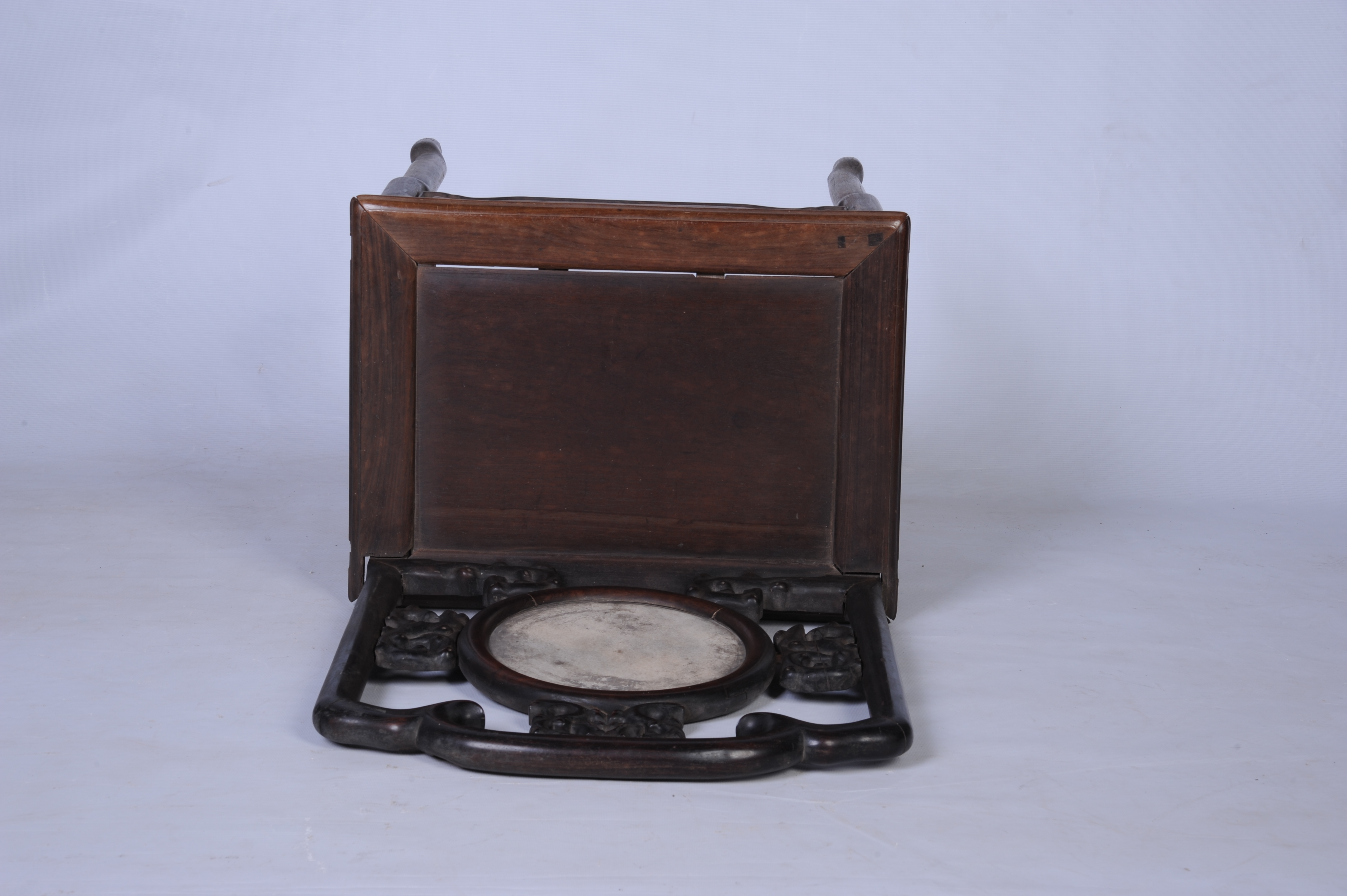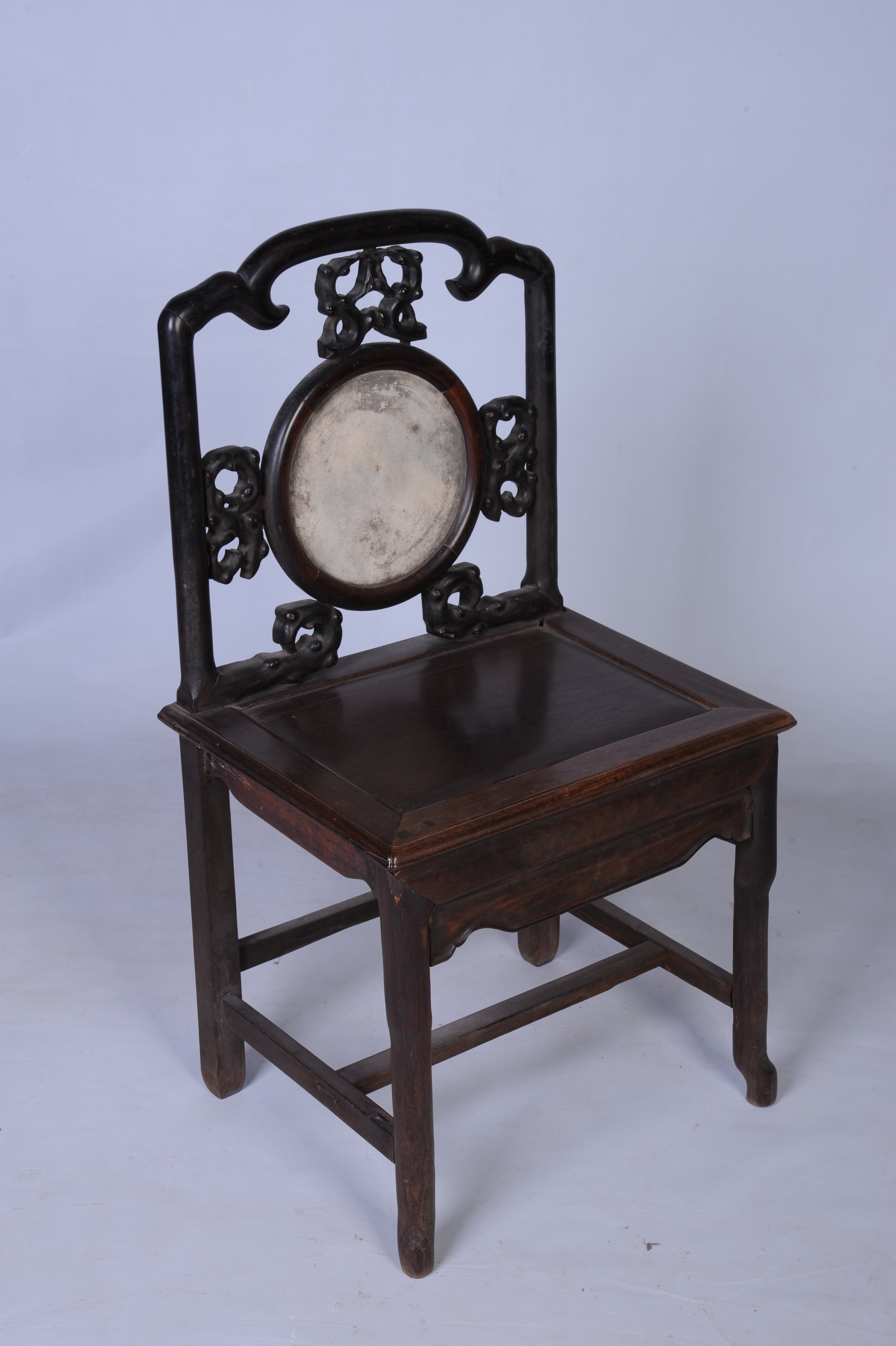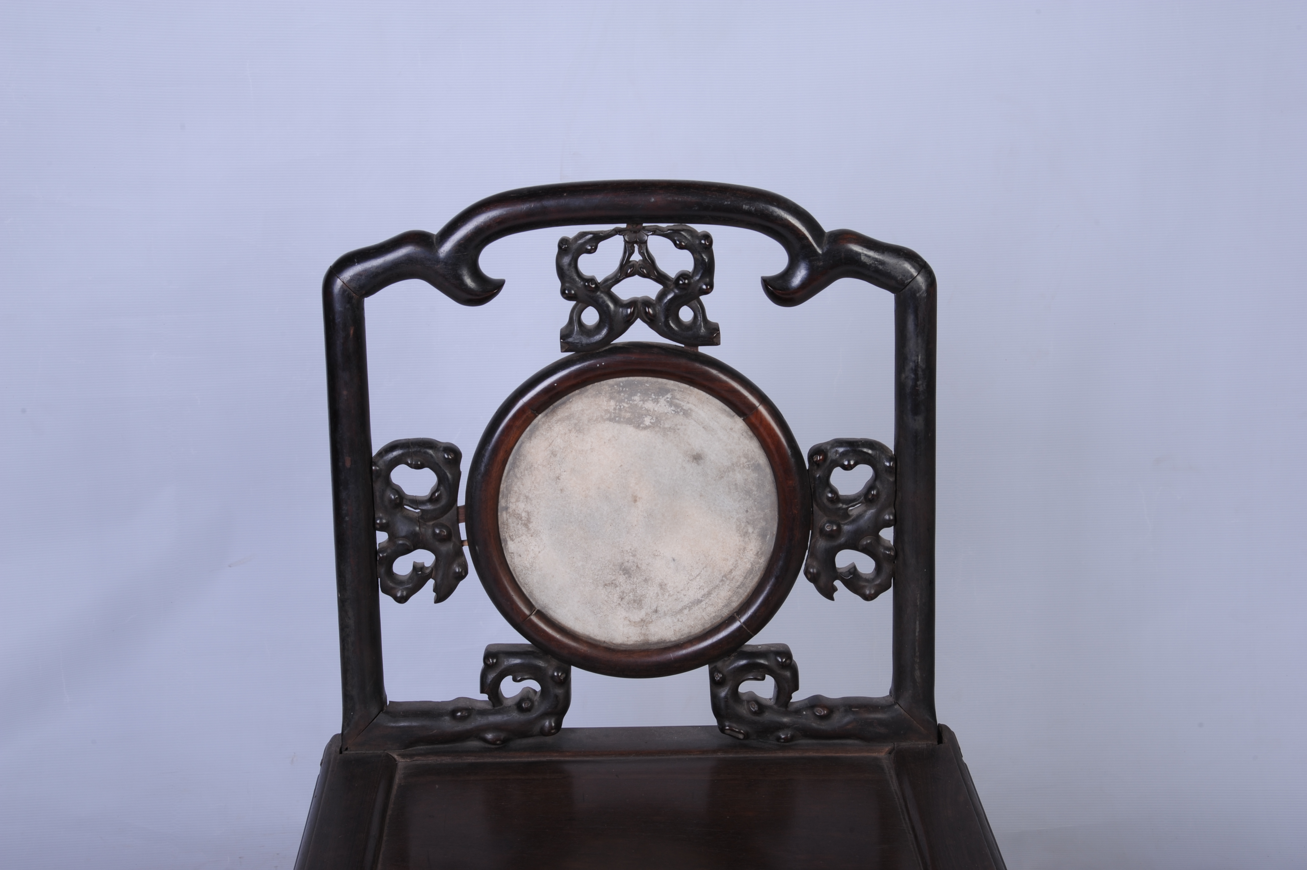 清末酸枝镶石靠背椅 清末,通长:58厘米,通宽:44厘米,通高:102厘米。