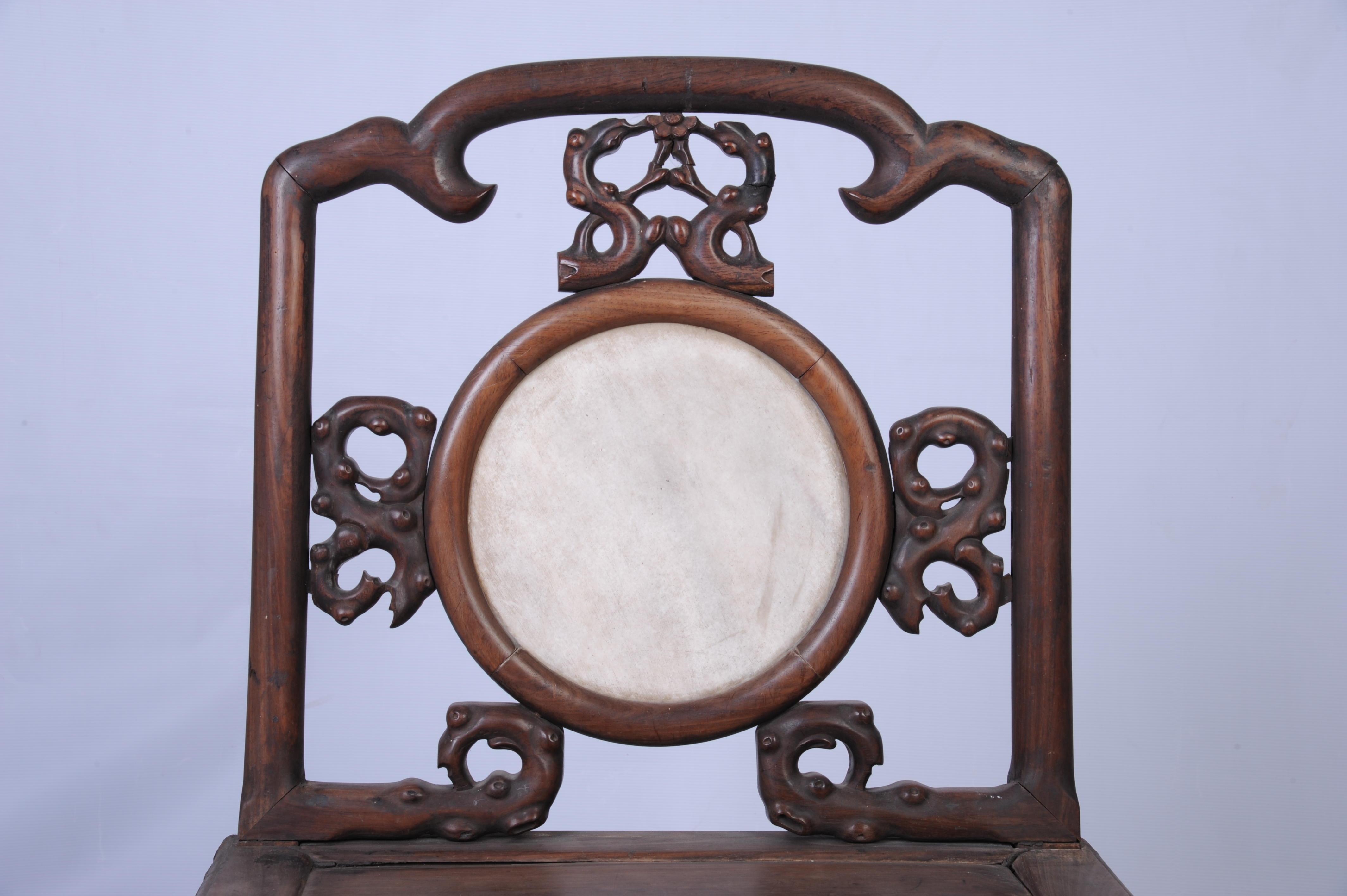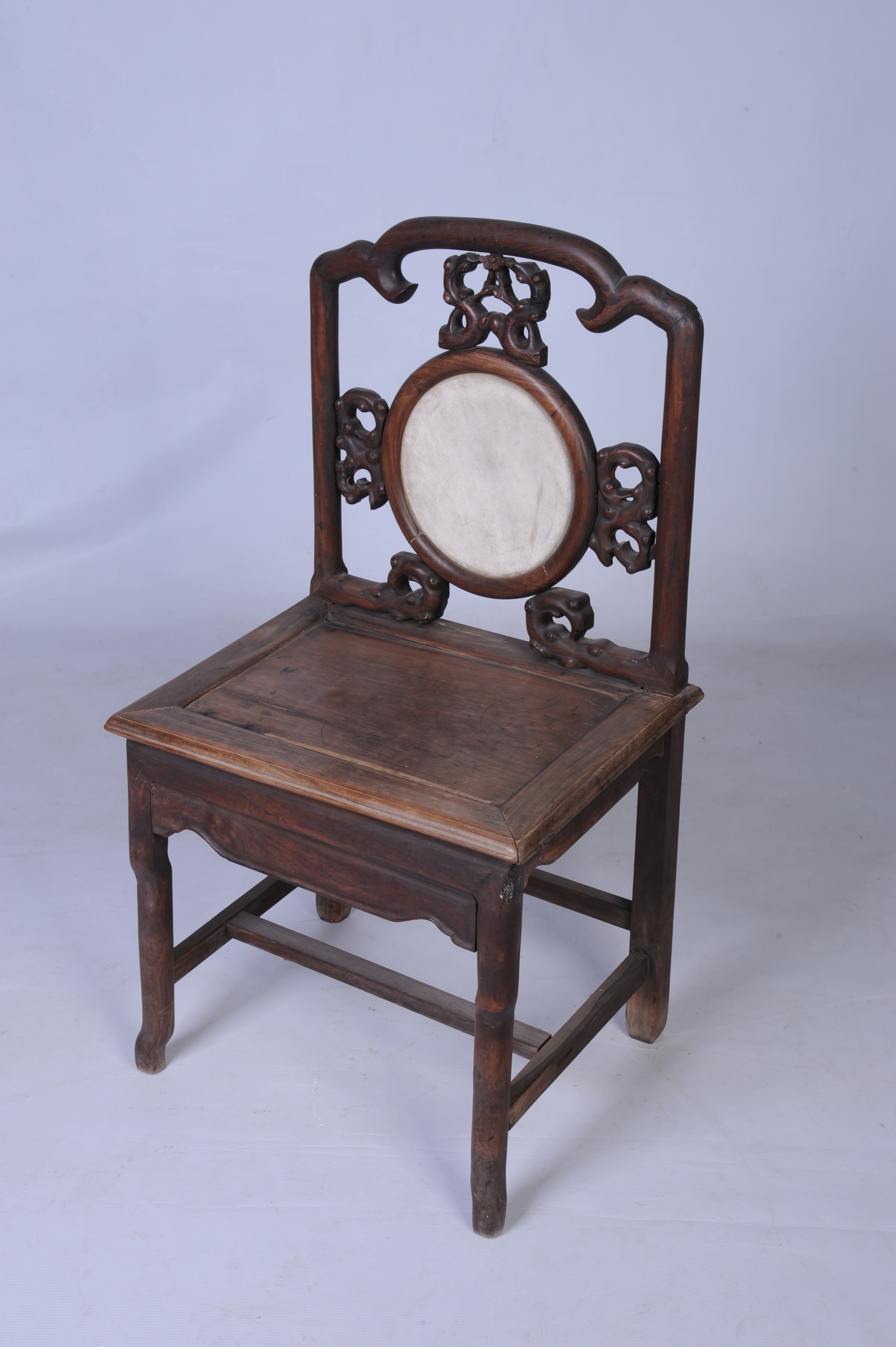 清末酸枝镶石靠背椅