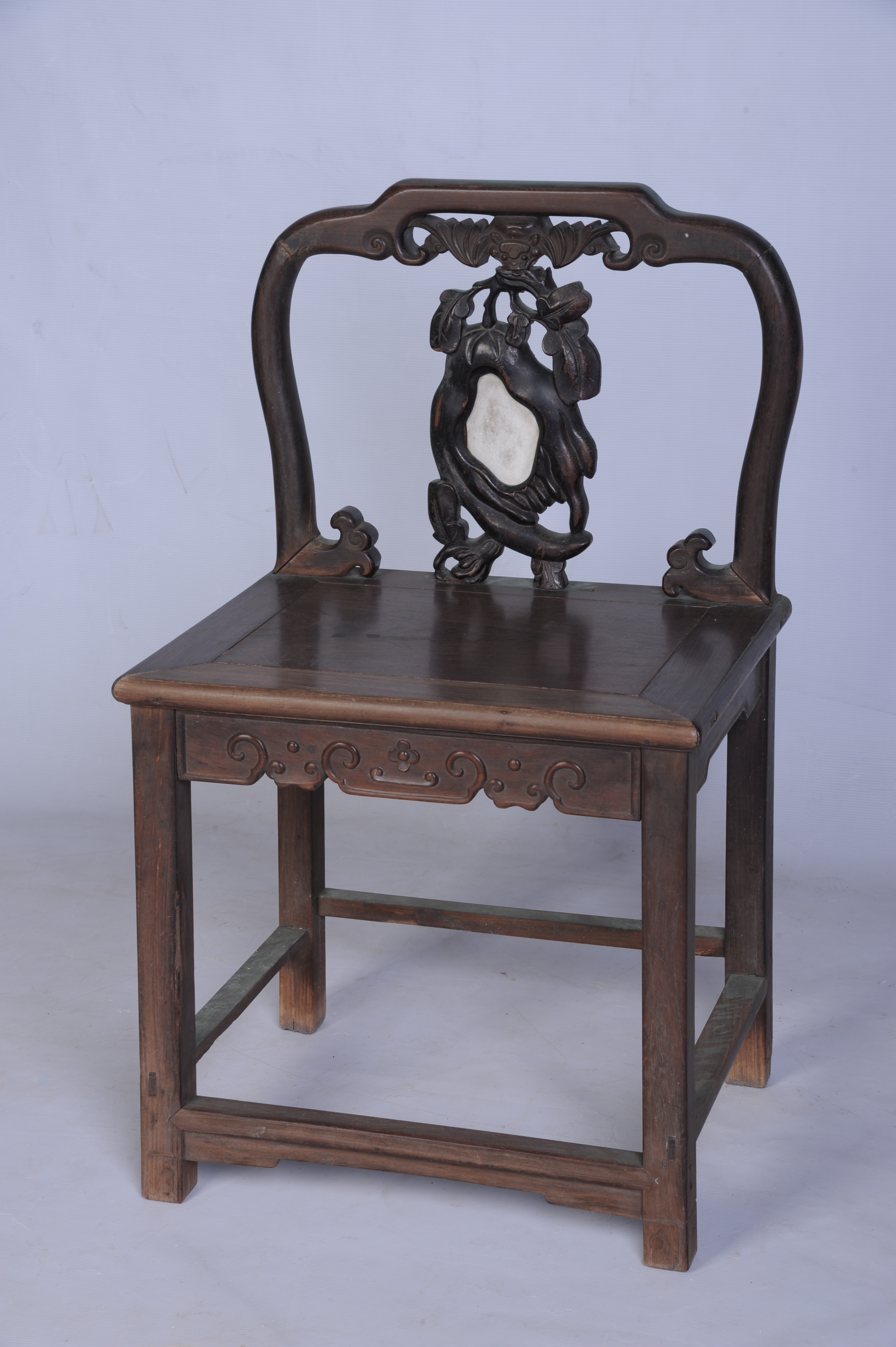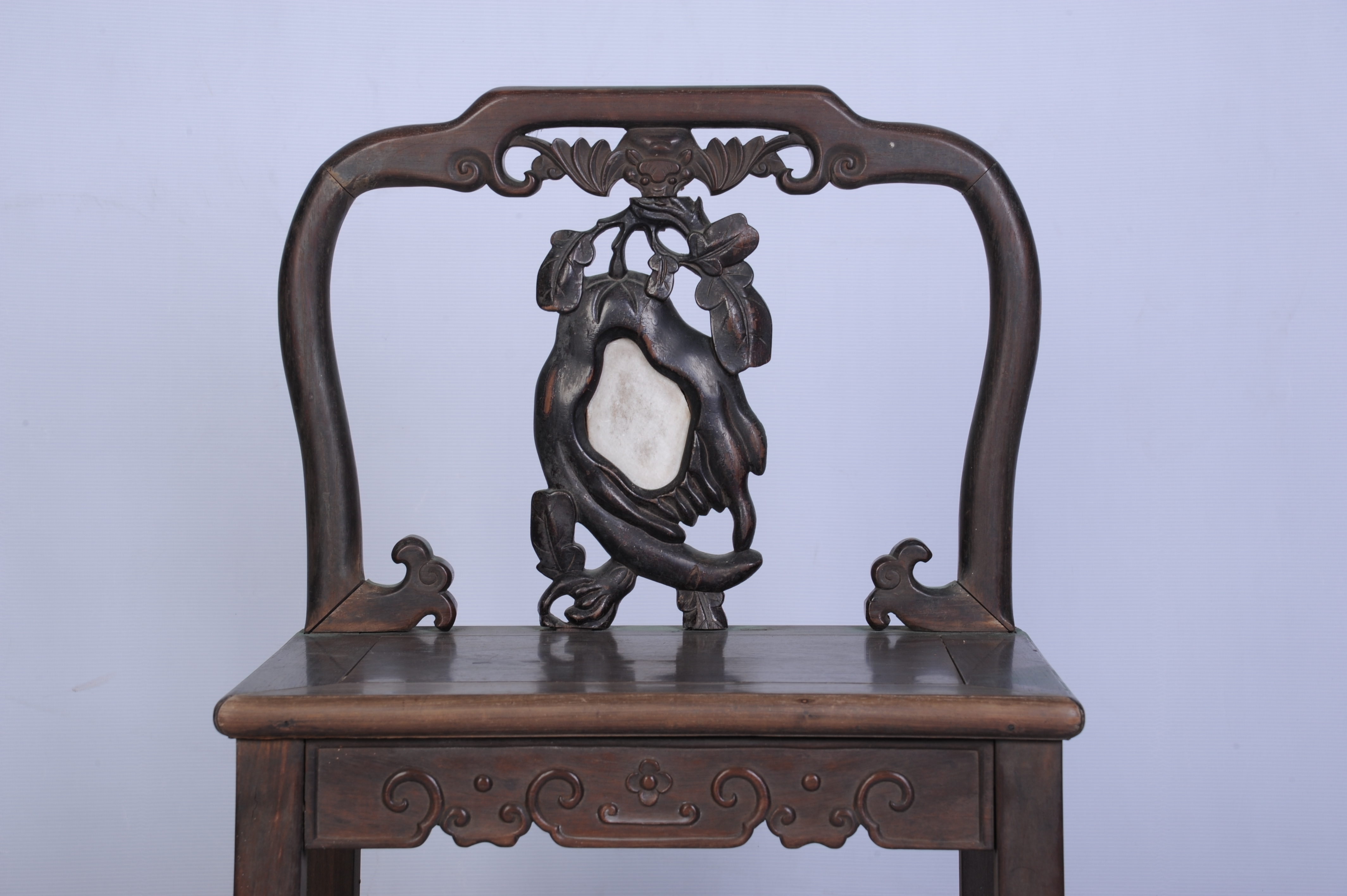 中华民国酸枝镶石靠背椅 中华民国,通长:54厘米,通宽:42厘米,通高:89厘米。