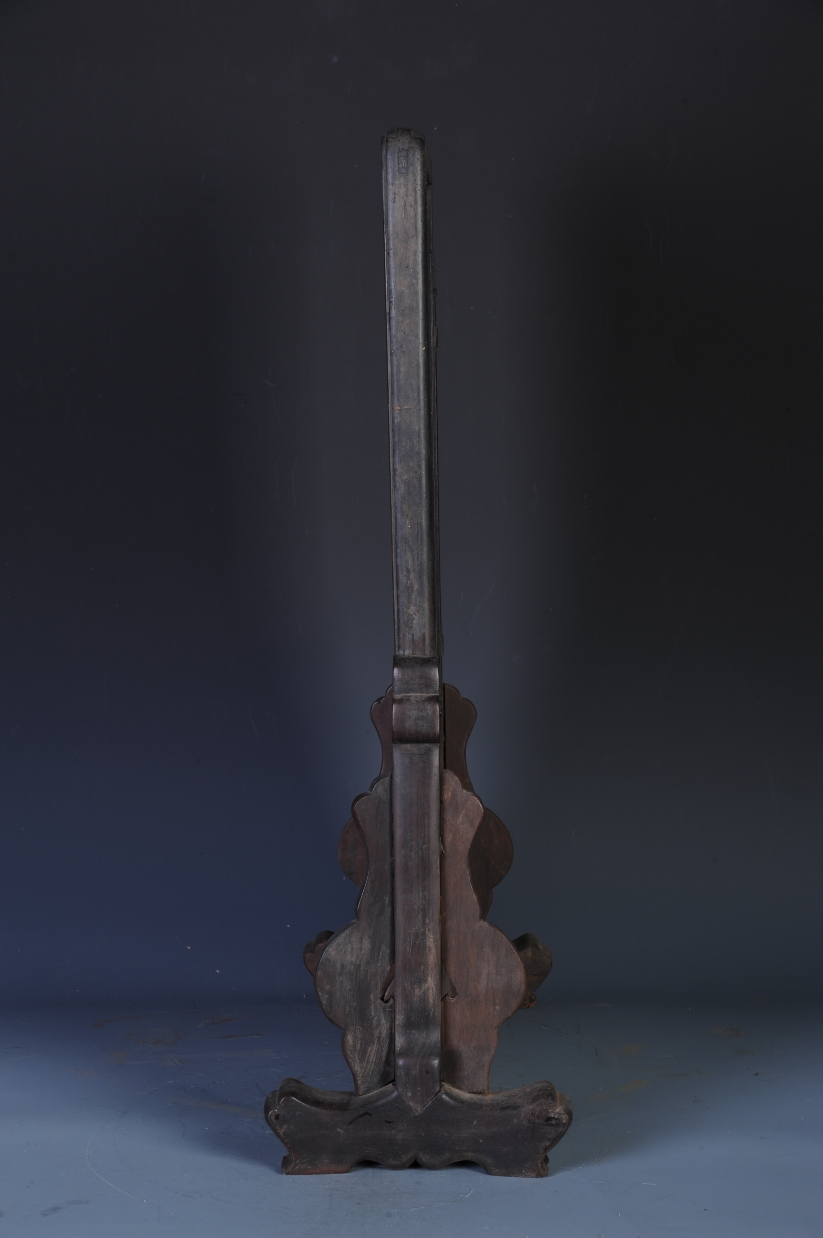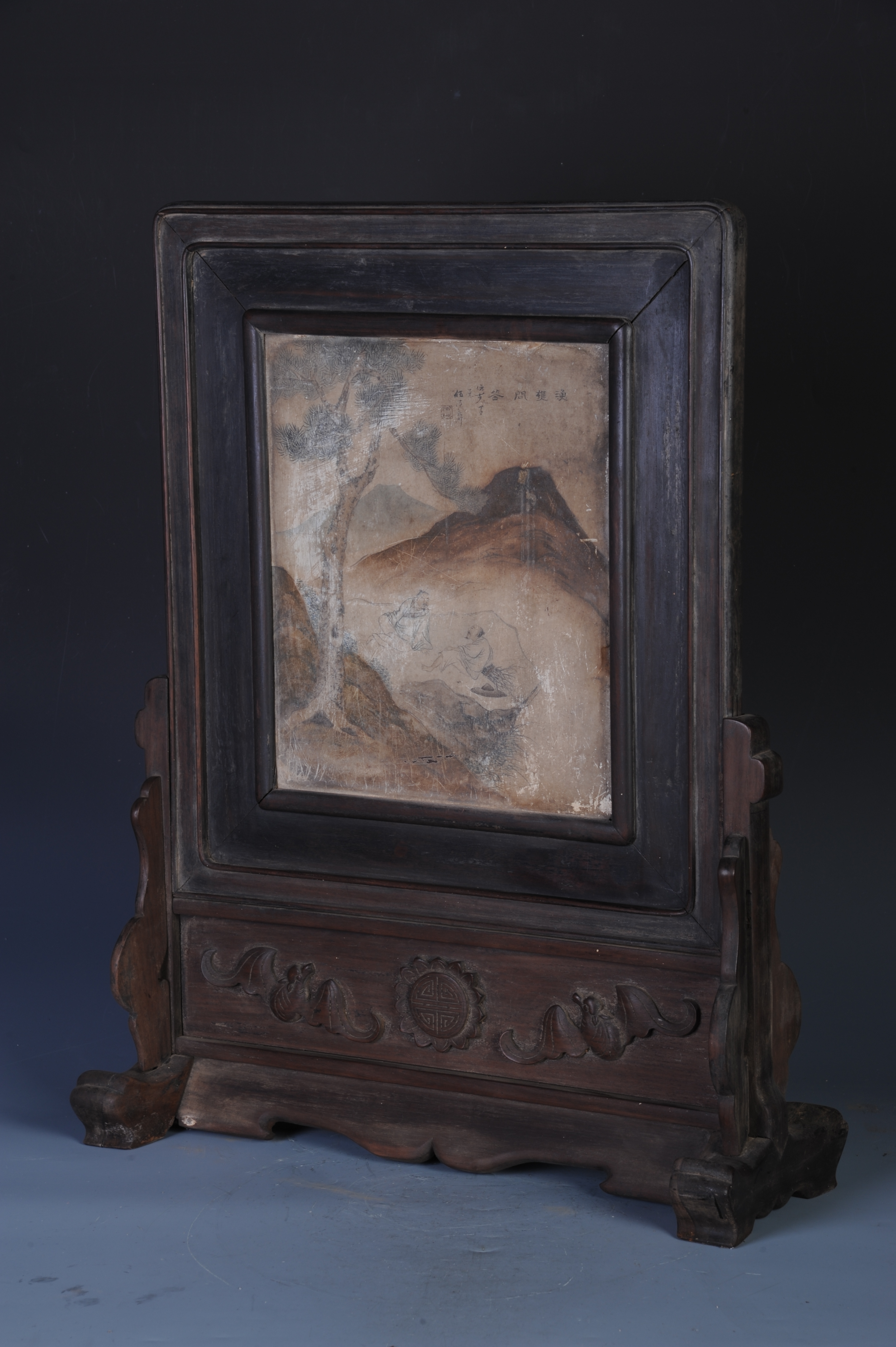 中华民国酸枝镶石绘伍德彝渔樵问答图座屏 中华民国,通长:48厘米,通宽:18厘米,通高:61厘米。