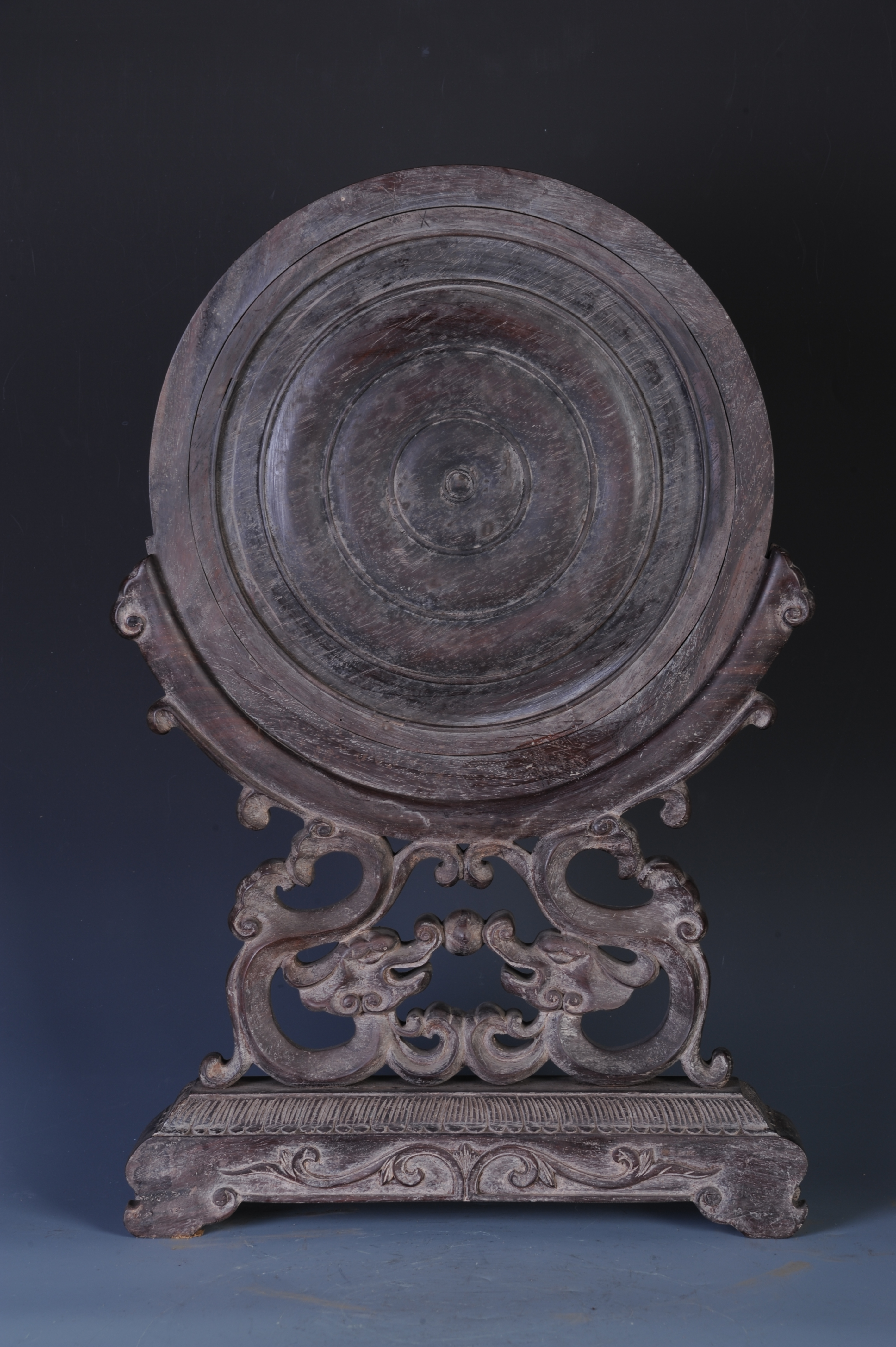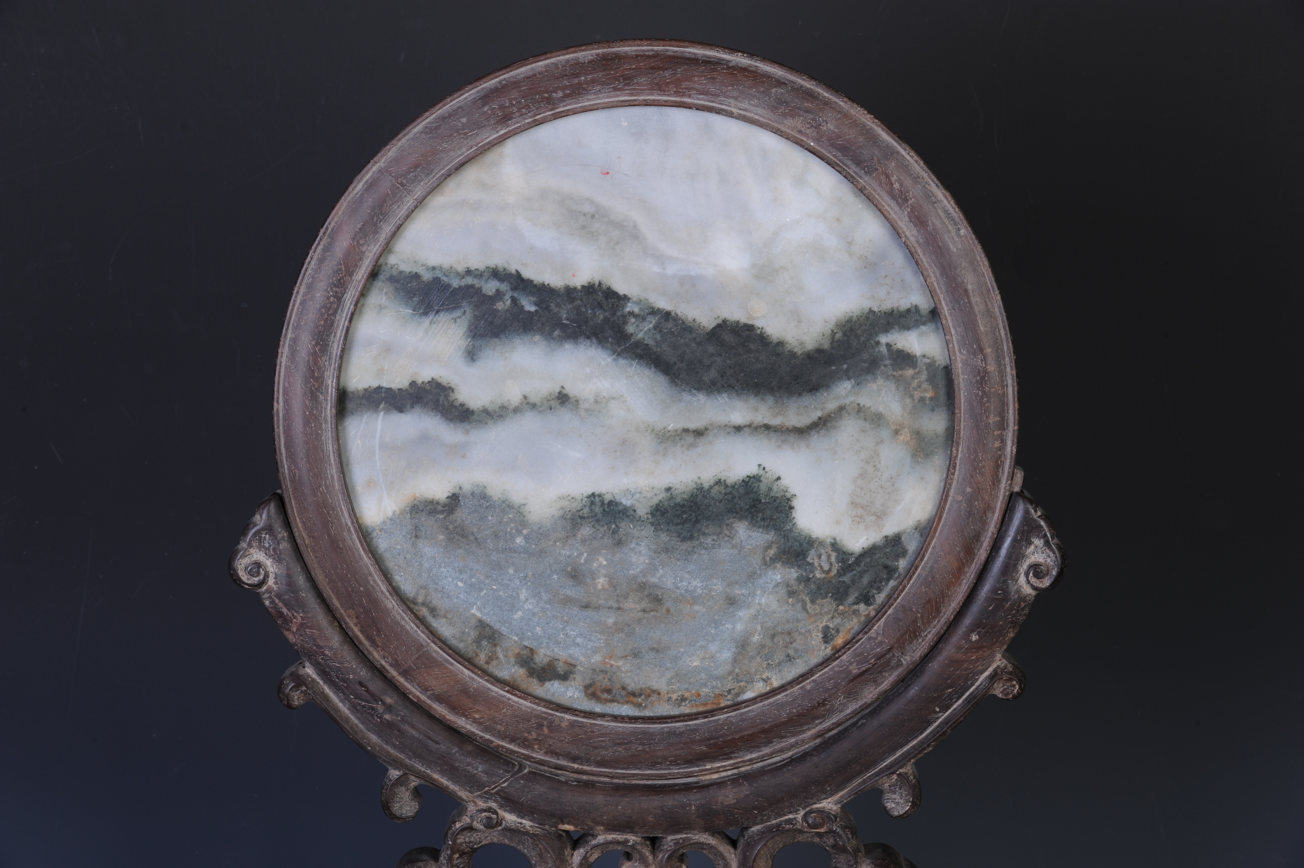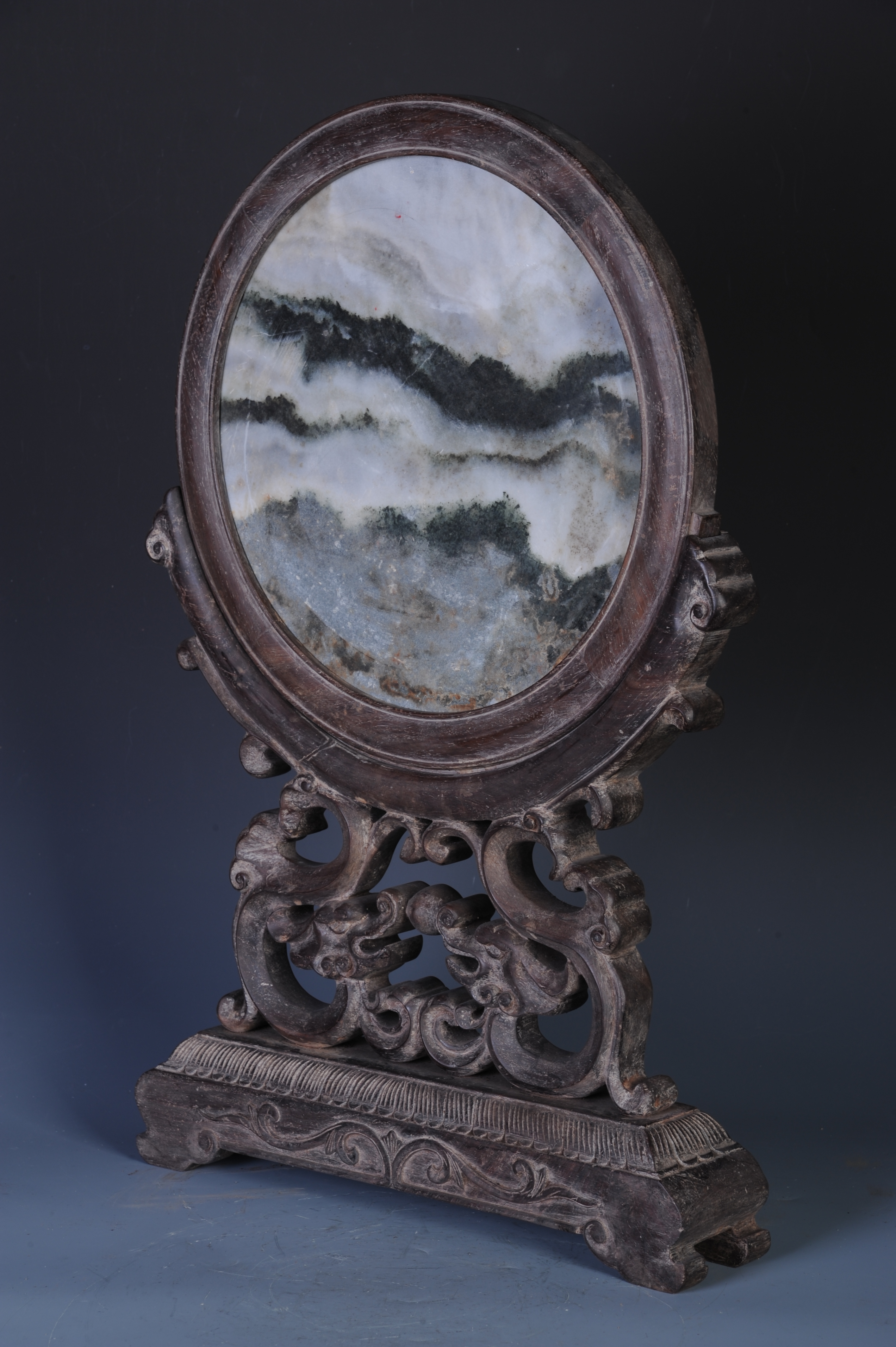 中华民国酸枝镶石圆插屏 中华民国,通长:39厘米,通宽:8.5厘米,通高:60厘米。