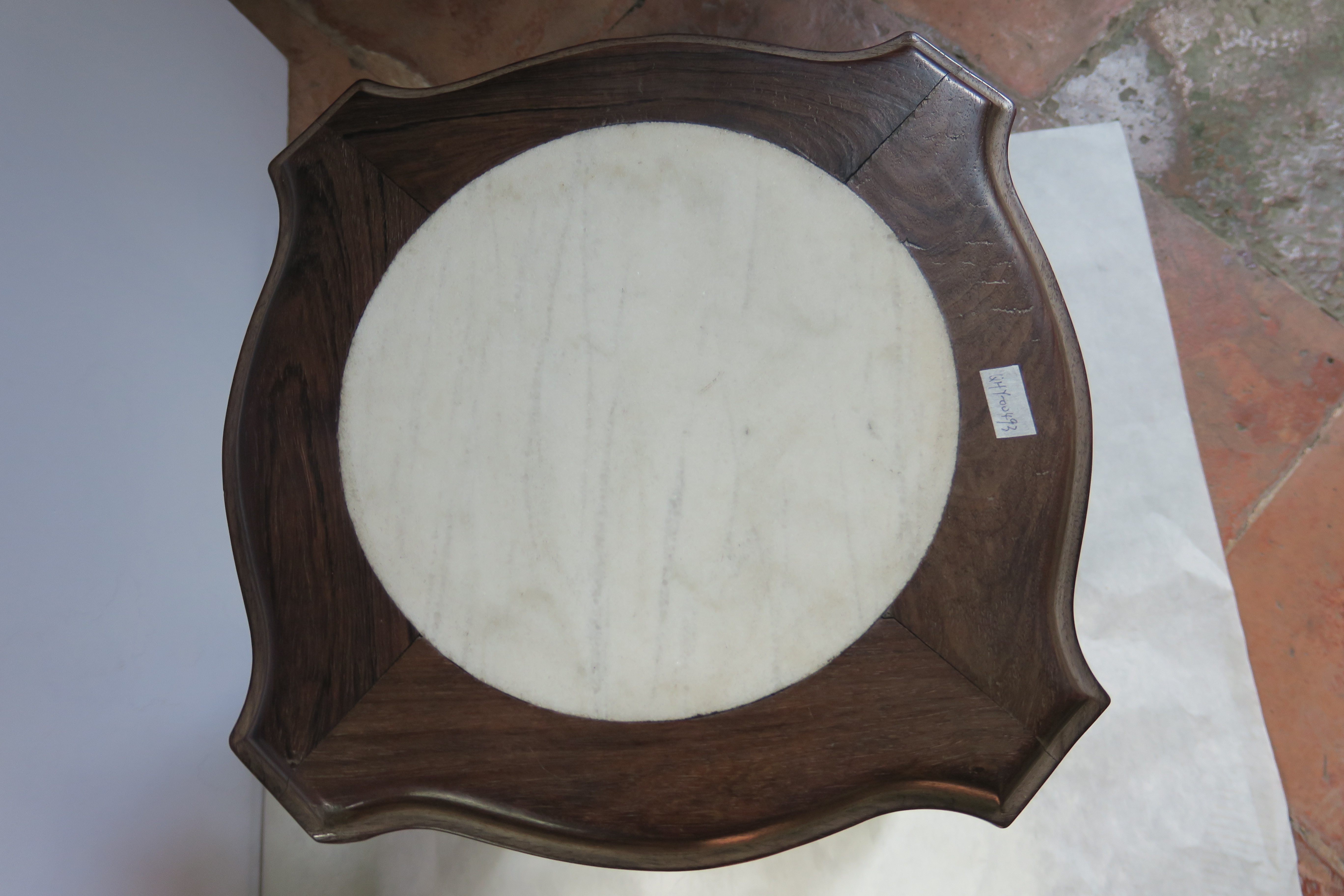 当代红木镶云石倭角凳 当代,通宽:34厘米,通高:46厘米,凳面直径42厘米
