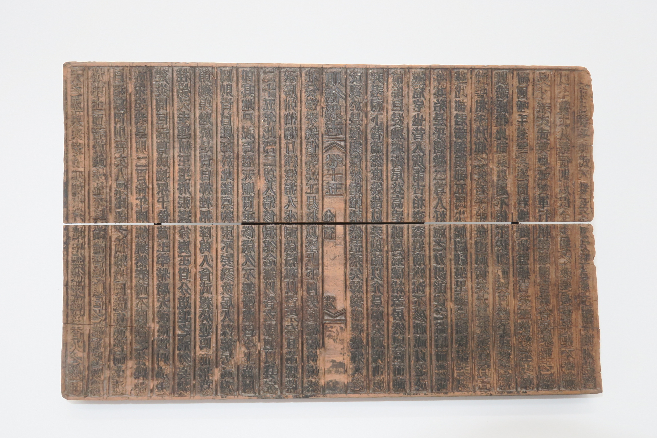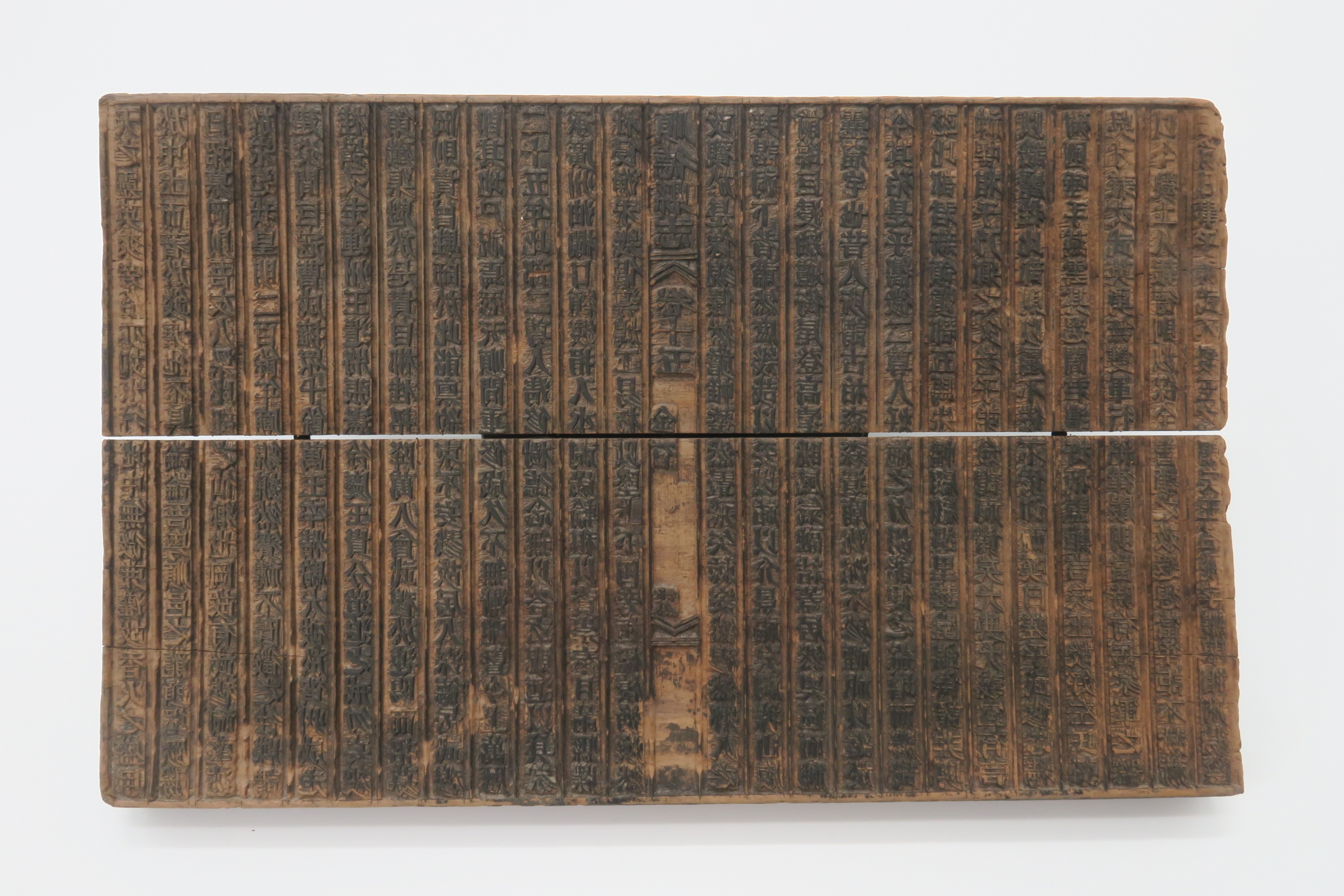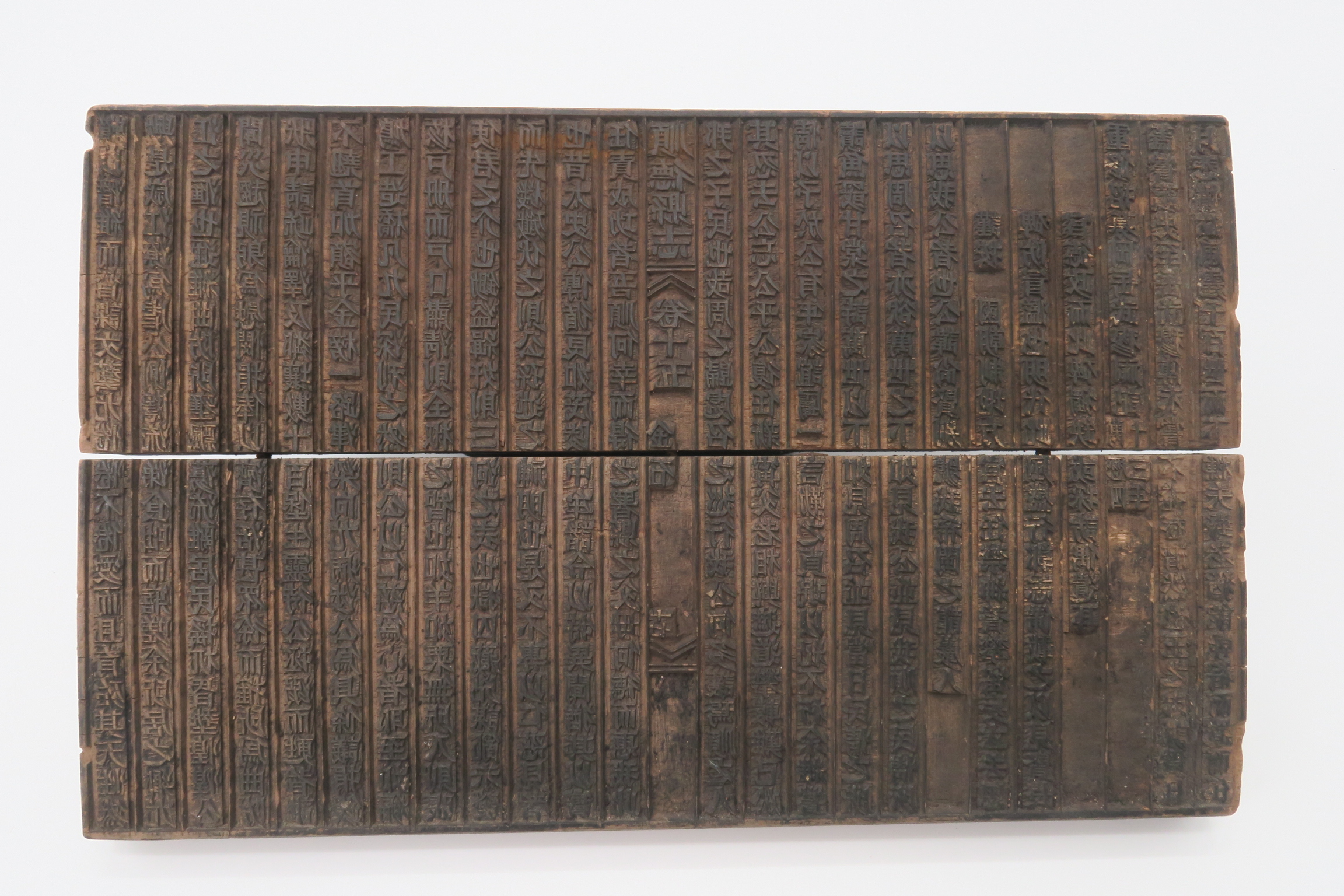 木刻印刷版《顺德县志·卷十五·金石》第十七、十八页 质地:木; 尺寸:通长31.5厘米,通宽2.2厘米,通高19.6厘米。