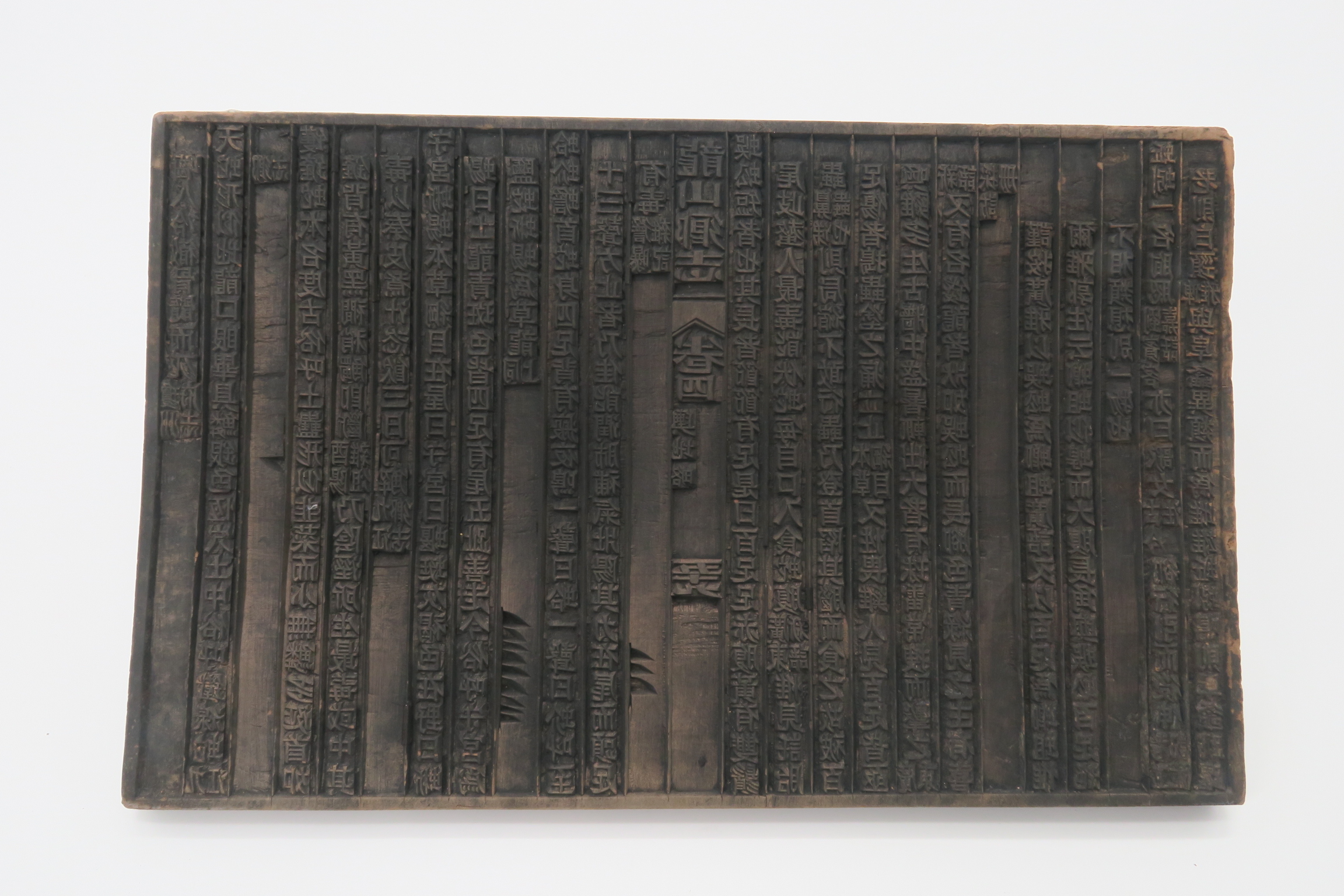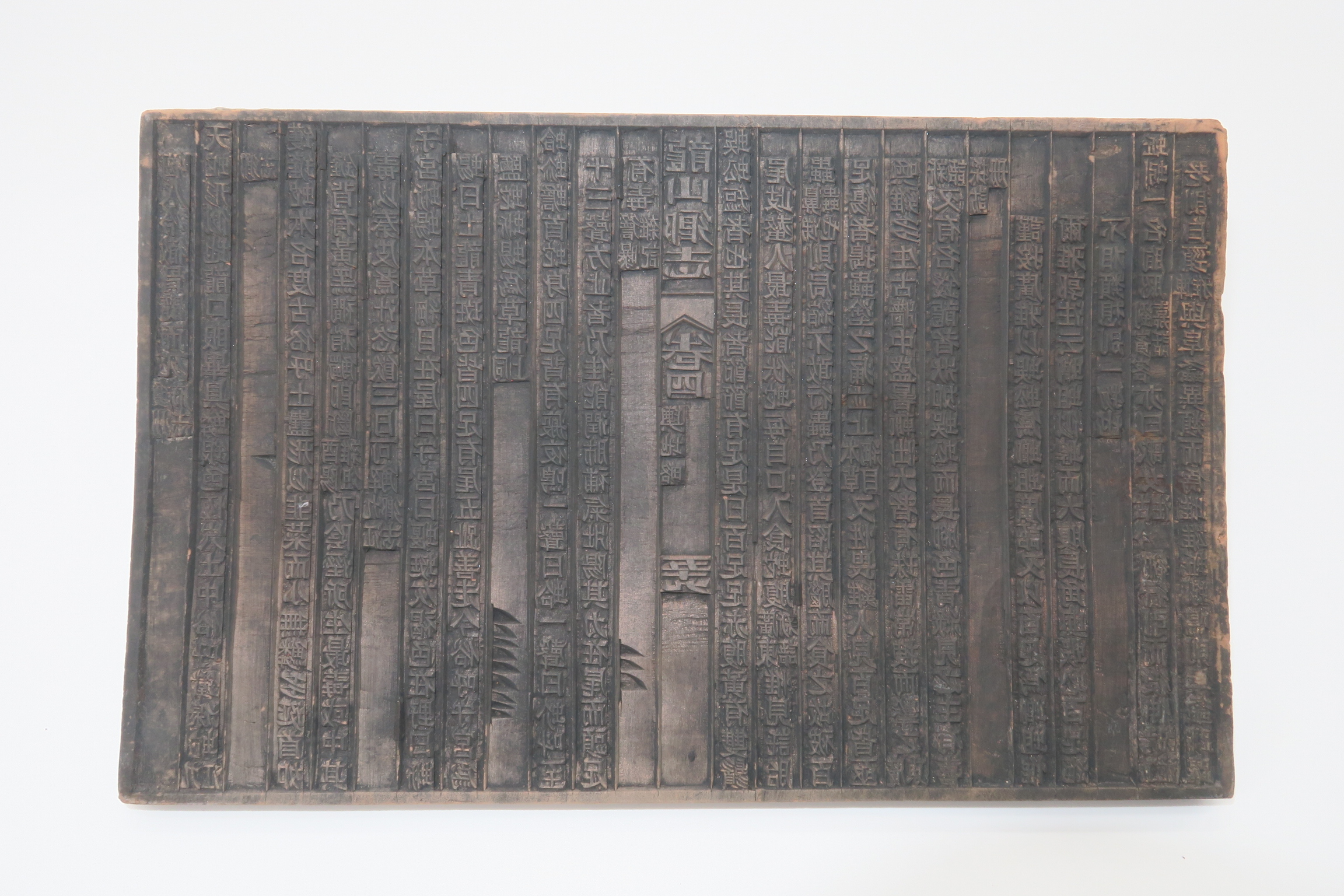 木刻印刷版《龙山乡志·舆地略》第五十九、六十页 质地:木; 尺寸:通长29.5厘米,通宽2厘米,通高18.5厘米。