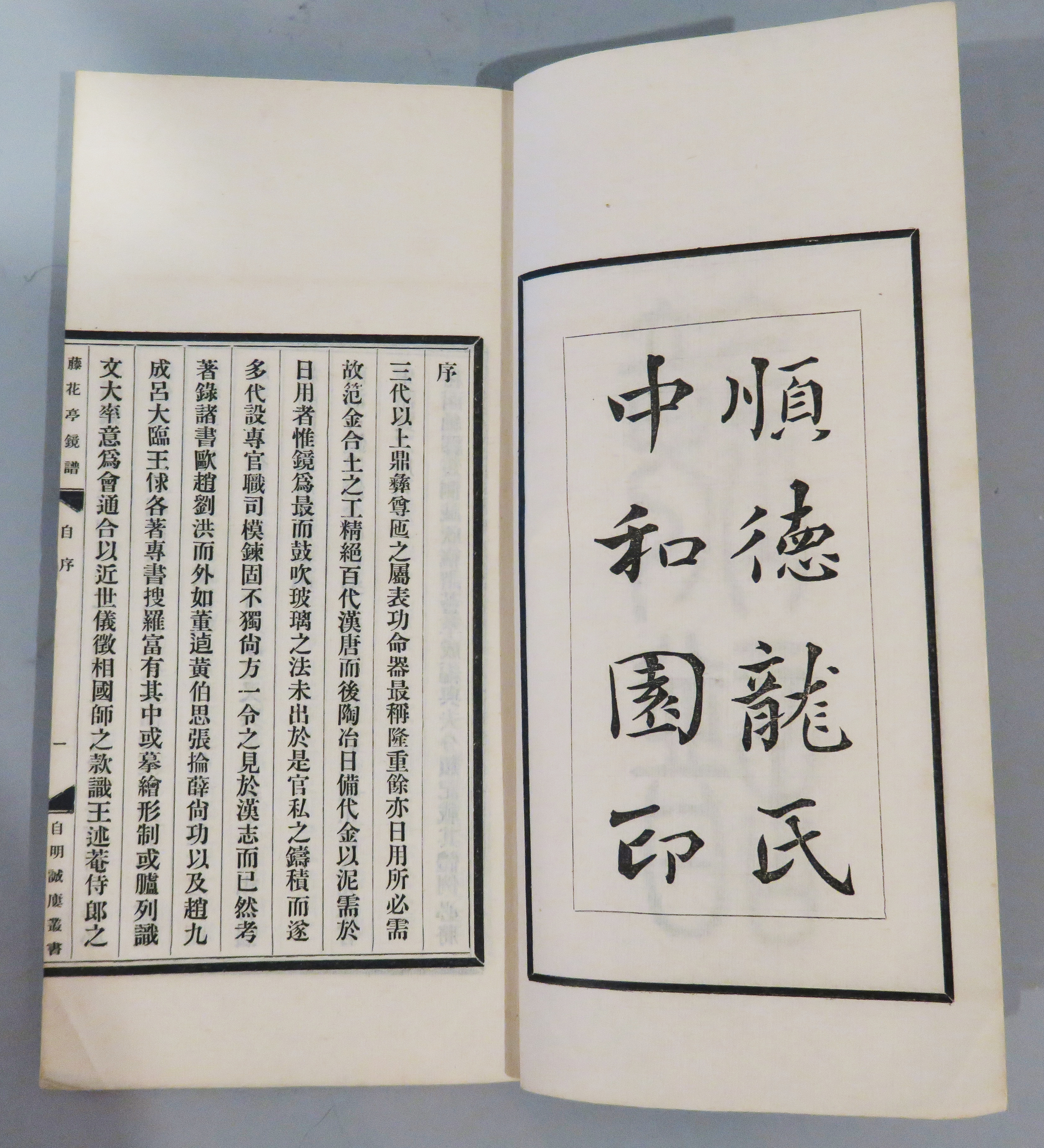 中华民国顺德龙氏中和园刻本梁廷枏撰《藤花亭镜谱》三卷(自明诚楼丛书本) 年代:中华民国 质地:纸;尺寸:通长24.4厘米,通宽13.2厘米