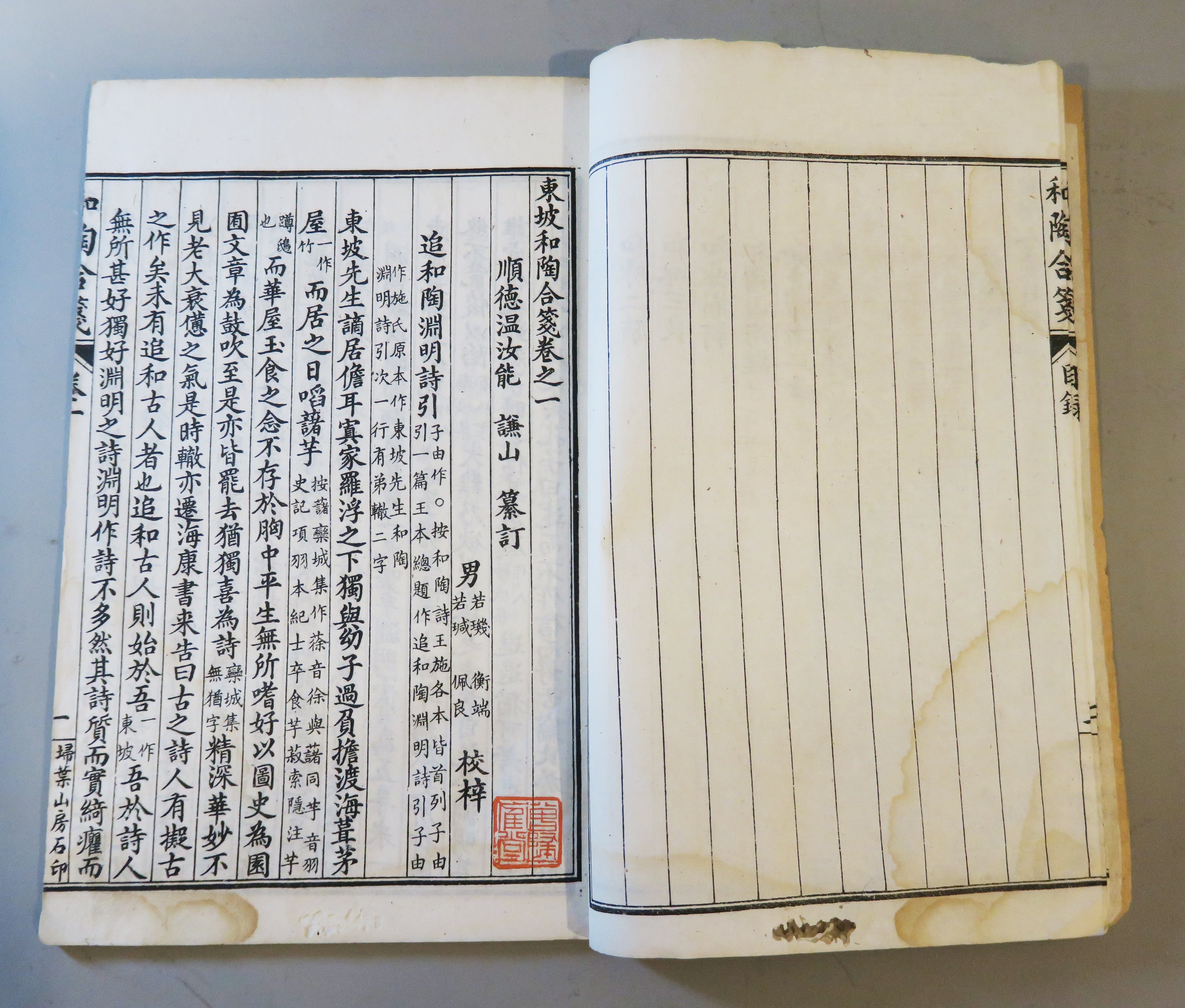 中华民国十四年上海扫叶山房发行石印本苏轼撰温汝能纂订《和陶合笺》卷一、卷二