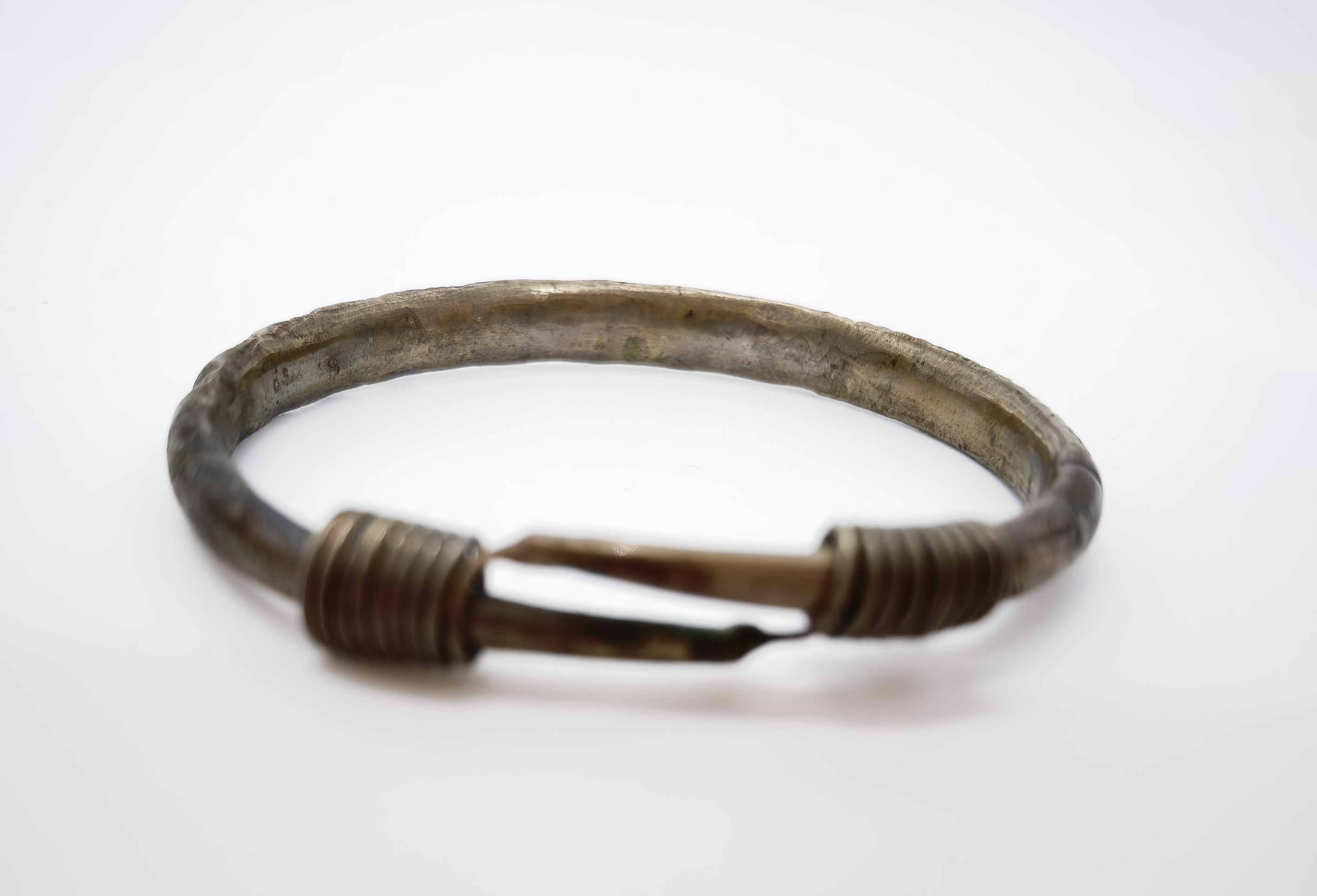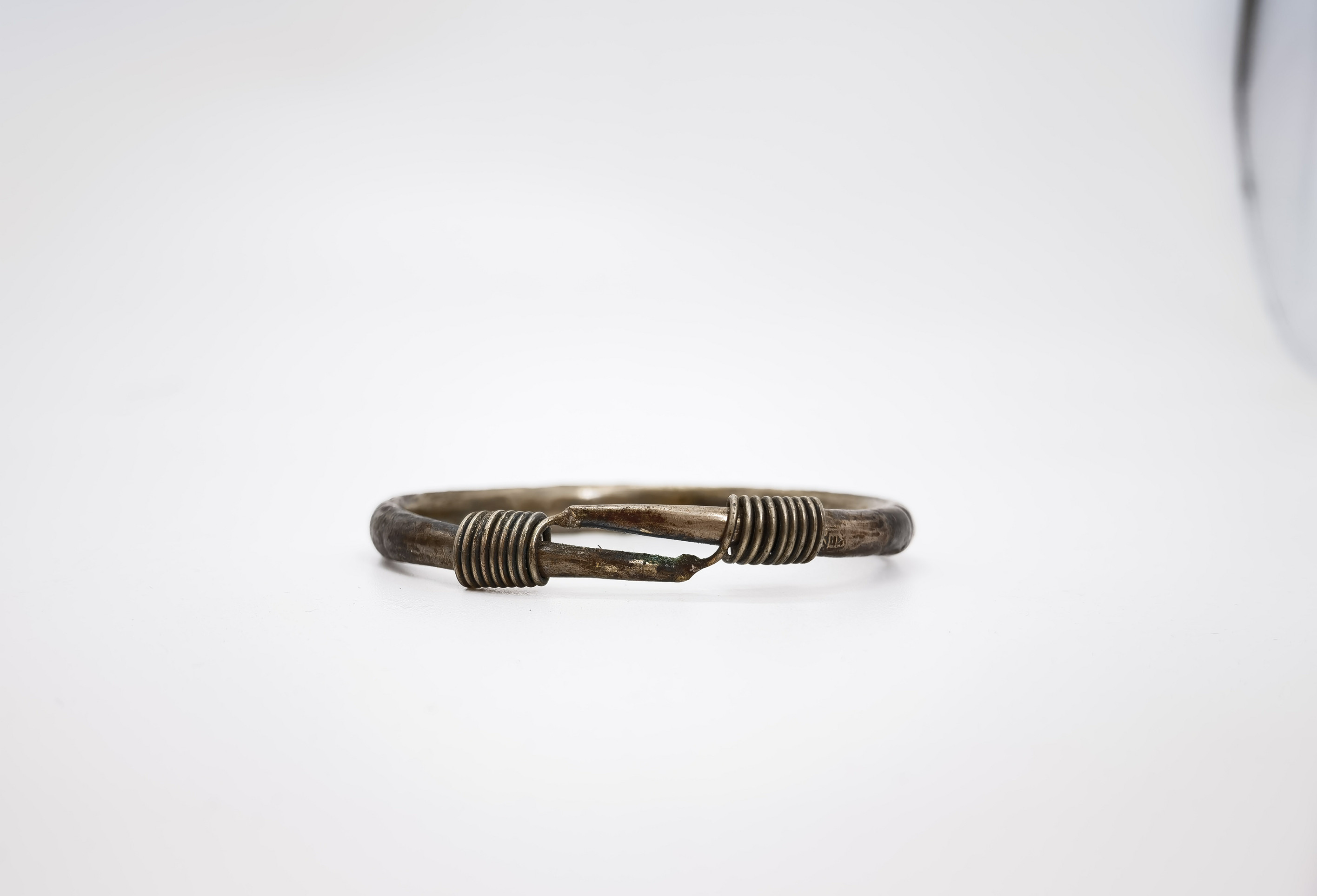 名称:银手镯 年代:年代不详 质地:金属 尺寸:直径6.2cm
