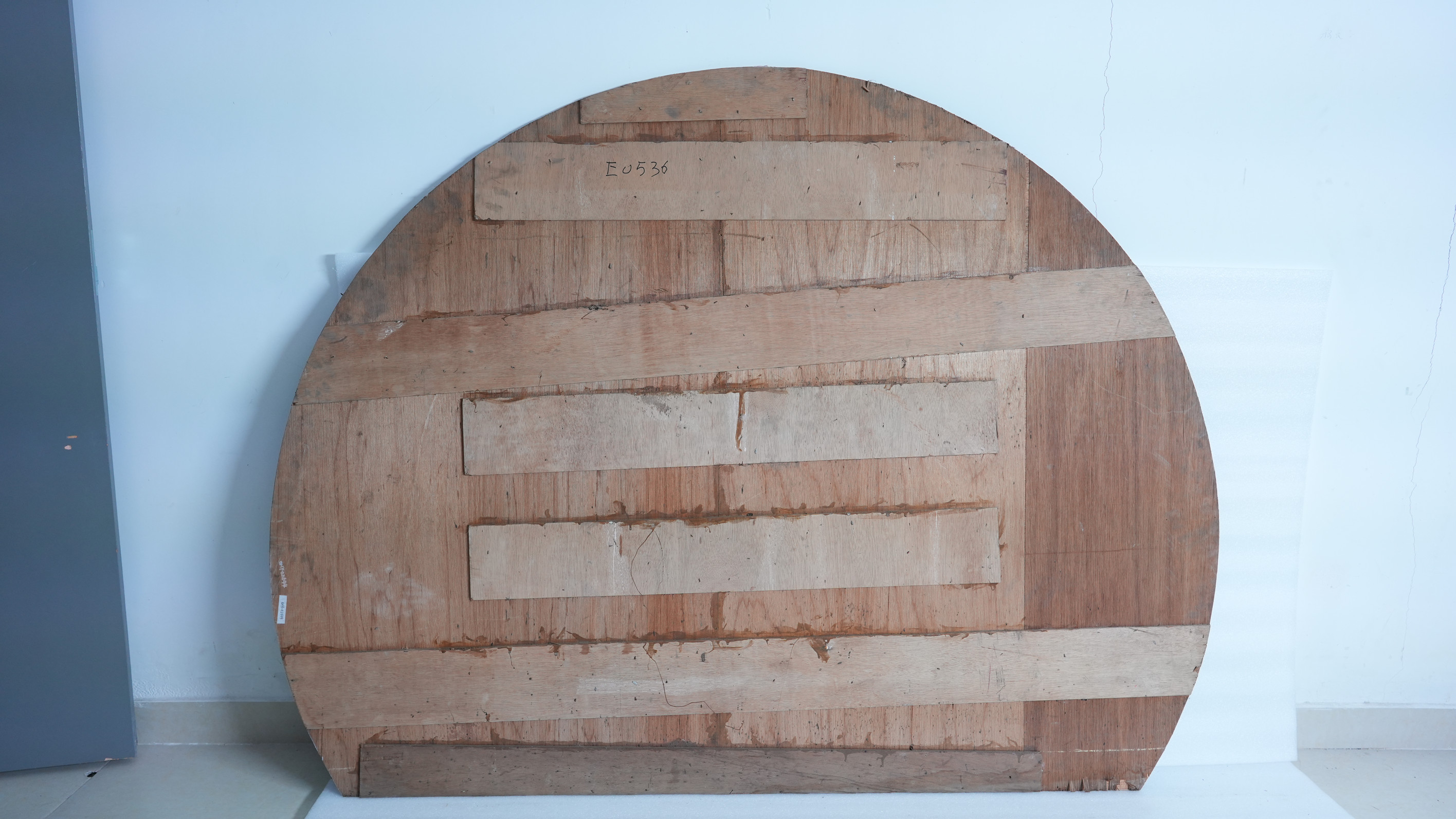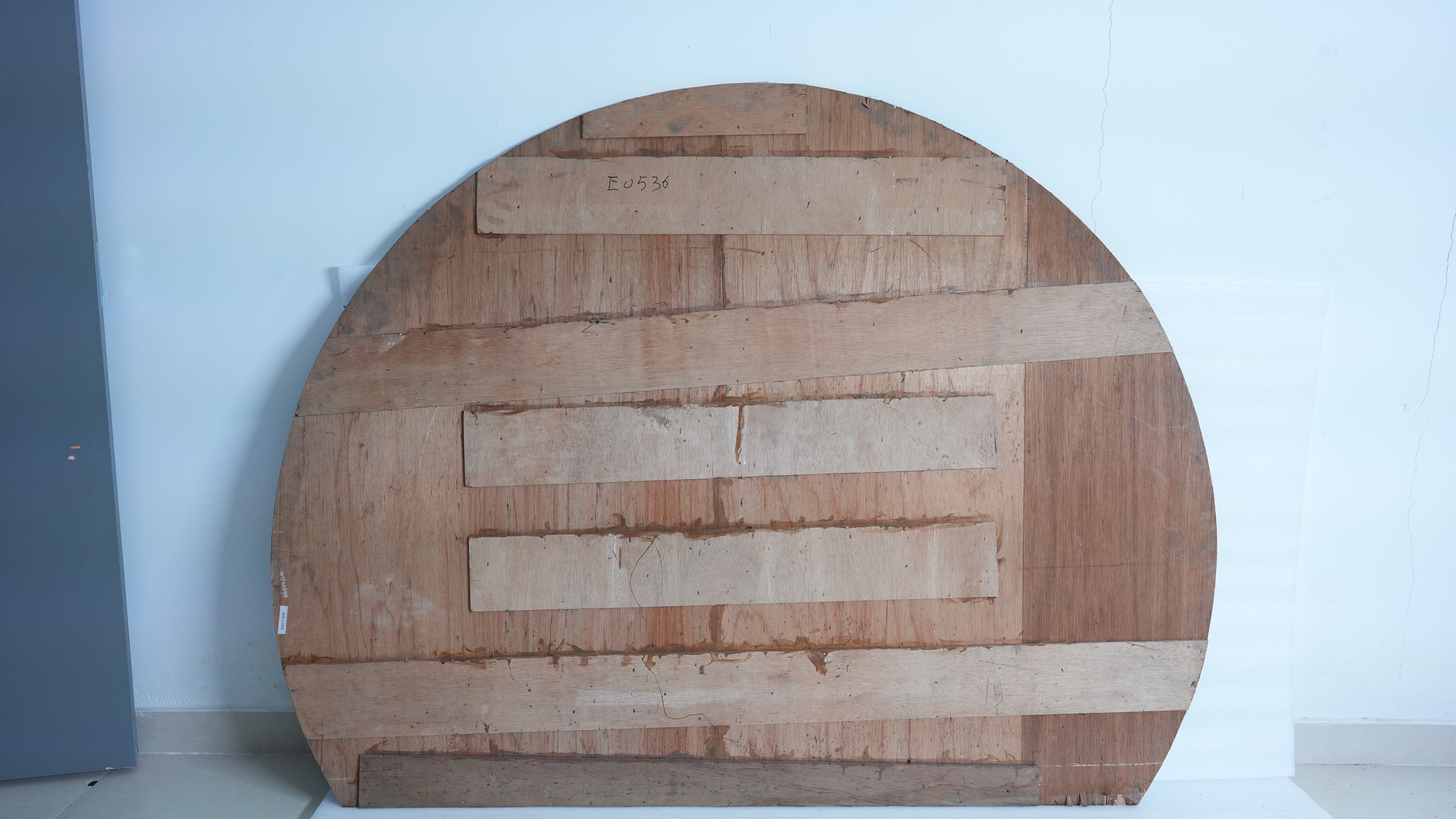 名称:当代半圆形铜雕线画 年代:当代 质地:夹板 尺寸:长190.3cm,宽147.2cm
