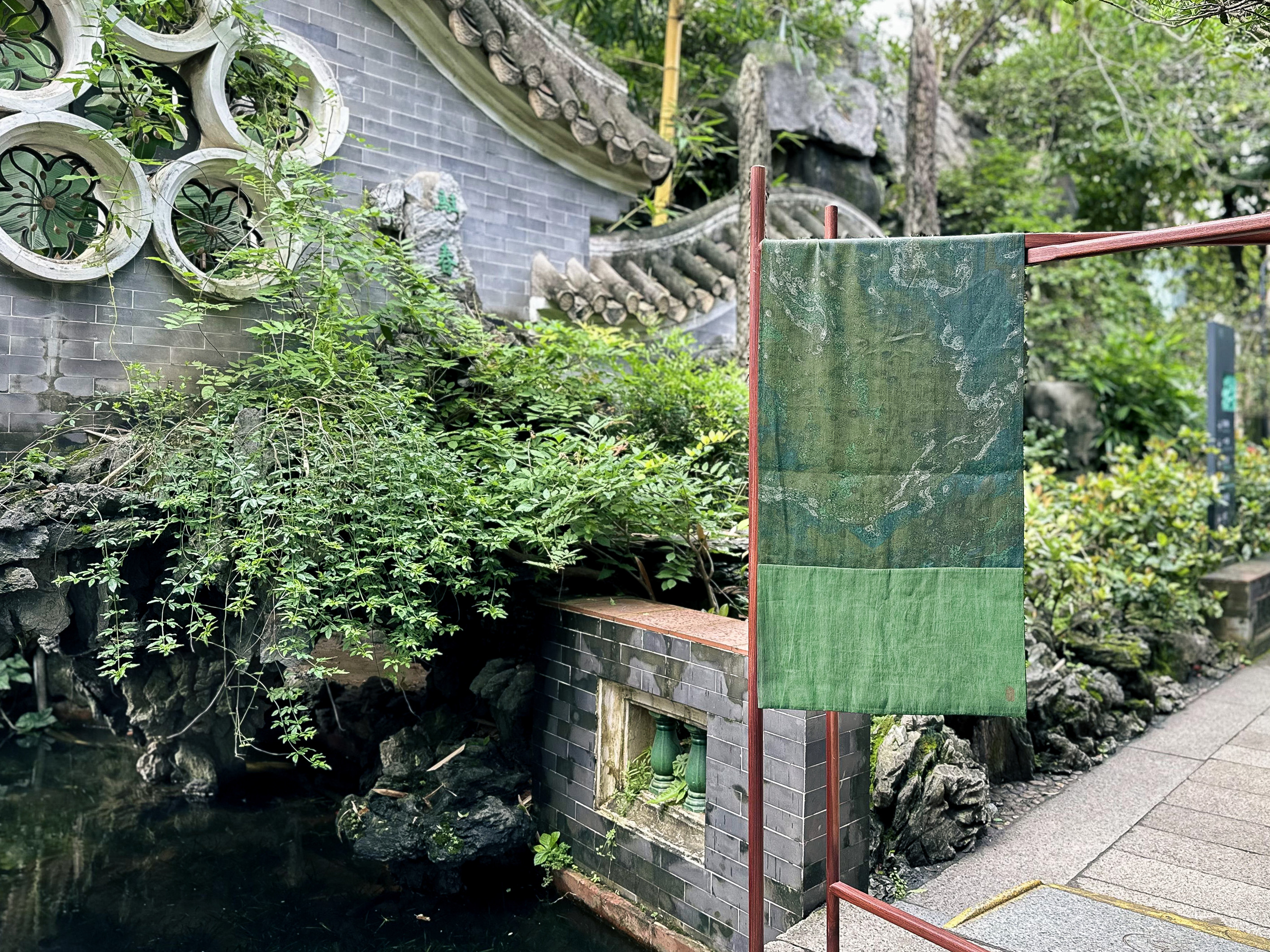 名称:《玉棠春秀》香云纱披肩 年代:当代 质地:丝 尺寸:200cm×50cm