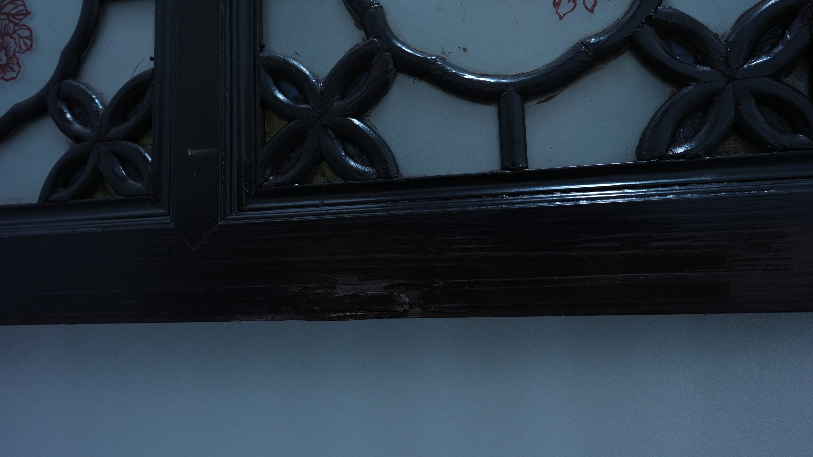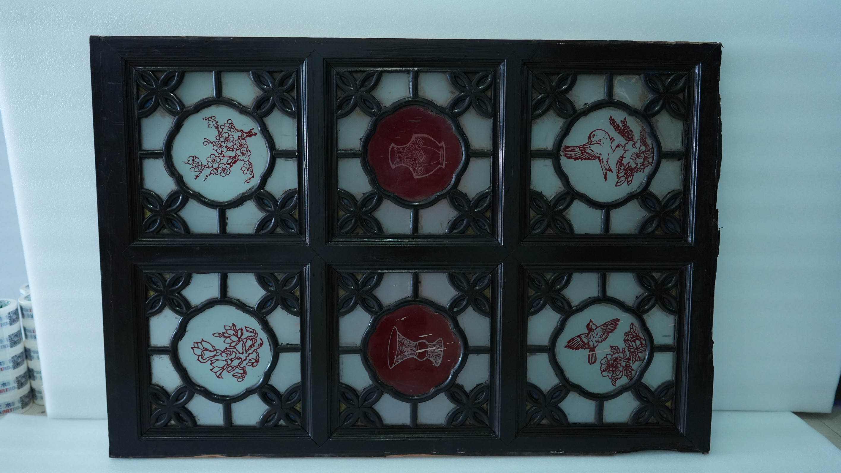 名称:当代满洲玻璃窗 年代:当代 质地:木、玻璃 尺寸:长140.8cm,宽95cm,厚3.8cm