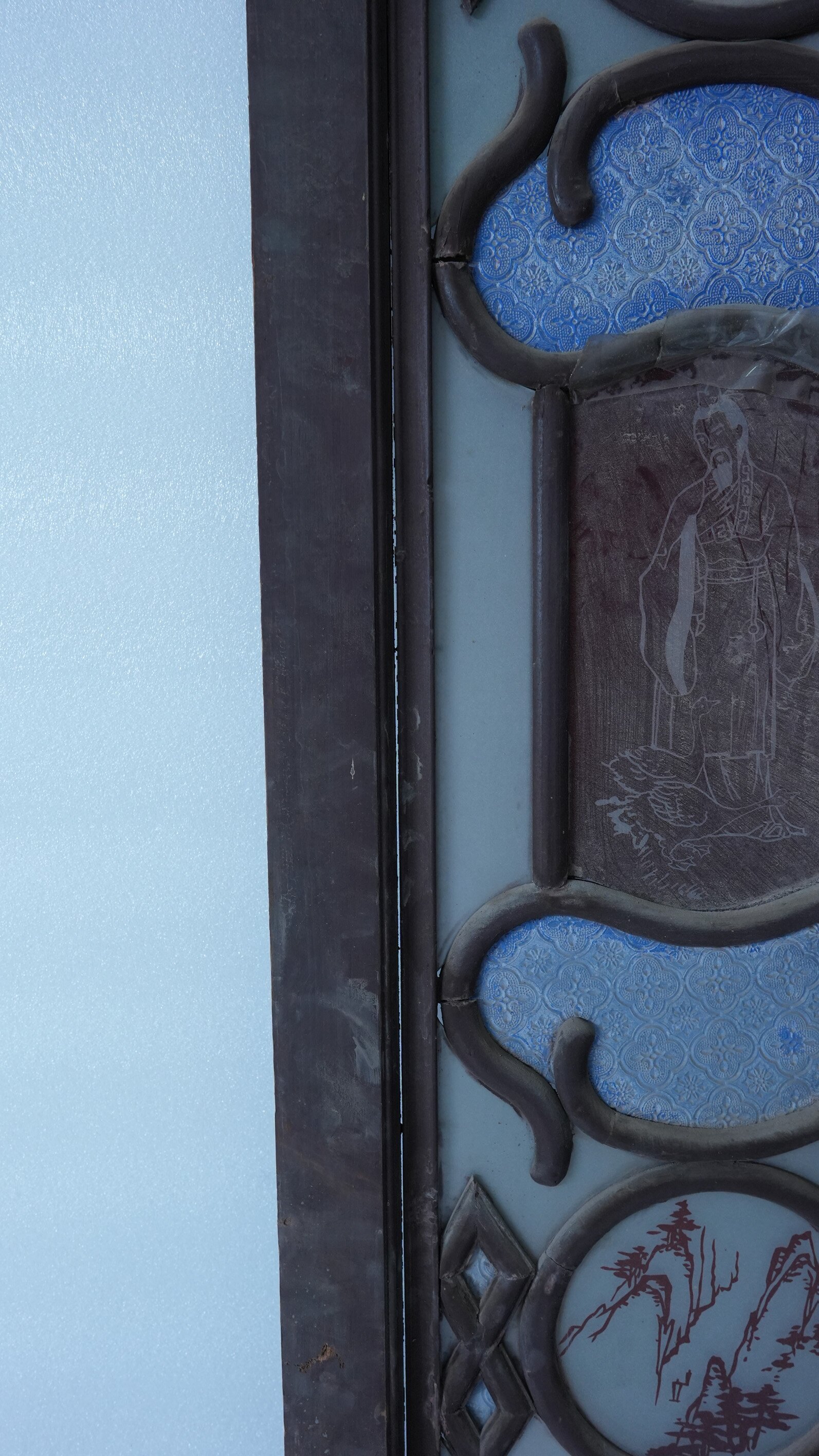 名称:当代满洲玻璃窗 年代:当代 质地:木、玻璃 尺寸:长117.6cm,宽43.9cm,厚3.9cm
