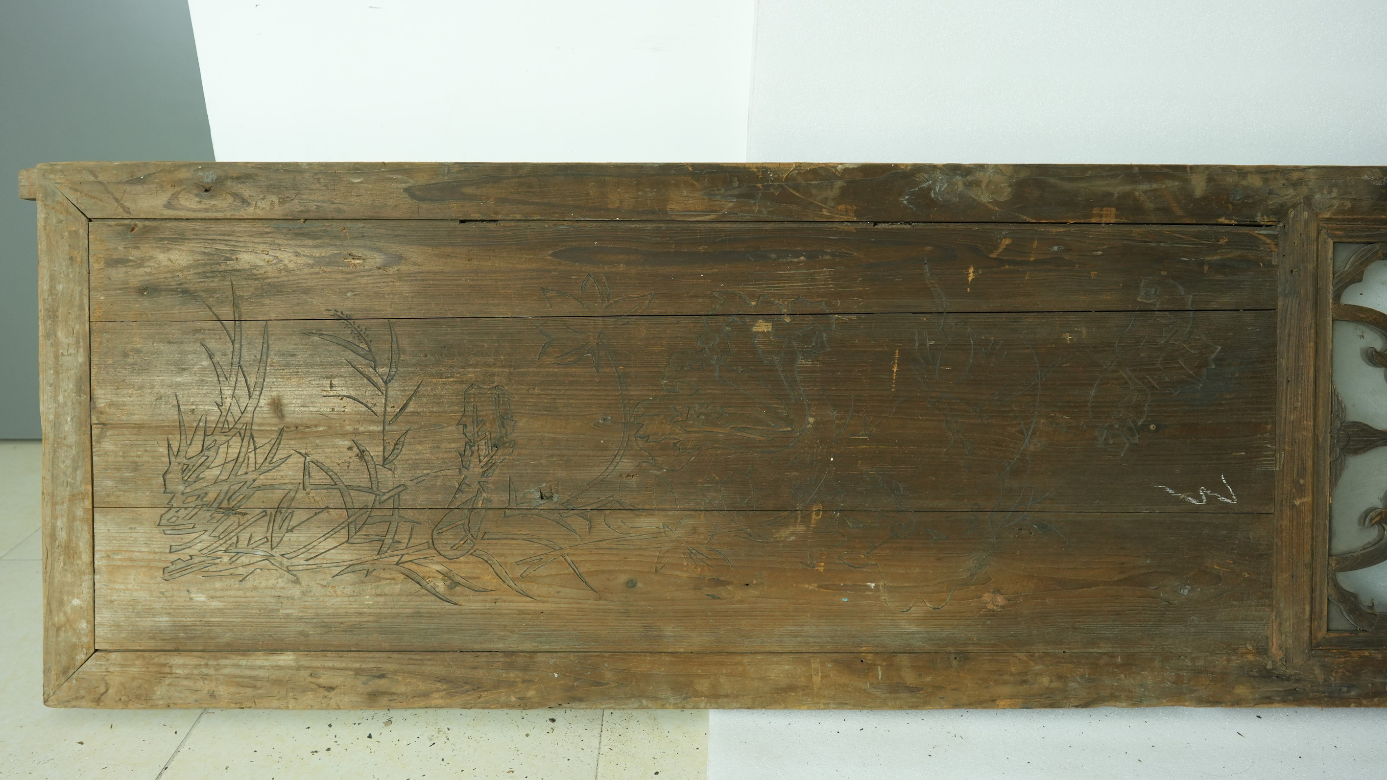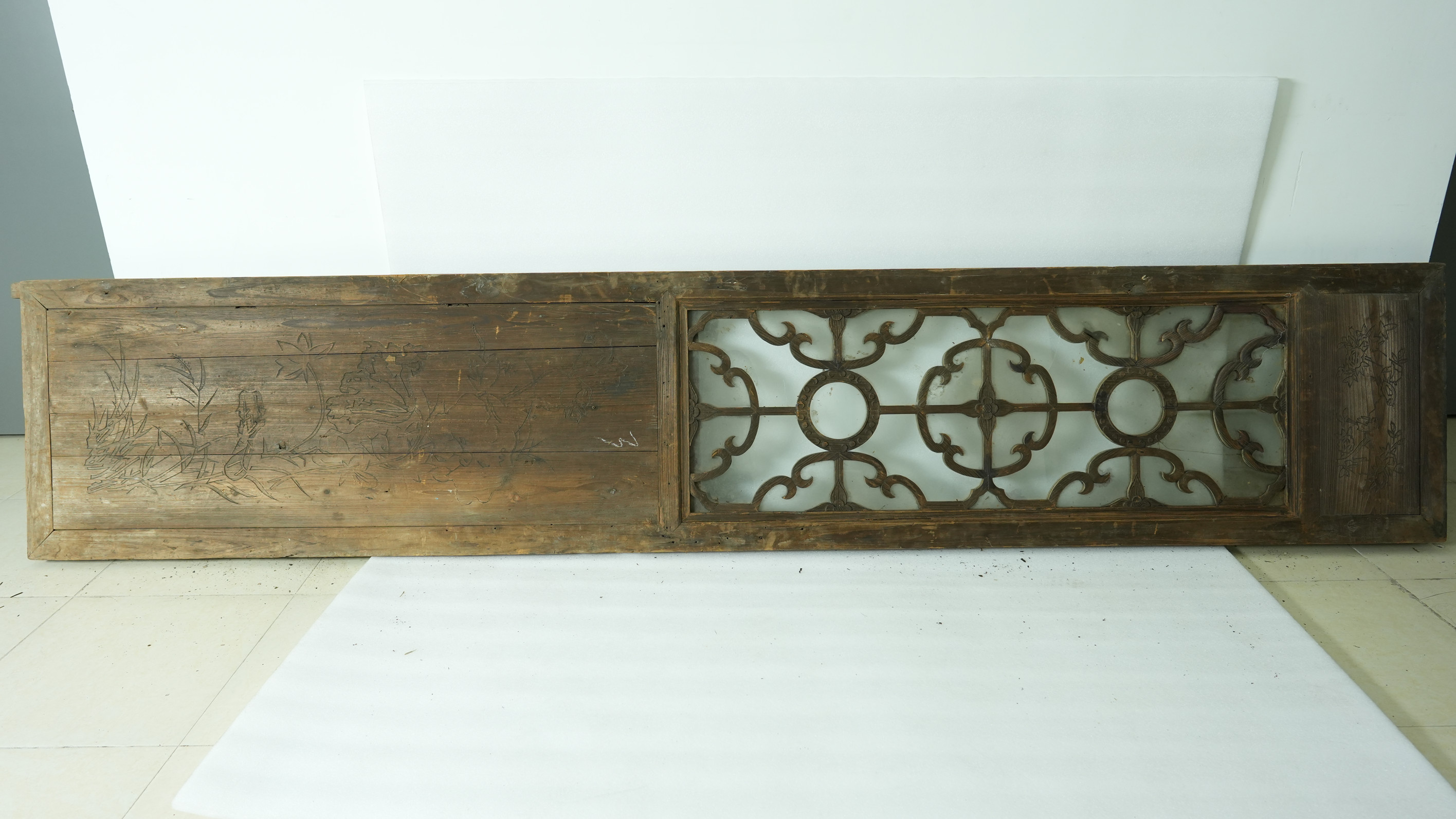 名称:木雕门 年代:年代待定 质地:木 尺寸:长339cm,宽66.5cm,厚5.4cm