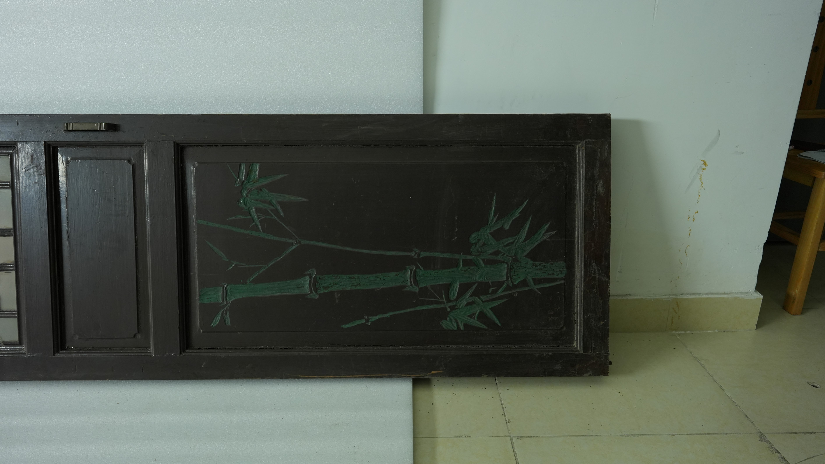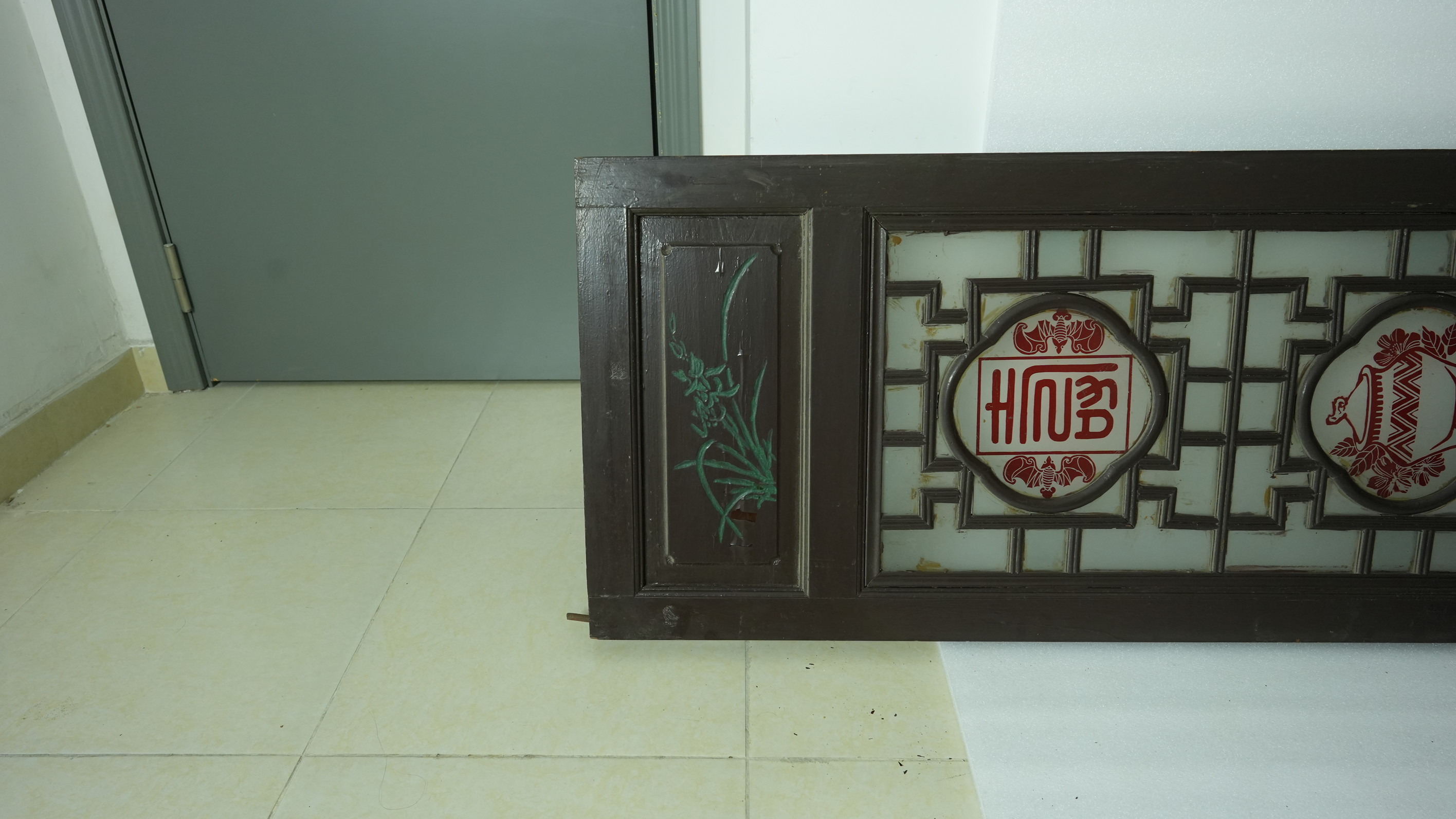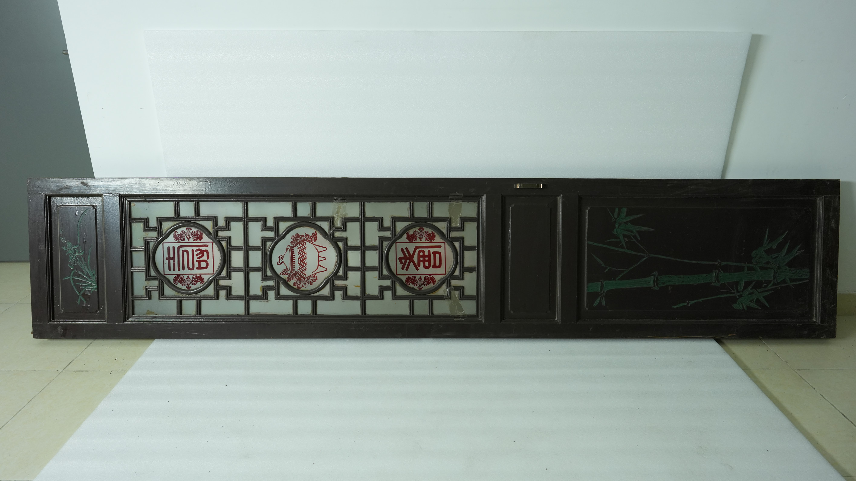 名称:当代满洲玻璃门 年代:当代 质地:木、玻璃 尺寸:长295.7cm,宽59cm,厚4.8cm