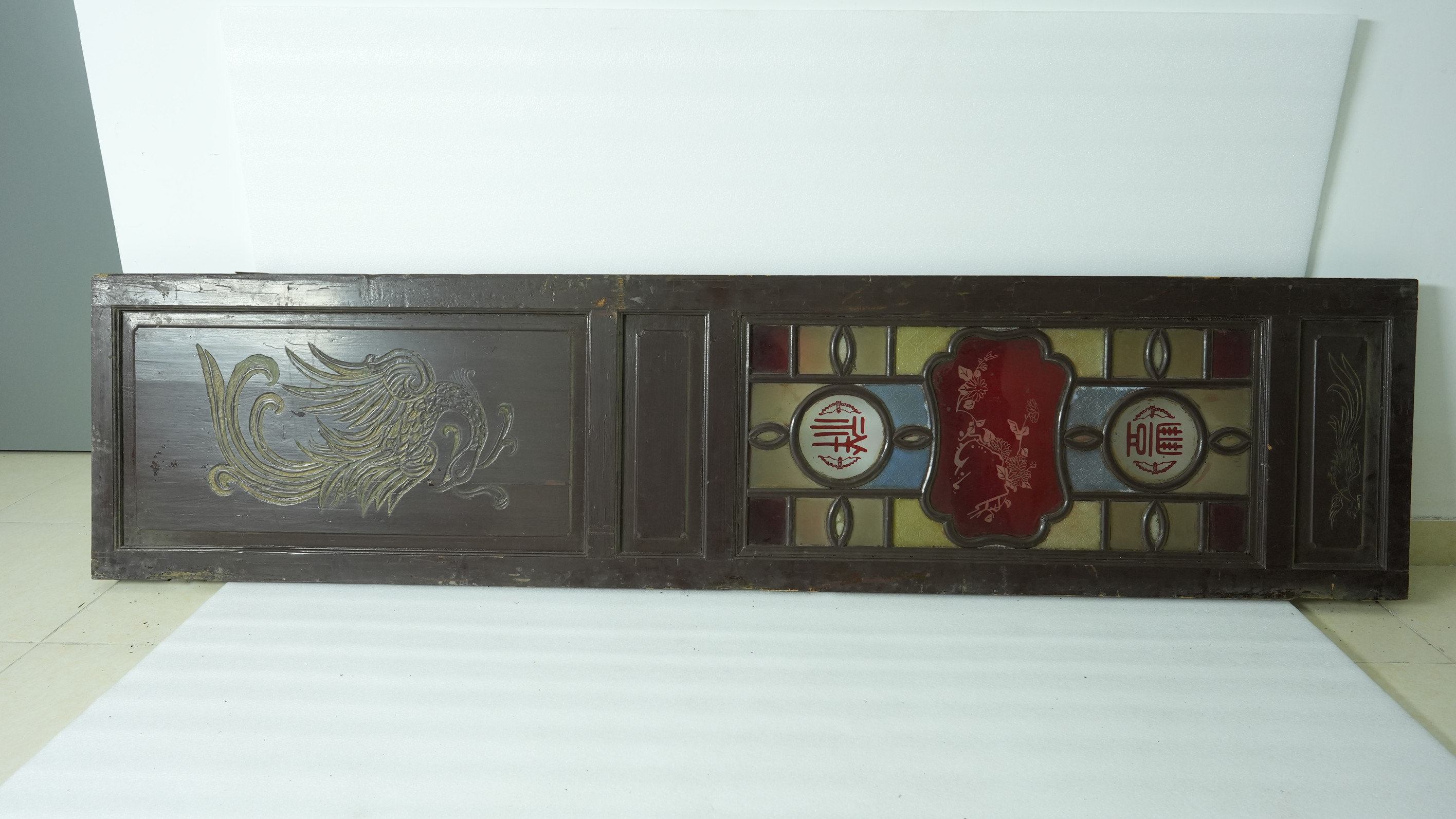名称:当代满洲玻璃门 年代:当代 质地:木、玻璃 尺寸:长255.5cm,宽60.3cm,厚3.9cm