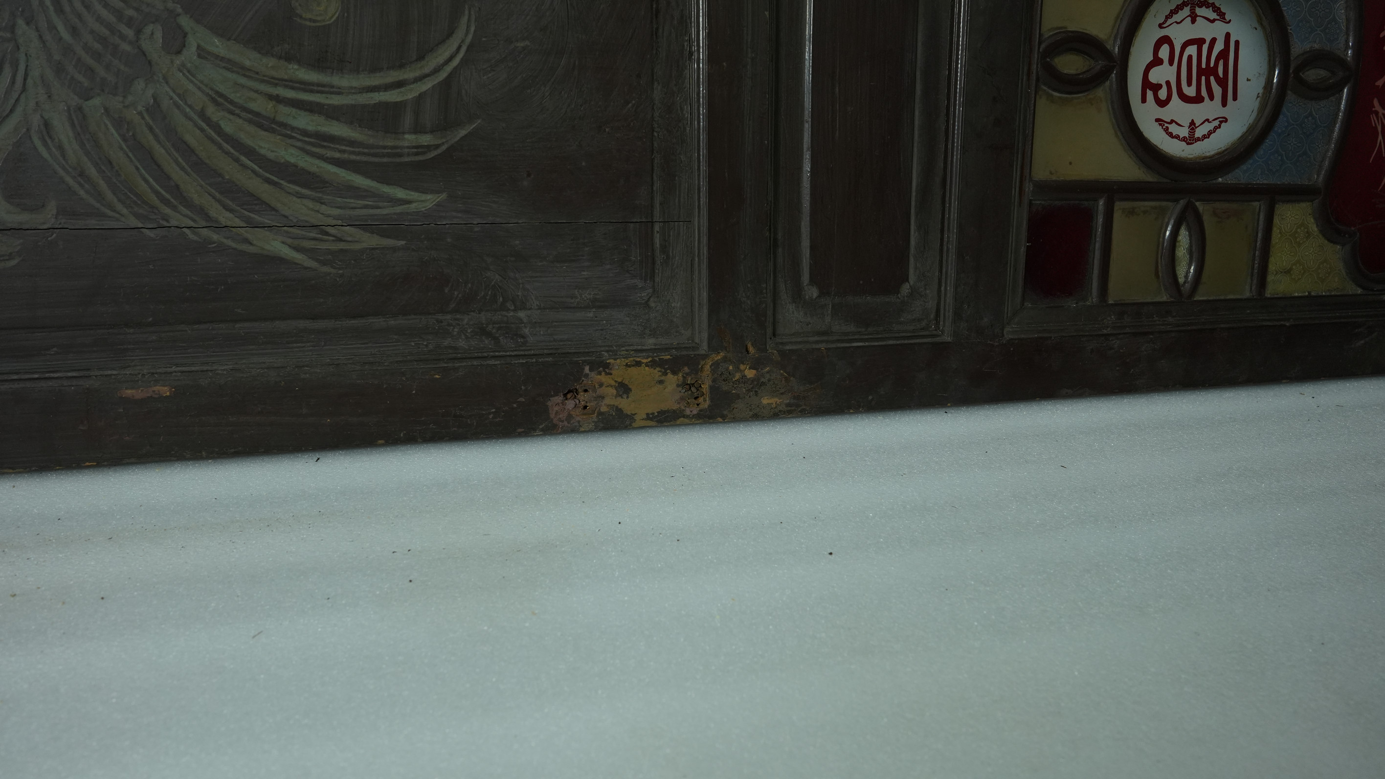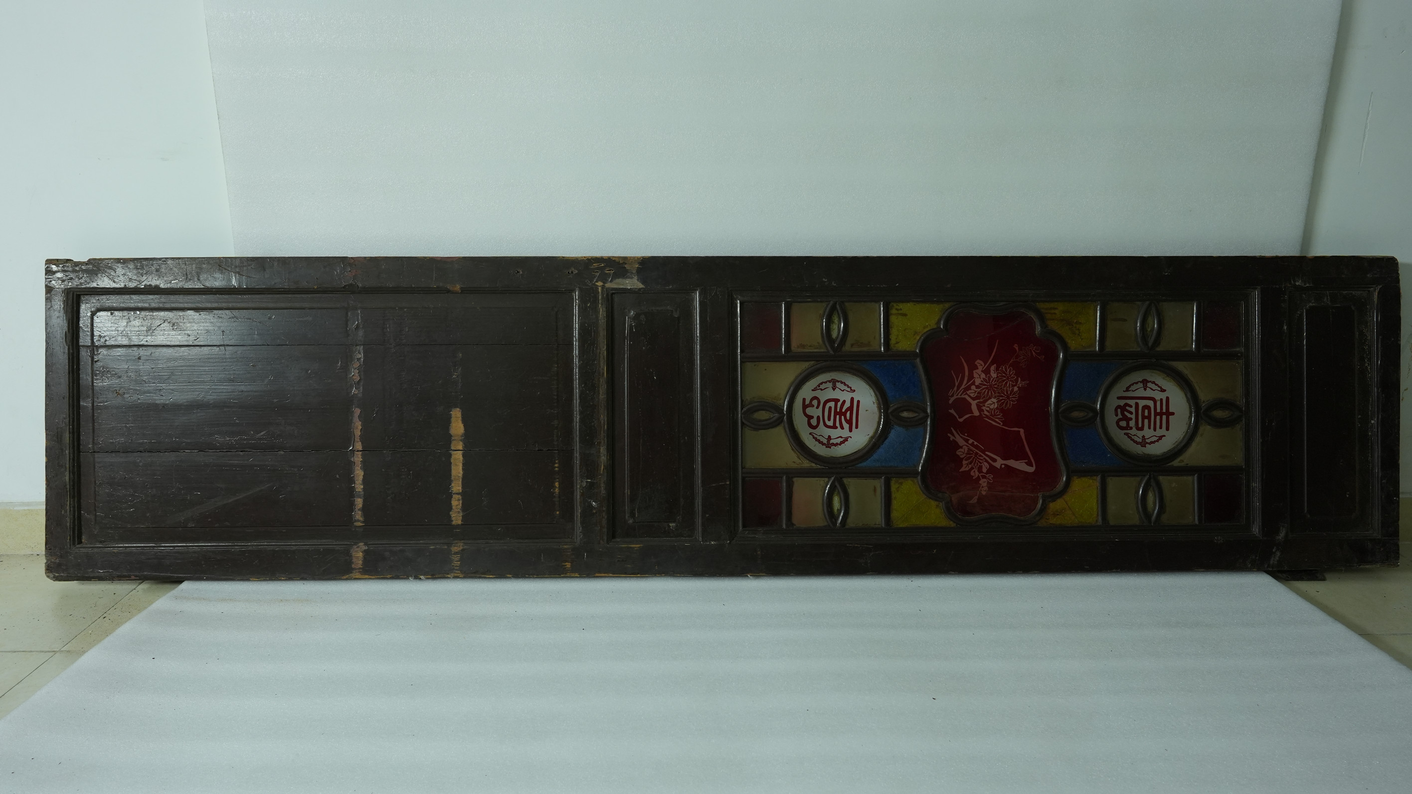 名称:当代满洲玻璃门 年代:当代 质地:木、玻璃 尺寸:长255cm,宽60cm,厚4cm